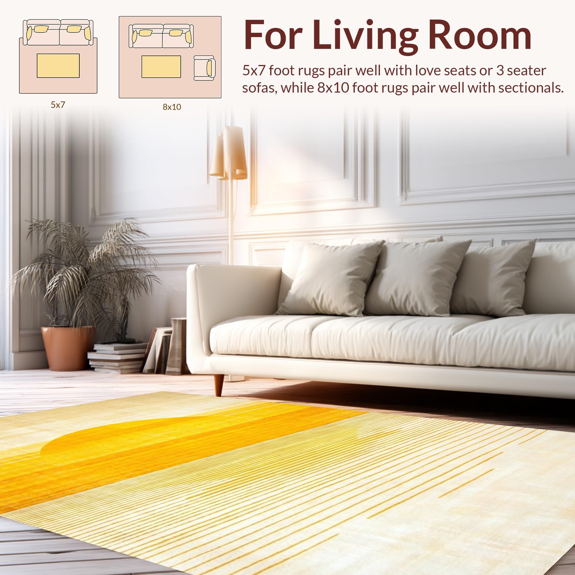 Ultra Soft Area Rug, Non Slip, Stain Resistant, Washable Area Rugs for Living Room, Bedroom, Artful Soft Gradient Radiance(Yellow) Overview:
