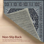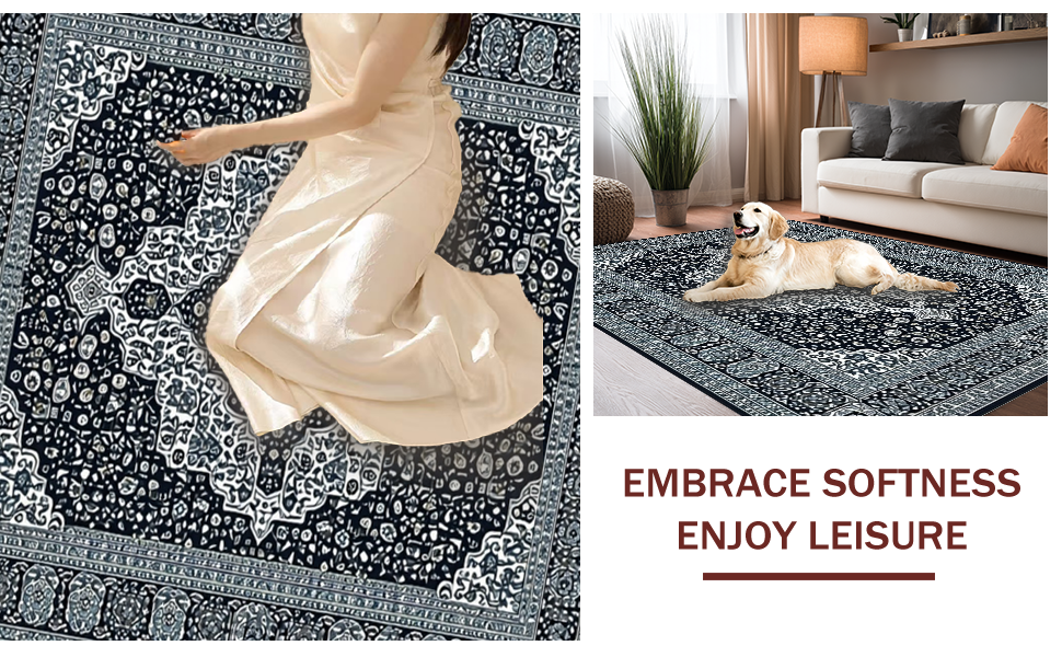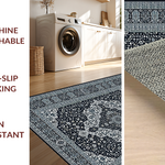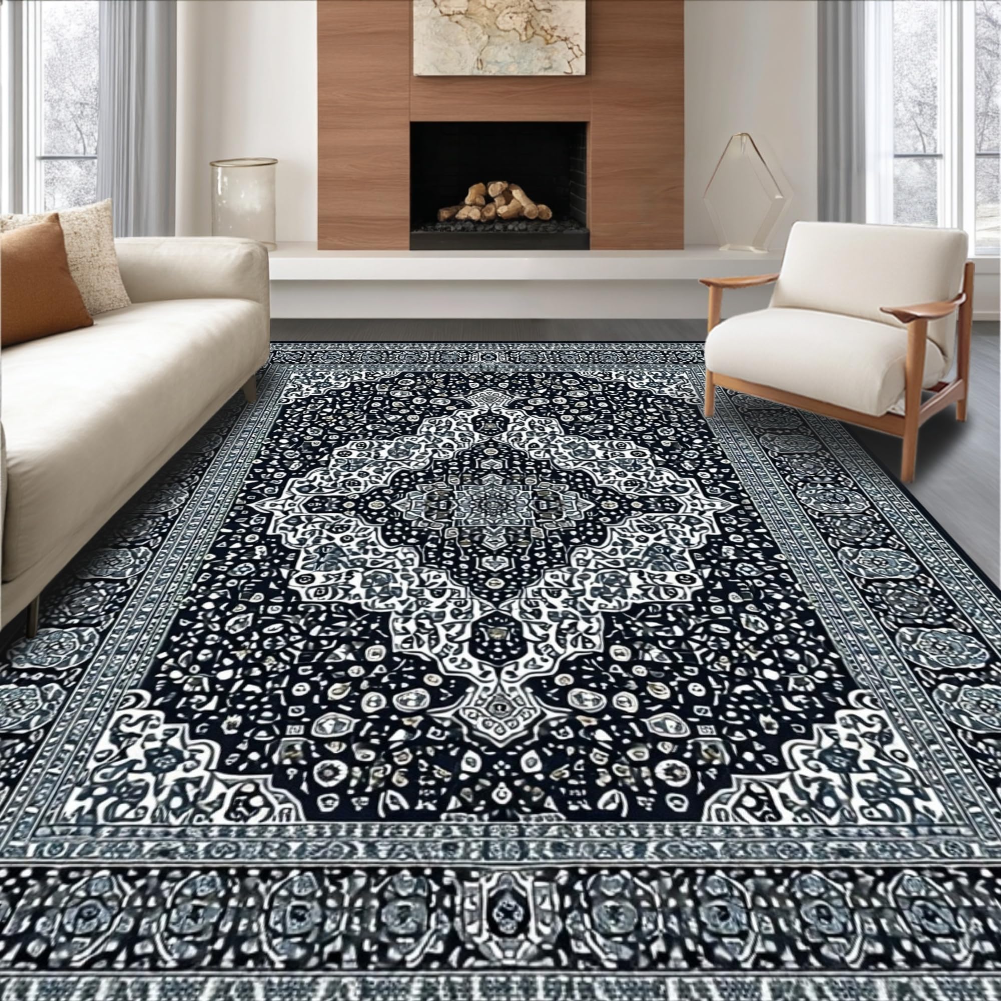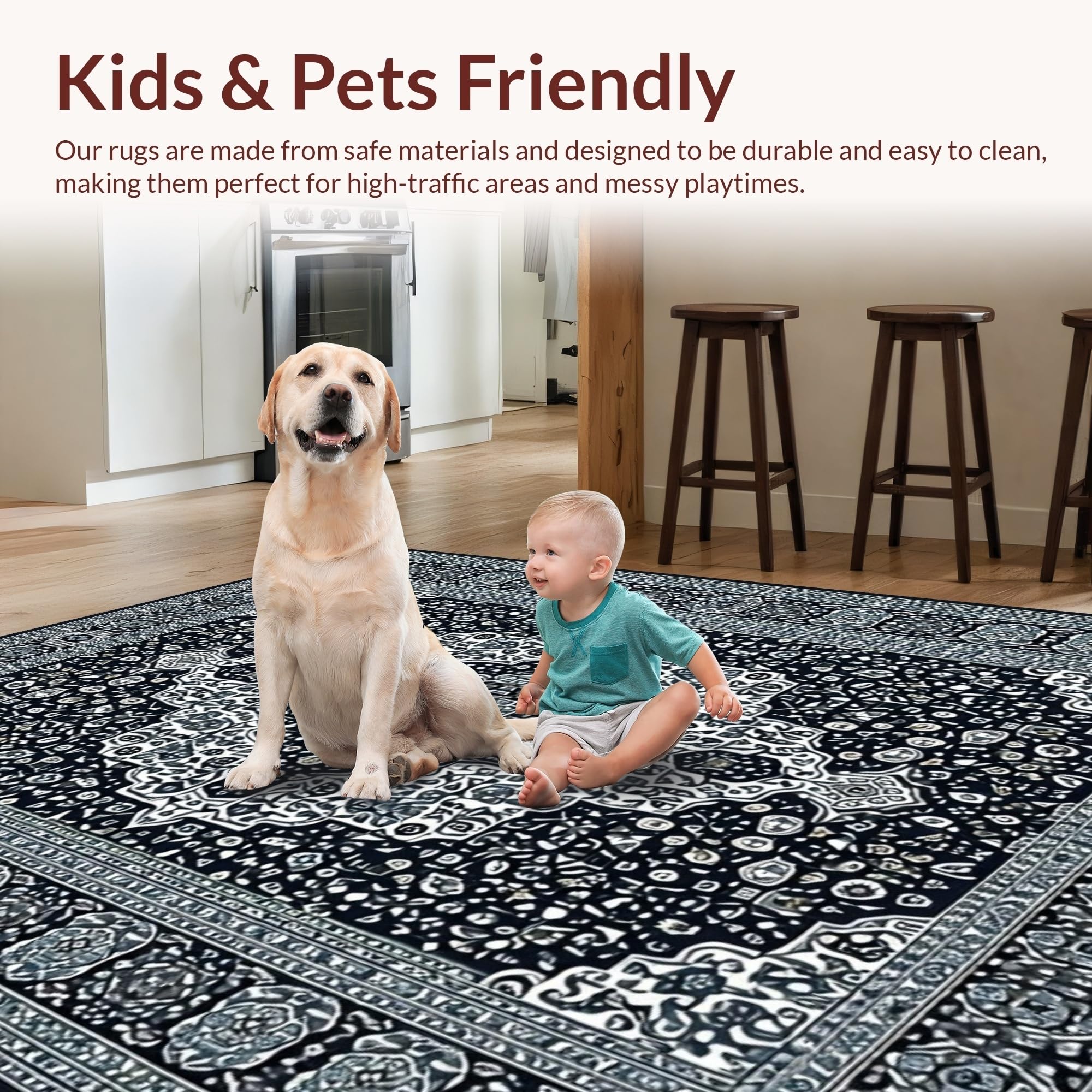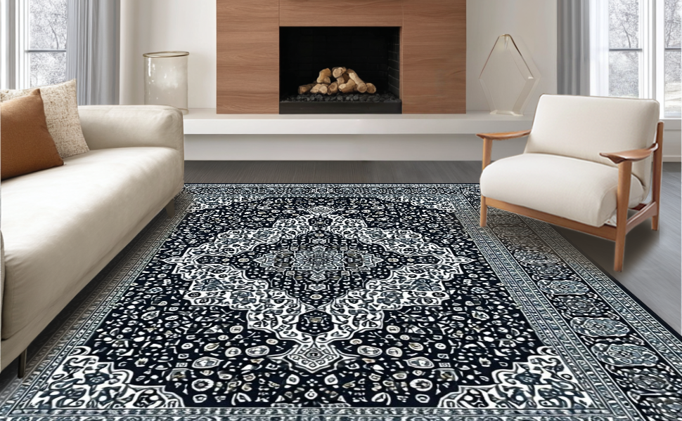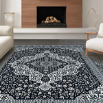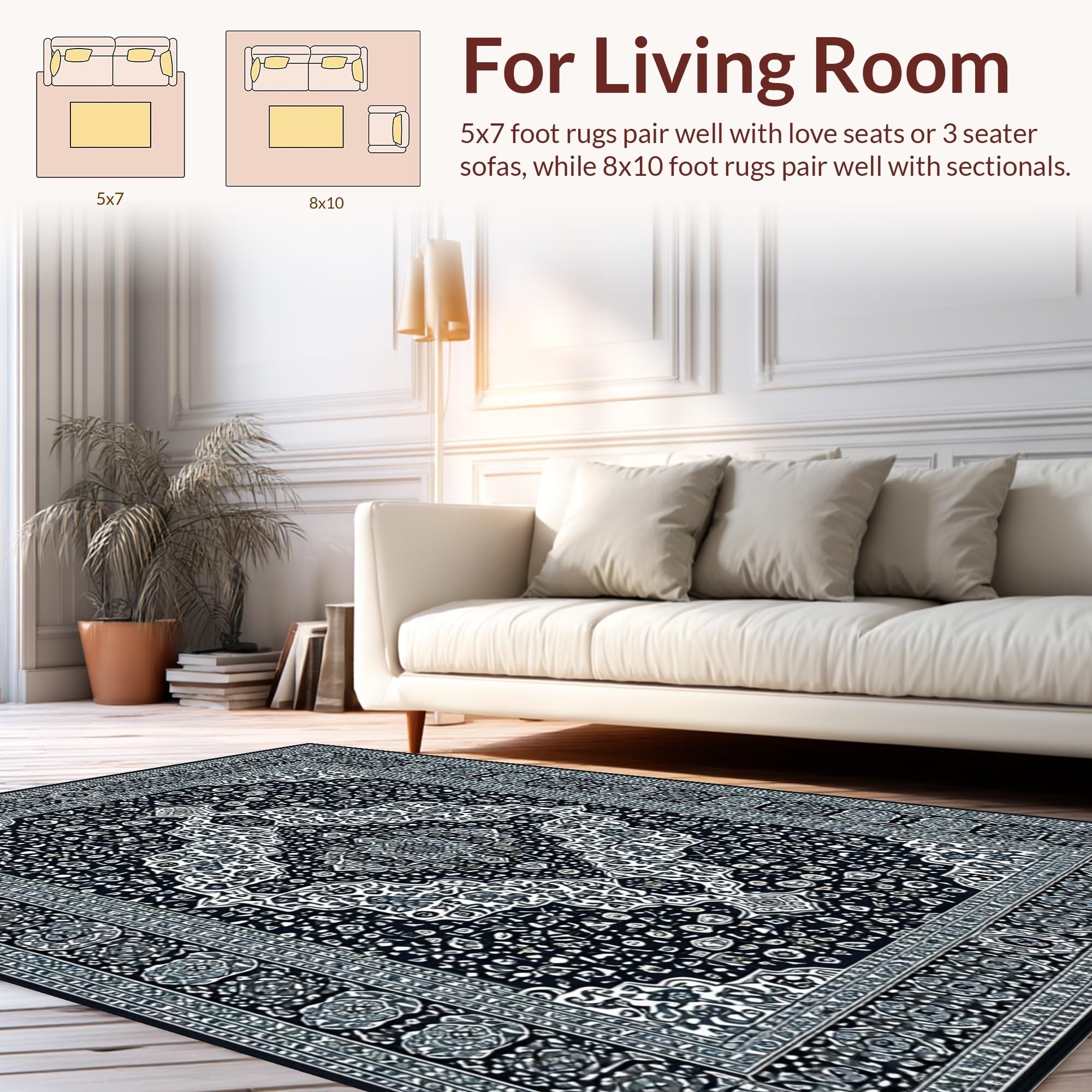 Ultra Soft Area Rug, Non Slip, Stain Resistant, Washable Area Rugs for Living Room, Bedroom, Artful Striped Medallion Detailing(Black) Overview: