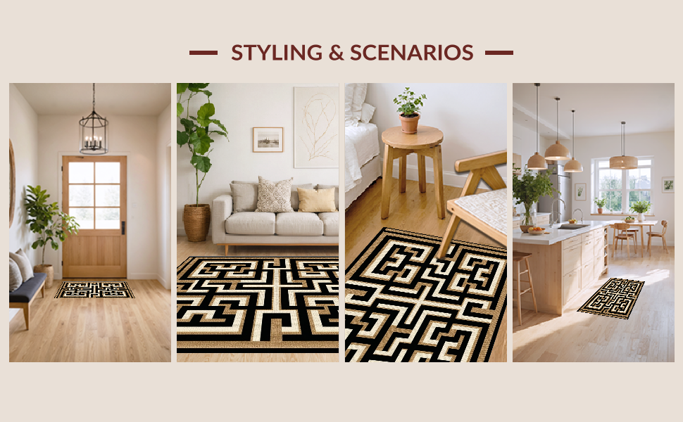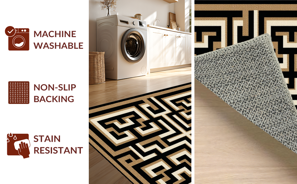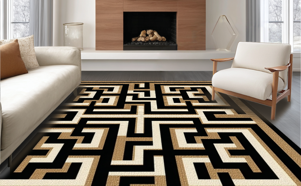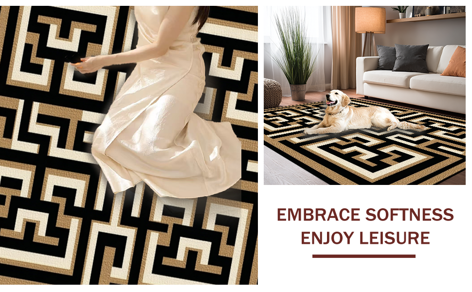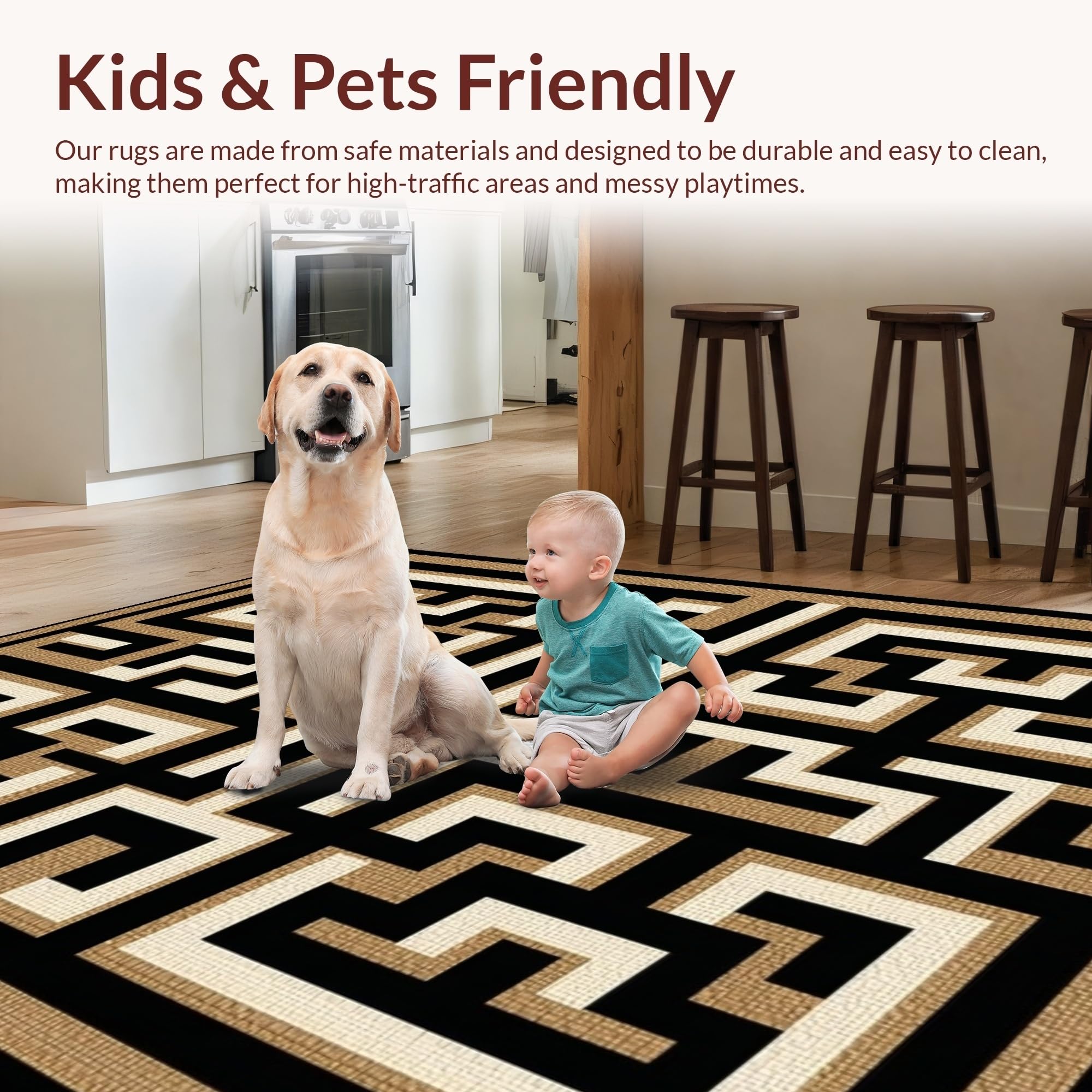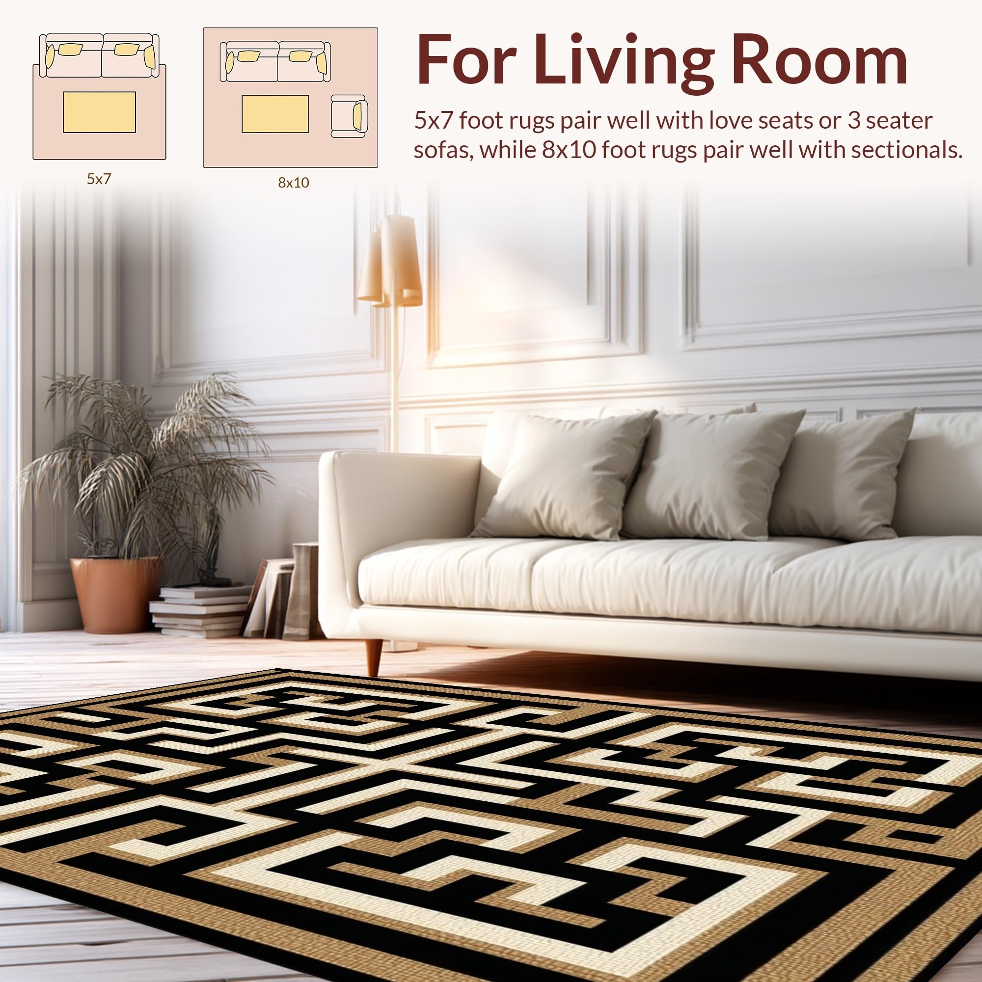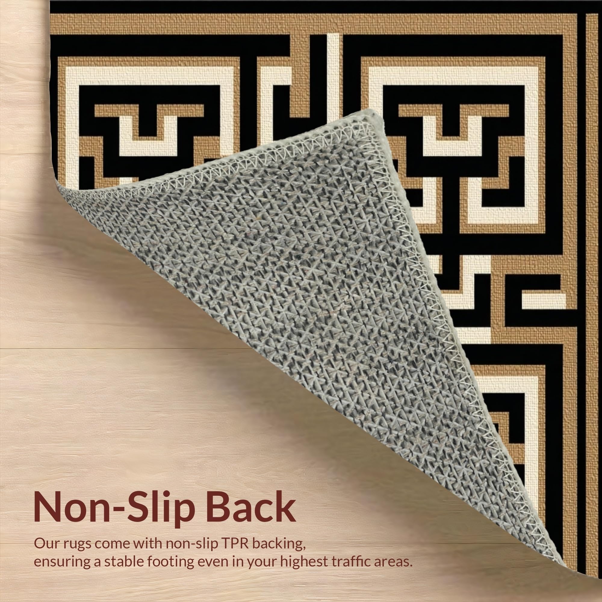 Ultra Soft Area Rug, Non Slip, Stain Resistant, Washable Area Rugs for Living Room, Bedroom, Artful Vintage Greek Key Arrangement(Beige) Overview: