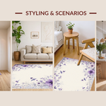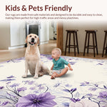 Ultra Soft Area Rug, Non Slip, Stain Resistant, Washable Area Rugs for Living Room, Bedroom, Artful Watercolor Petal Motif(Purple) Overview: