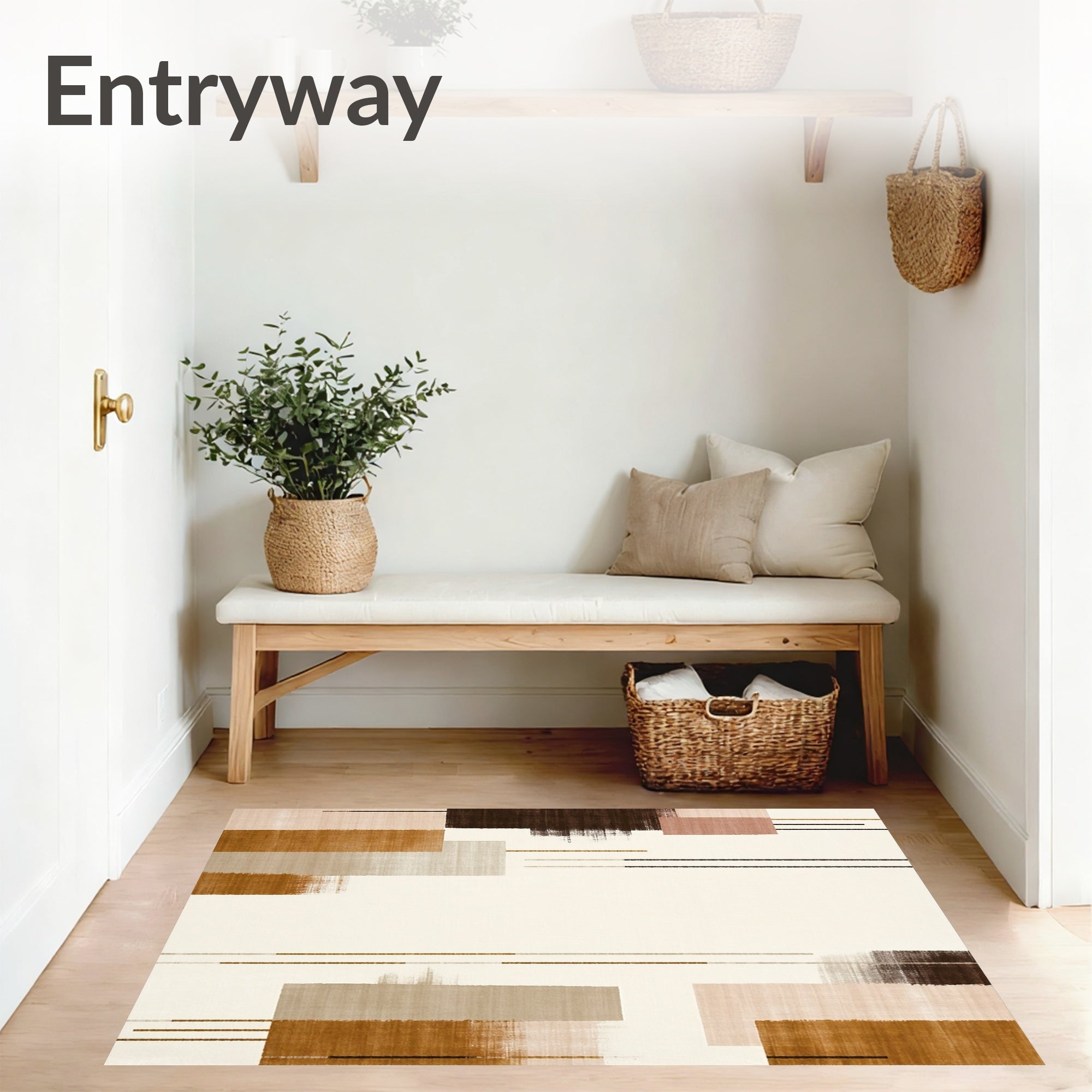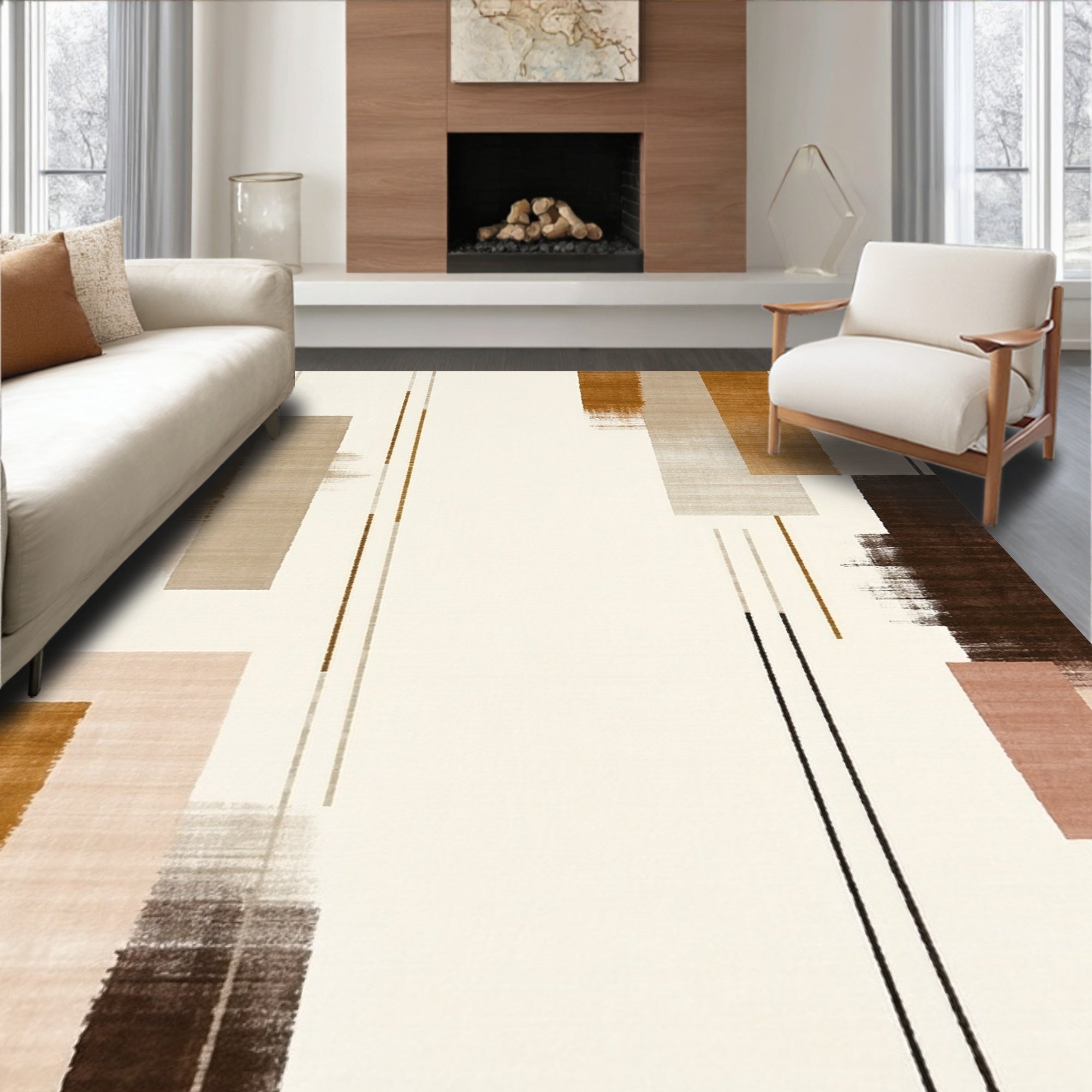 Ultra Soft Area Rug, Non Slip, Stain Resistant, Washable Area Rugs for Living Room, Bedroom, Artisan Abstract Brushstroke Premium(Beige) Overview: