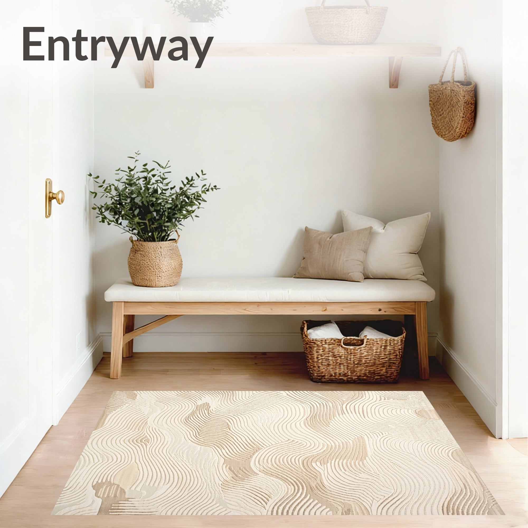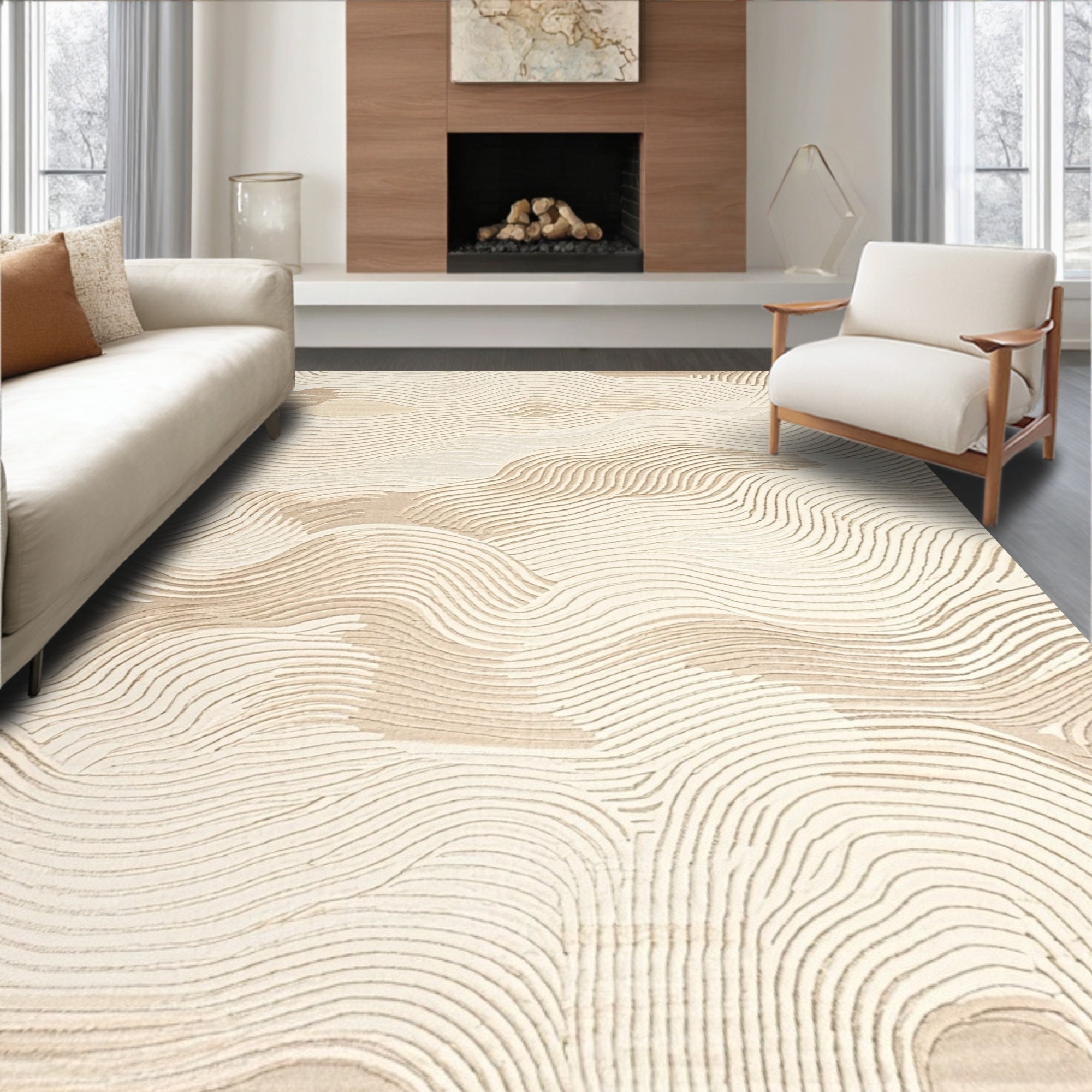Ultra Soft Area Rug, Non Slip, Stain Resistant, Washable Area Rugs for Living Room, Bedroom, Artisan Beige Ripple Area for Indoor Cat Nail Care Furniture Shield(Beige) Overview: