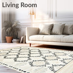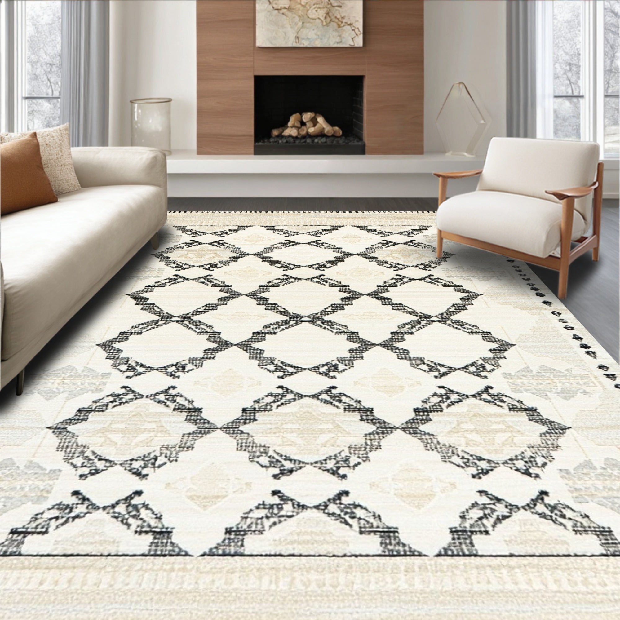 Ultra Soft Area Rug, Non Slip, Stain Resistant, Washable Area Rugs for Living Room, Bedroom, Artisan Boho Diamond Trellis Area with Creamy Neutral Layers(Beige) Overview: