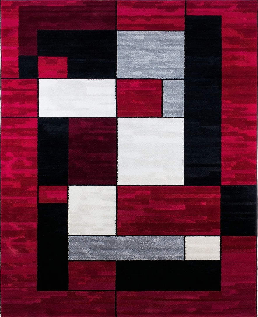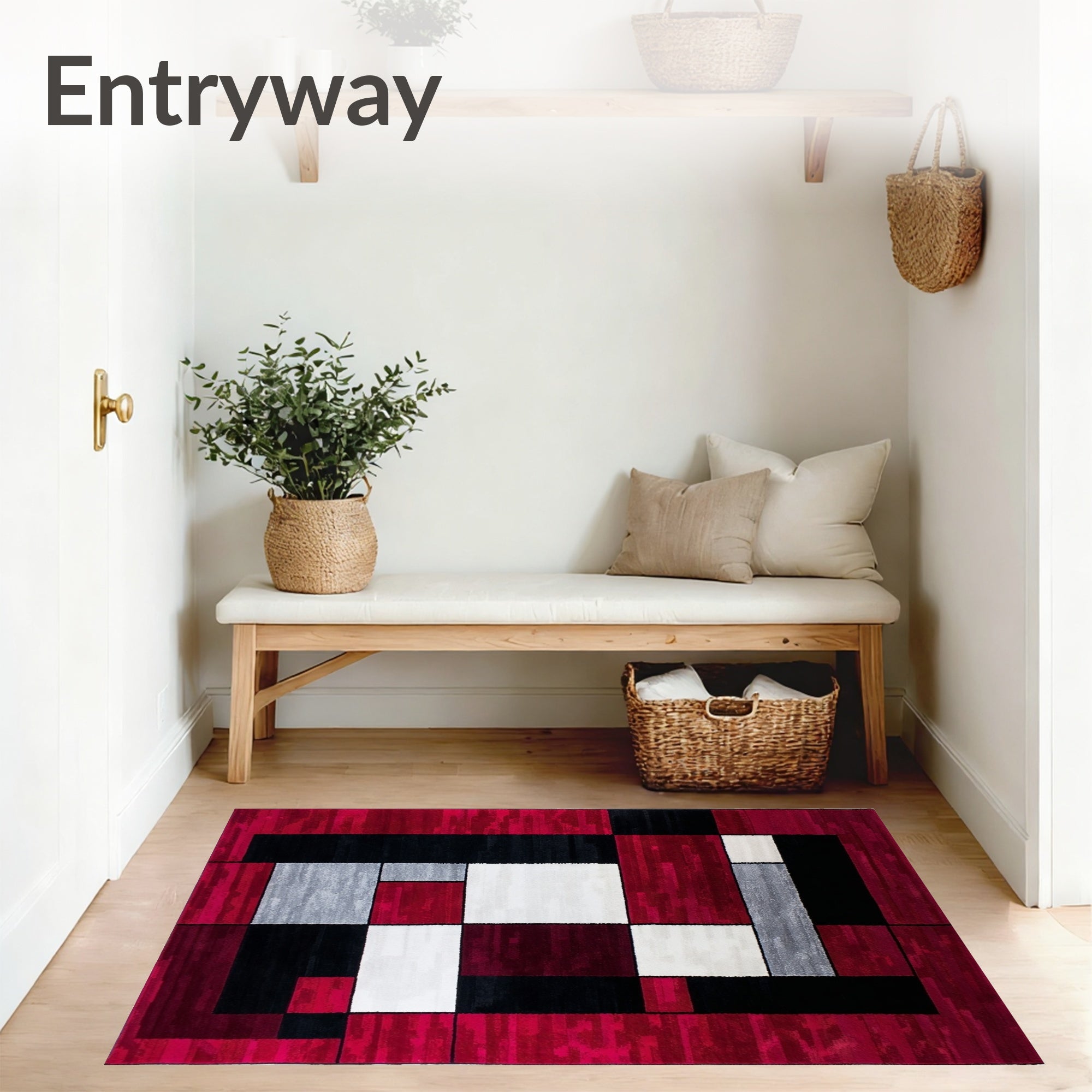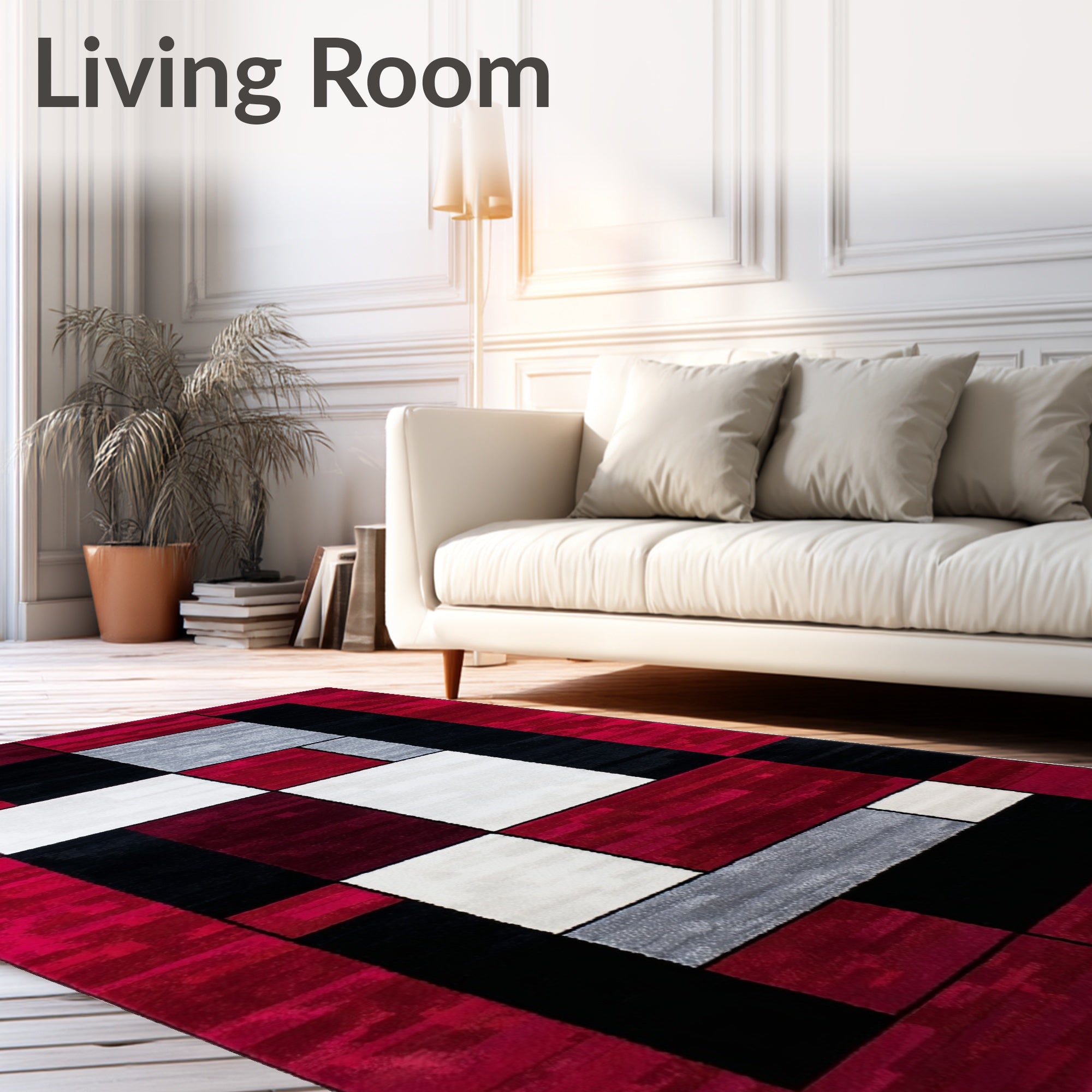 Ultra Soft Area Rug, Non Slip, Stain Resistant, Washable Area Rugs for Living Room, Bedroom, Artisan Carved Rug Premium Garnet Silver Noir Abstract Geometric Design(Red) Overview: