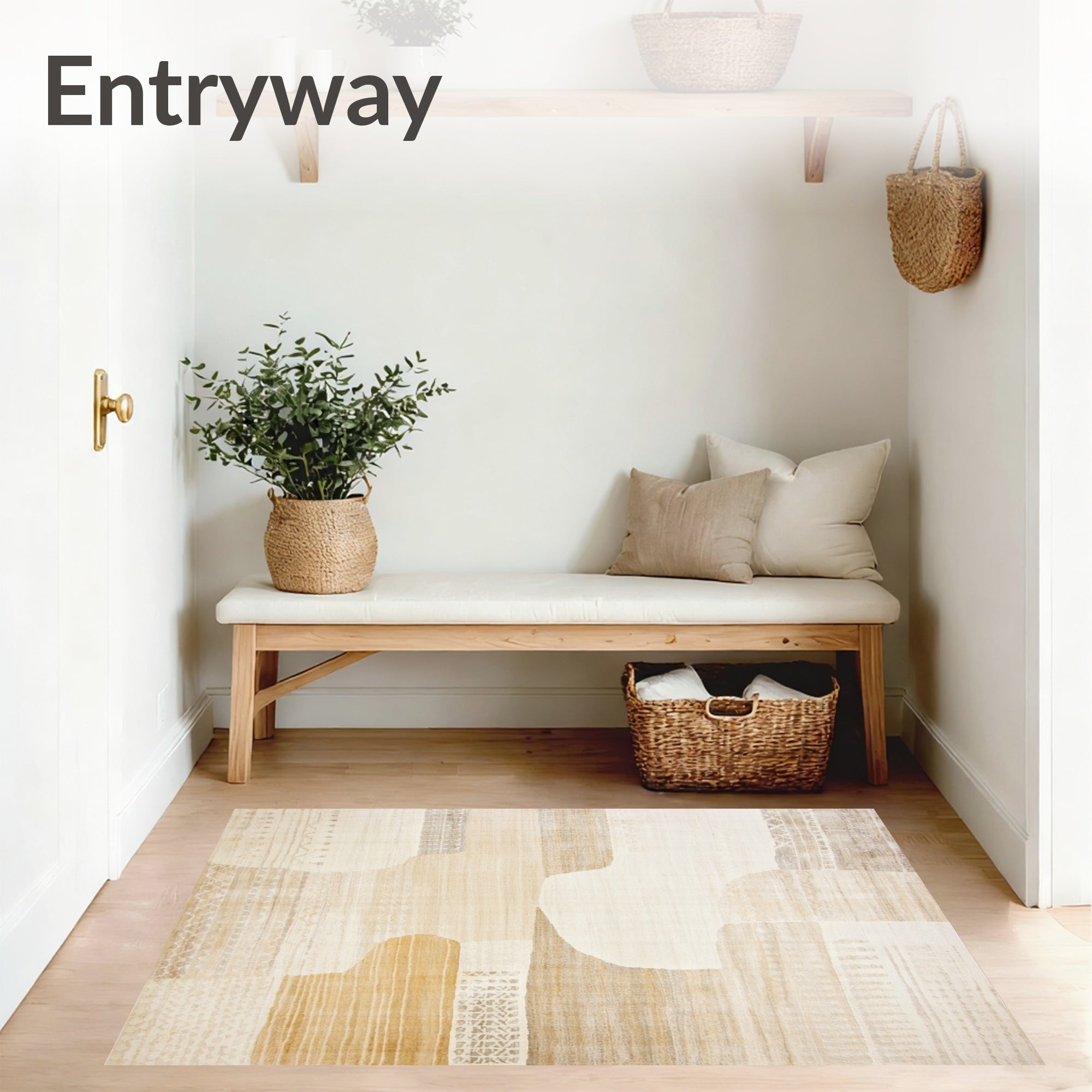Ultra Soft Area Rug, Non Slip, Stain Resistant, Washable Area Rugs for Living Room, Bedroom, Artisan Crafted Area Beige and Cream Abstract Motif(Beige) Overview: