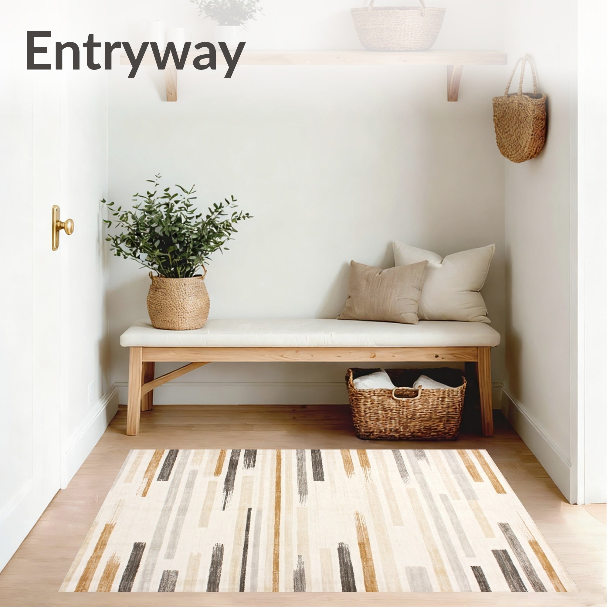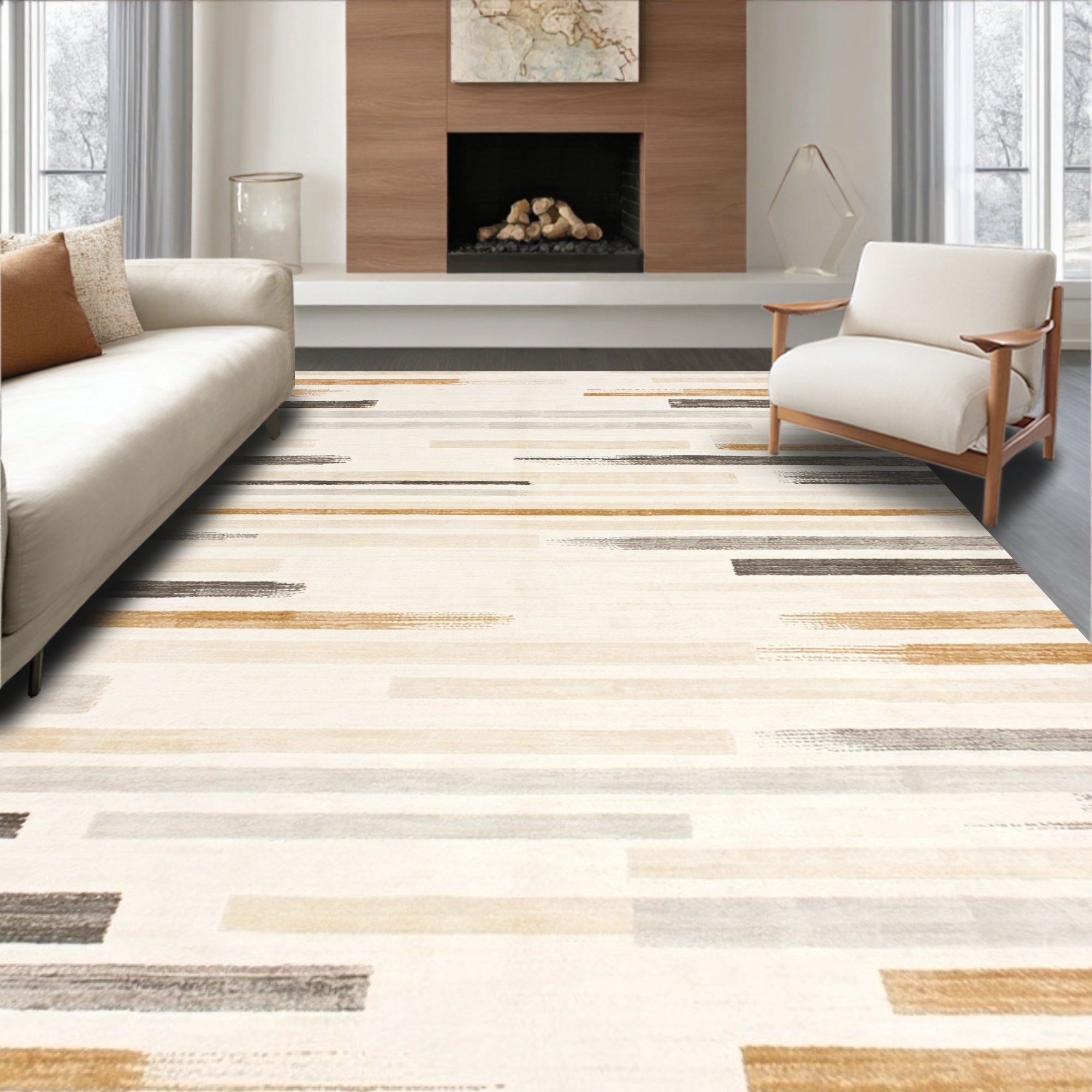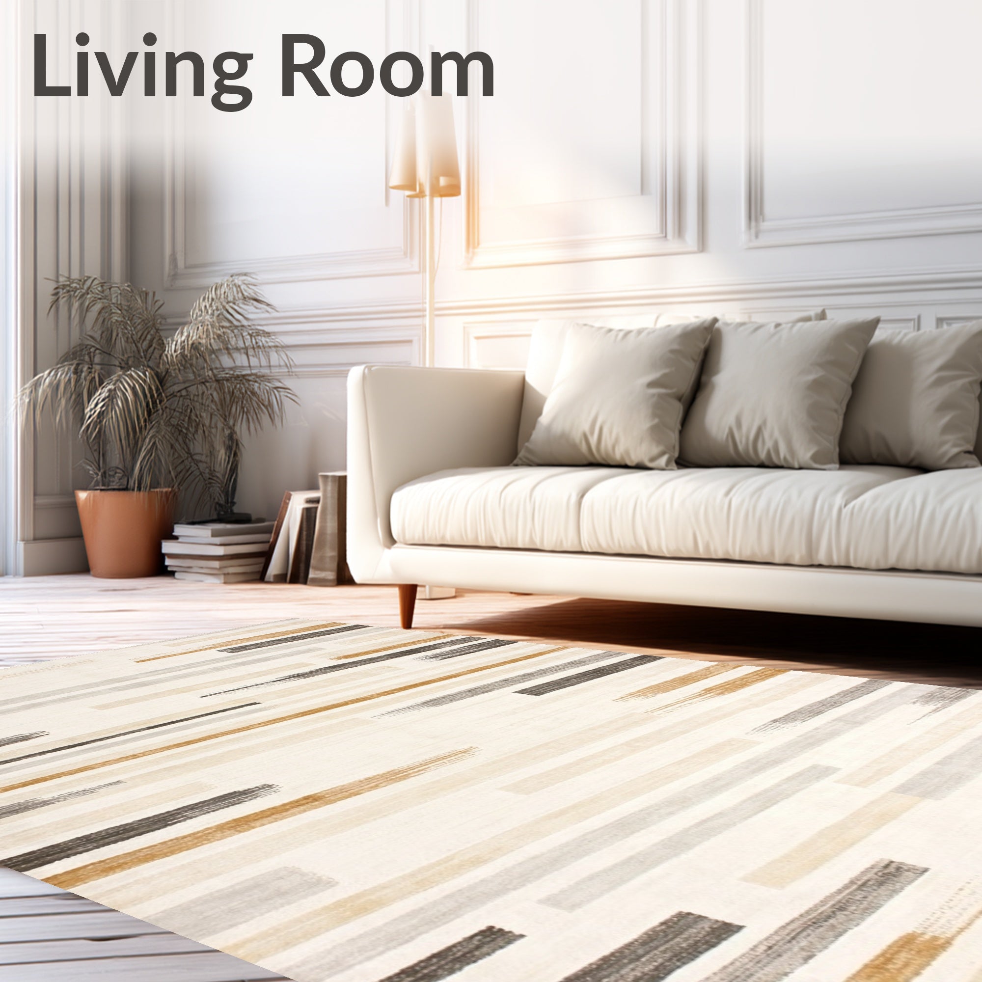 Ultra Soft Area Rug, Non Slip, Stain Resistant, Washable Area Rugs for Living Room, Bedroom, Artisan Crafted Linear Beige Area(Beige) Overview: