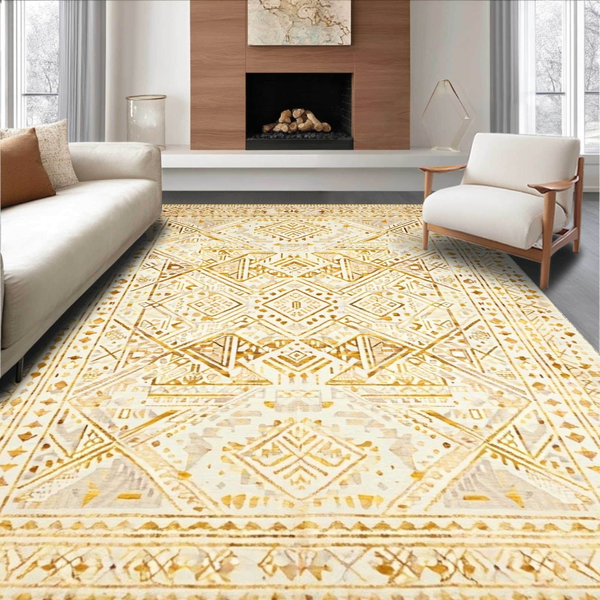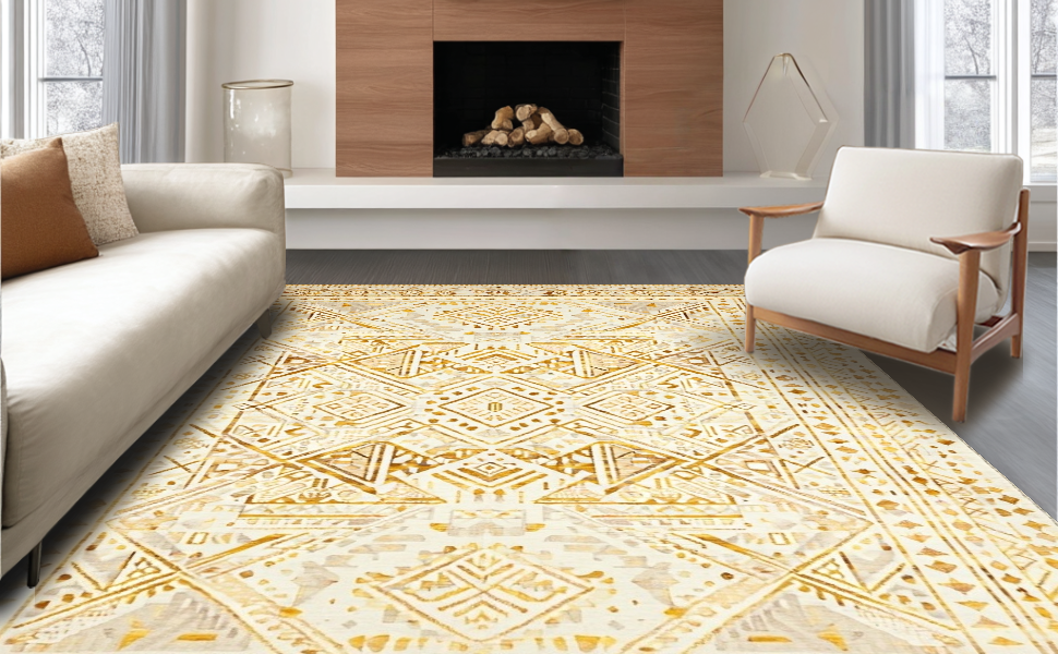 Ultra Soft Area Rug, Non Slip, Stain Resistant, Washable Area Rugs for Living Room, Bedroom, Artisan Crafted Linear Geometric Lines(Beige) Overview: