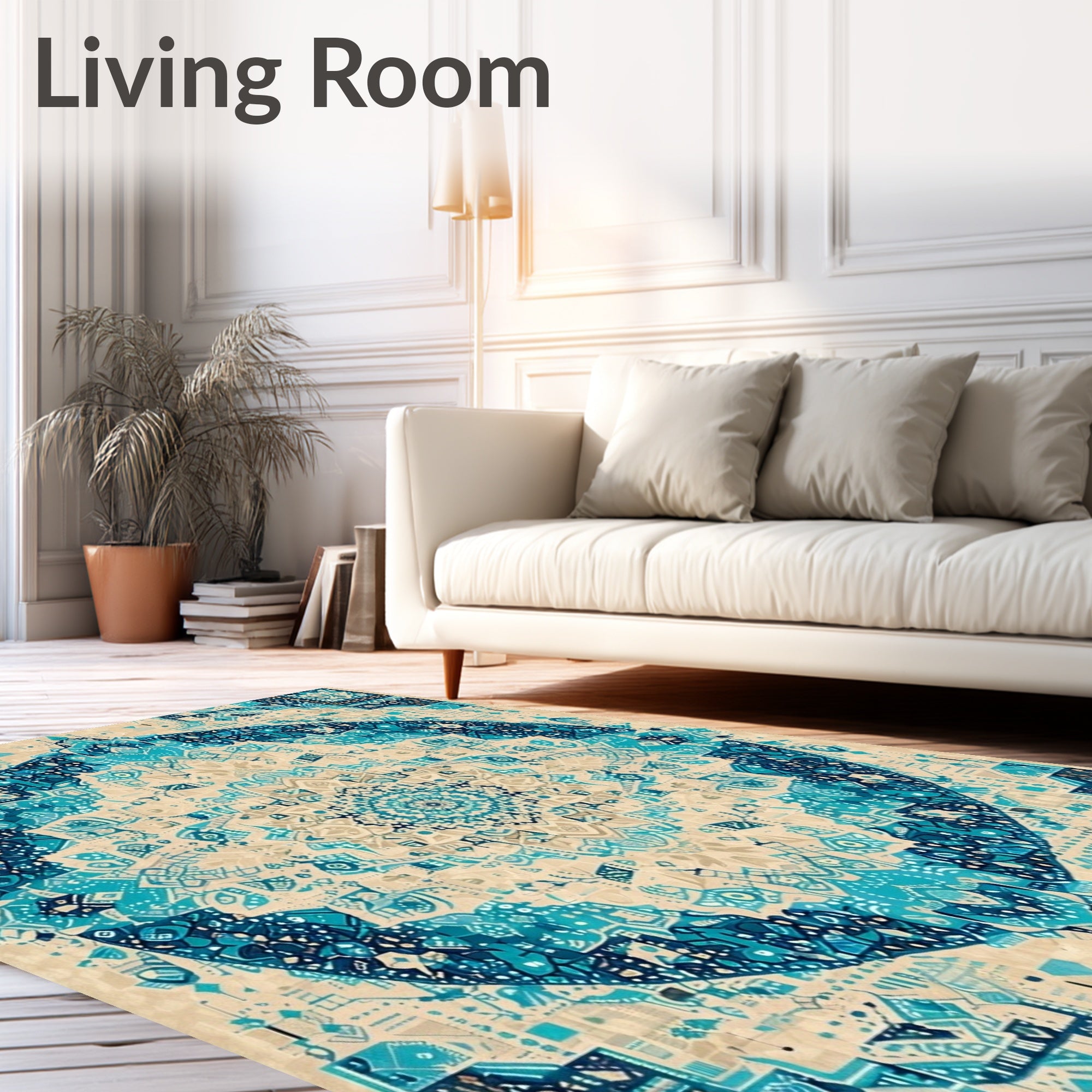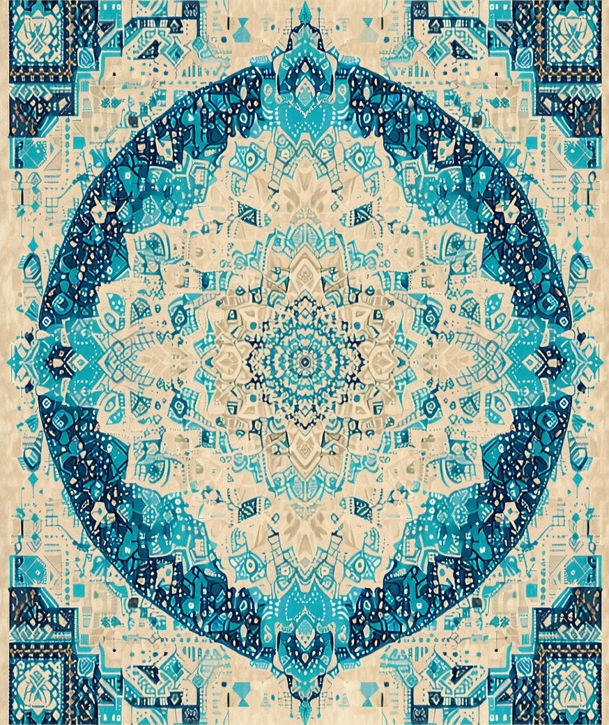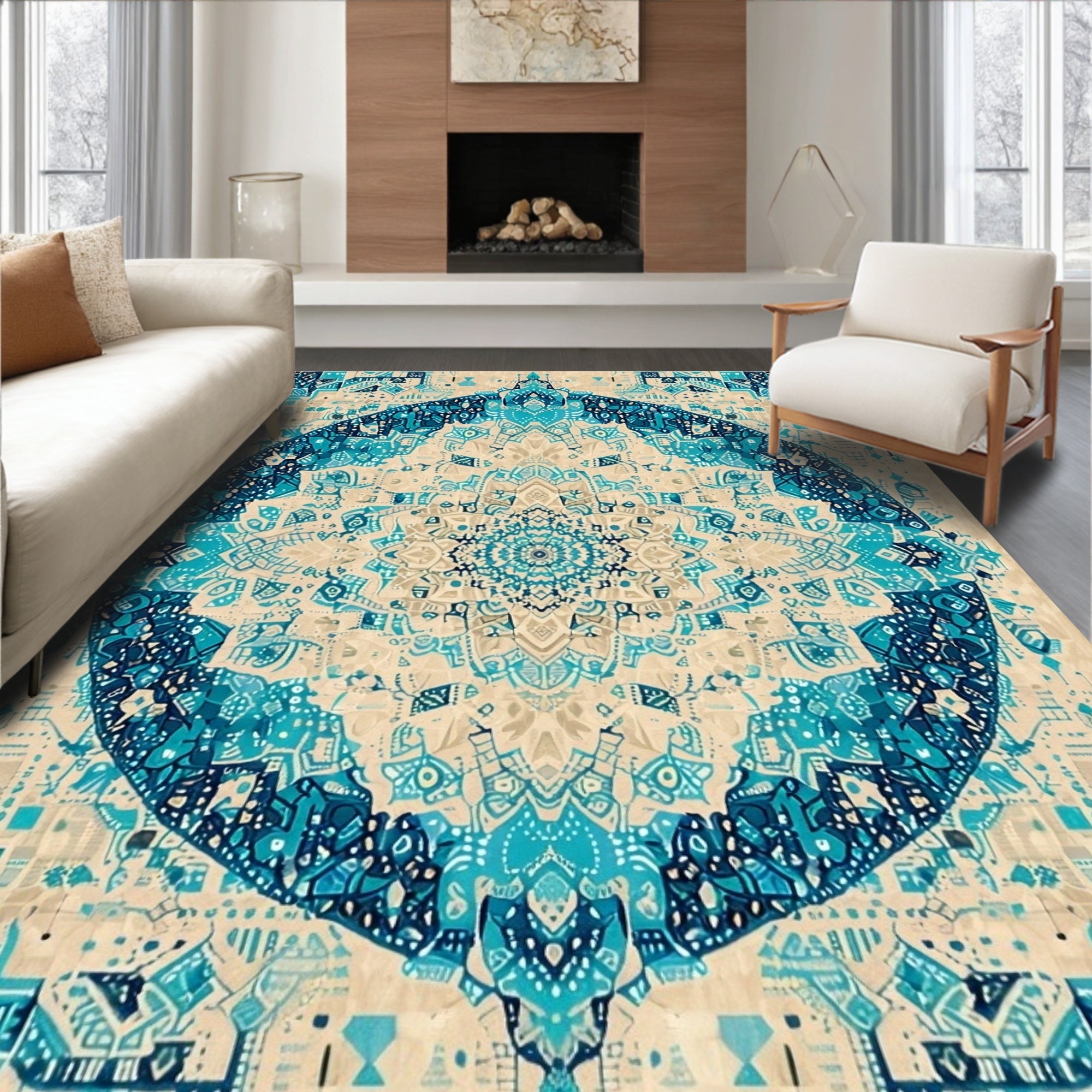 Ultra Soft Area Rug, Non Slip, Stain Resistant, Washable Area Rugs for Living Room, Bedroom, Artisan Crafted Round with Colorful Abstract Medallion Design(Beige) Overview: