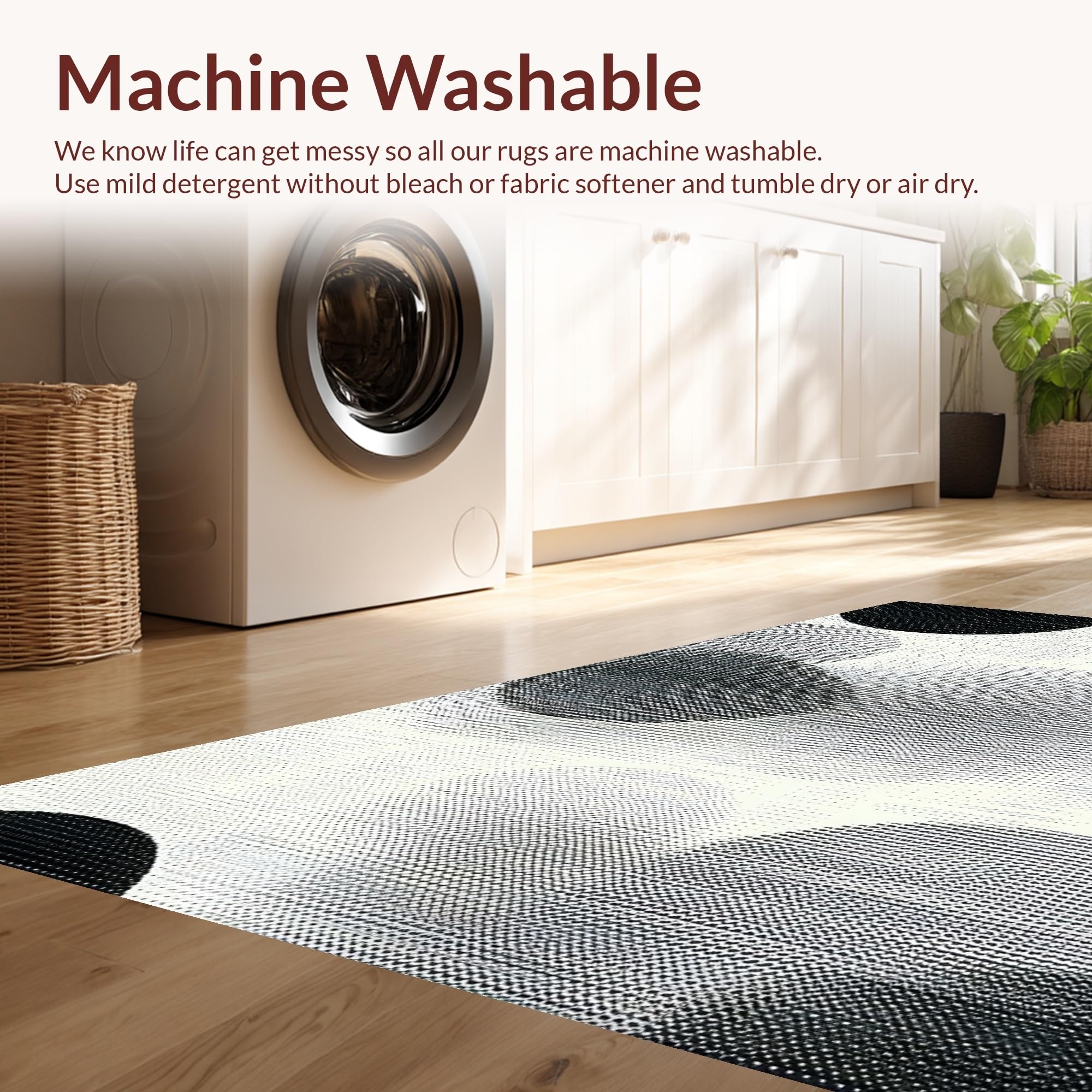 - Machine Washable: Our rugs can be easily thrown in the wash machine.