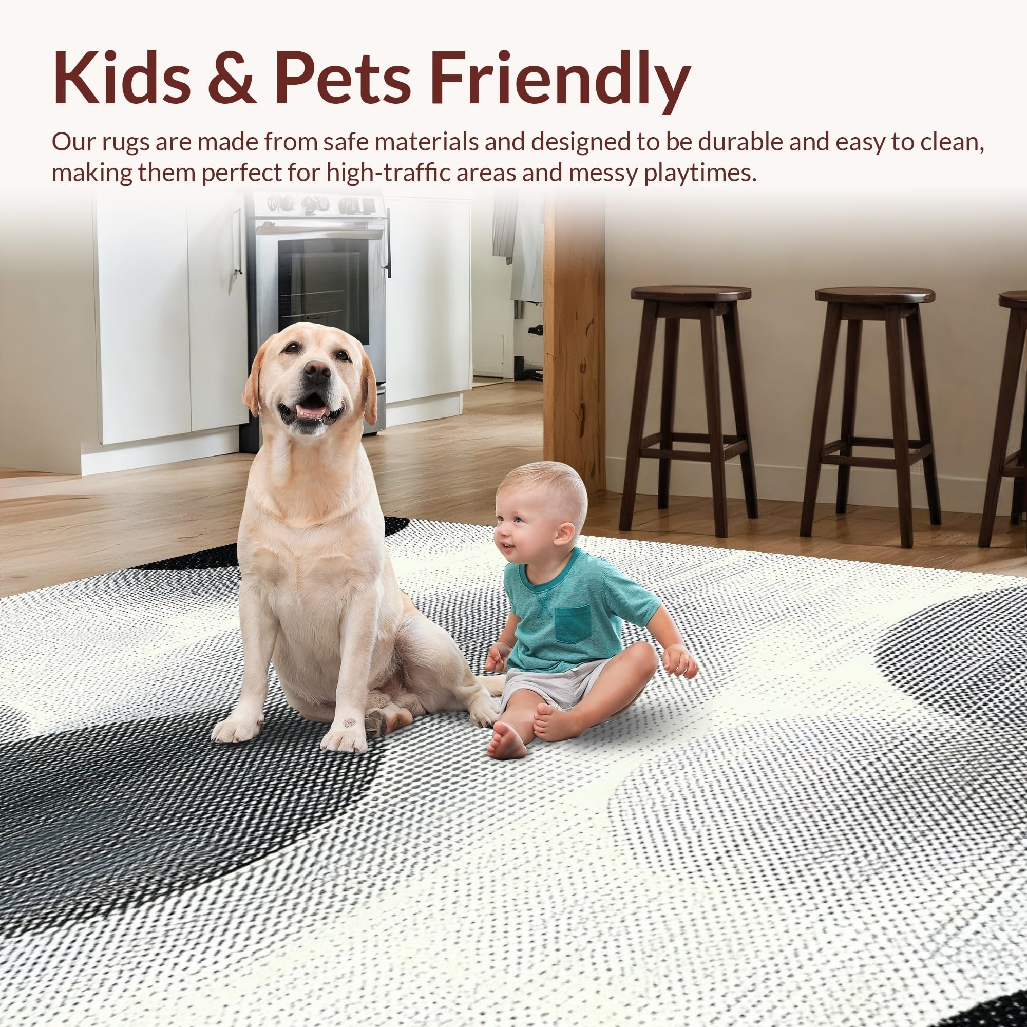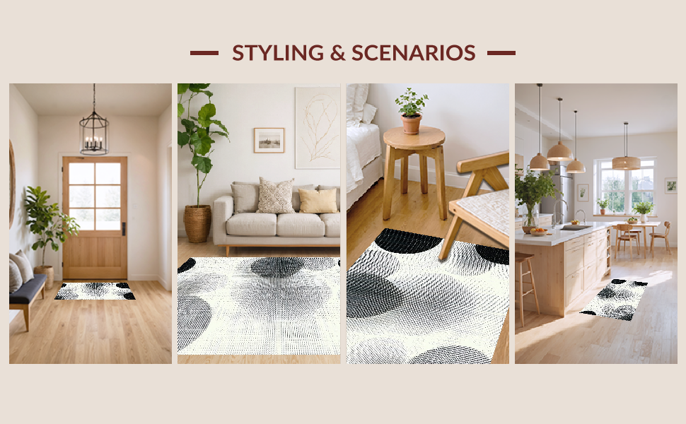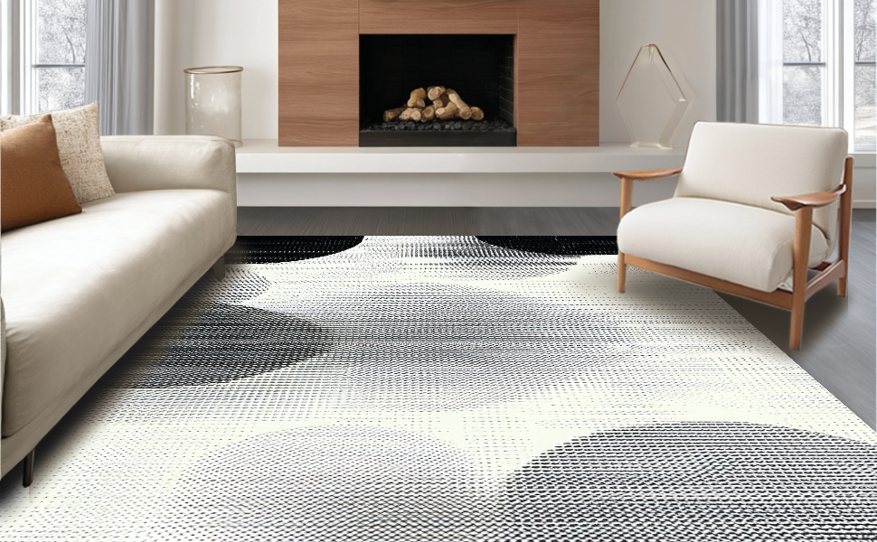 Ultra Soft Area Rug, Non Slip, Stain Resistant, Washable Area Rugs for Living Room, Bedroom, Artisan Crafted Rustic Vibe(Black) Overview: