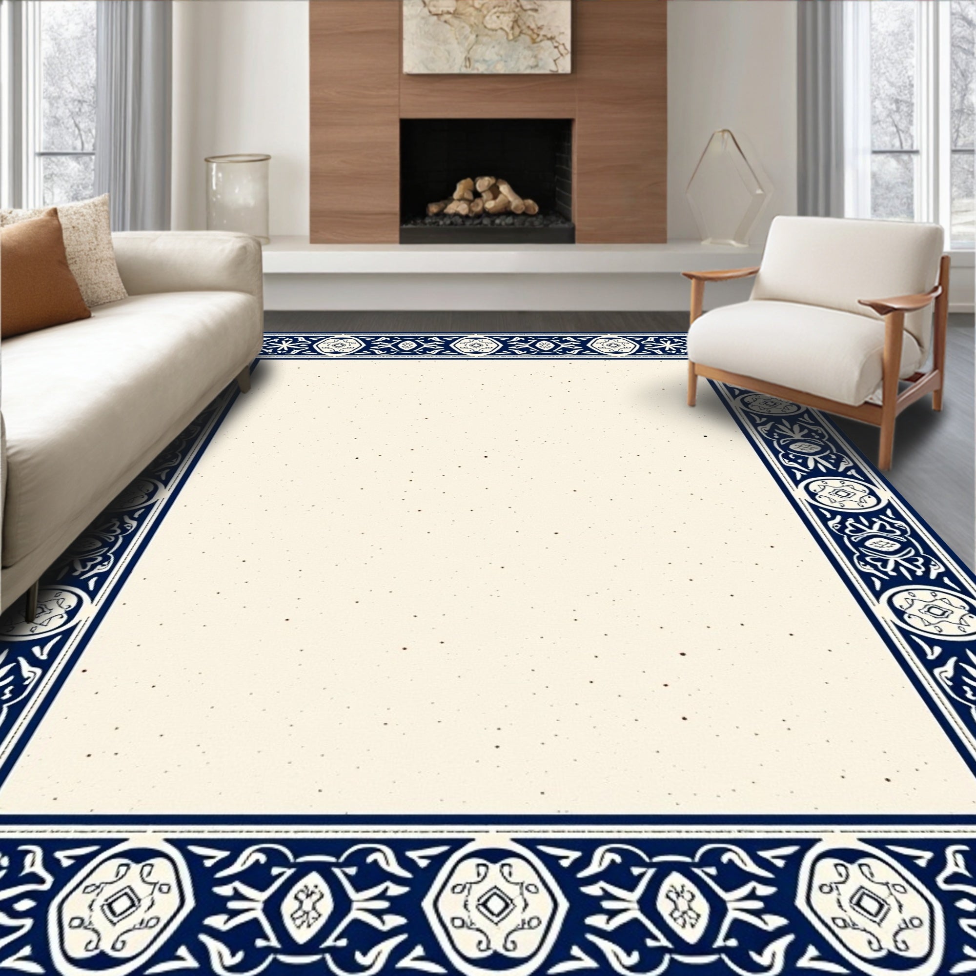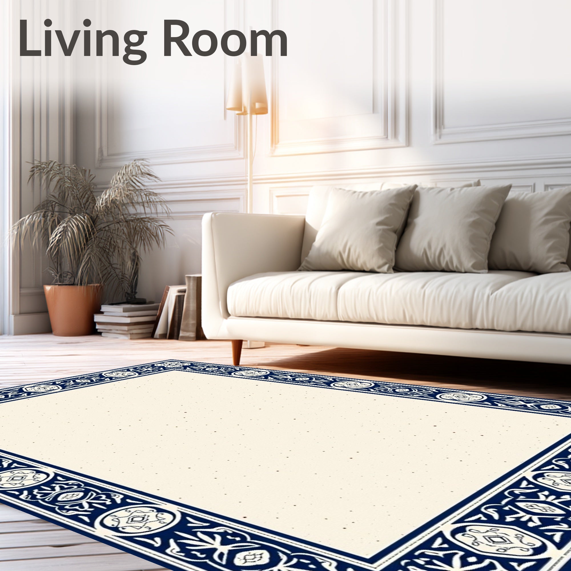 Ultra Soft Area Rug, Non Slip, Stain Resistant, Washable Area Rugs for Living Room, Bedroom, Artisan Crafted Speckled Perimeter Youth with Classic Motifs(Blue) Overview: