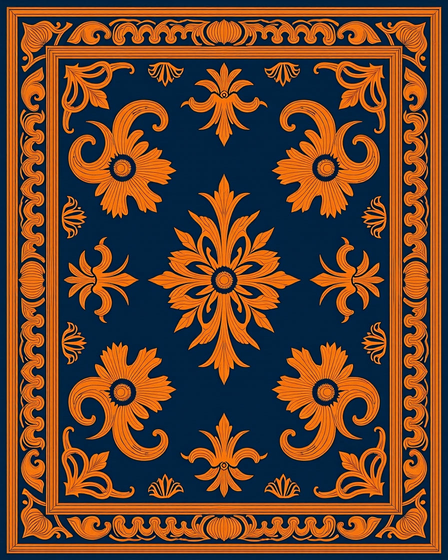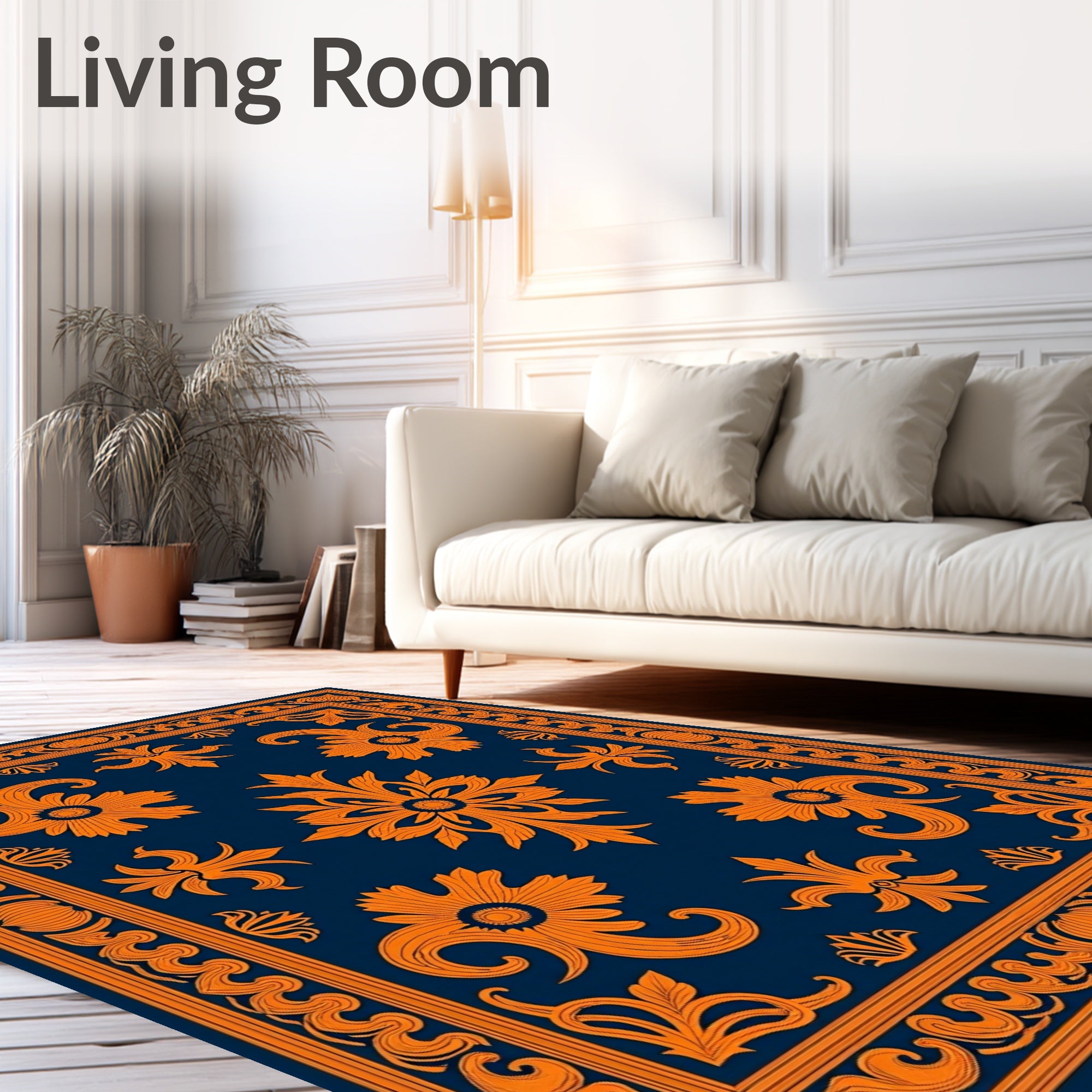 Ultra Soft Area Rug, Non Slip, Stain Resistant, Washable Area Rugs for Living Room, Bedroom, Artisan Damask Revival Elegant Noble(Orange) Overview: