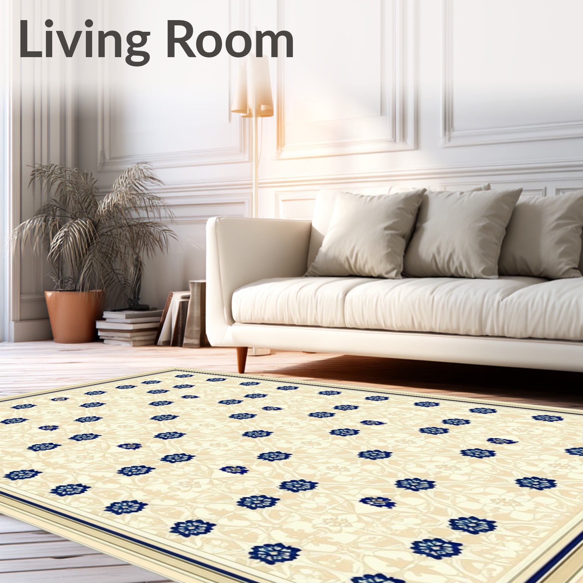 Ultra Soft Area Rug, Non Slip, Stain Resistant, Washable Area Rugs for Living Room, Bedroom, Artisan Filigree Area Featuring Classic Lattice and Blue Floral Accents(Beige) Overview:
