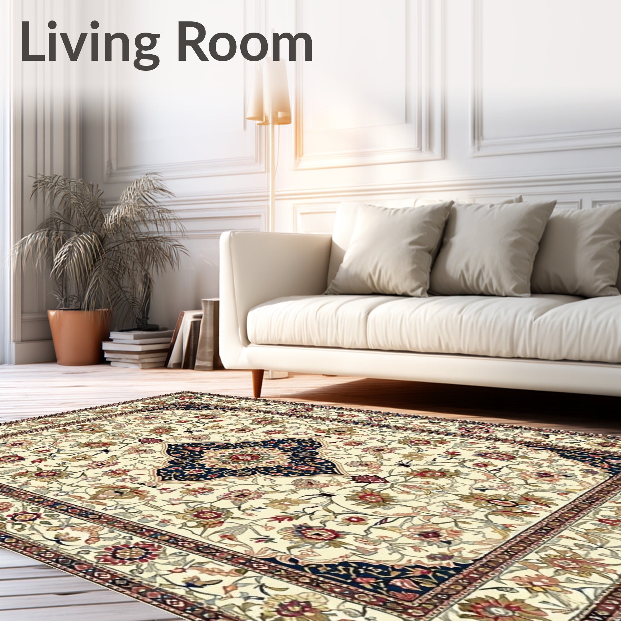 Ultra Soft Area Rug, Non Slip, Stain Resistant, Washable Area Rugs for Living Room, Bedroom, Artisan Floral Medallion Area Classic Farmhouse Decor Collection(Ivory) Overview: