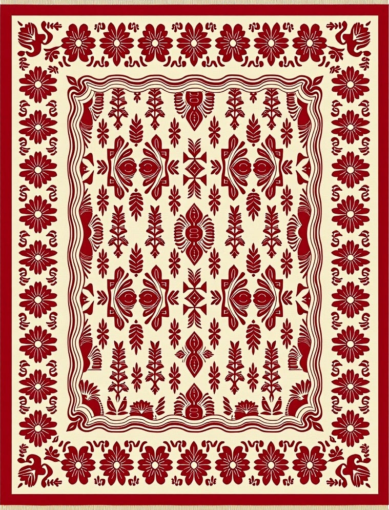 Artisan Floral Mosaic Interlocking Petal Array Folk Style(Ivory)