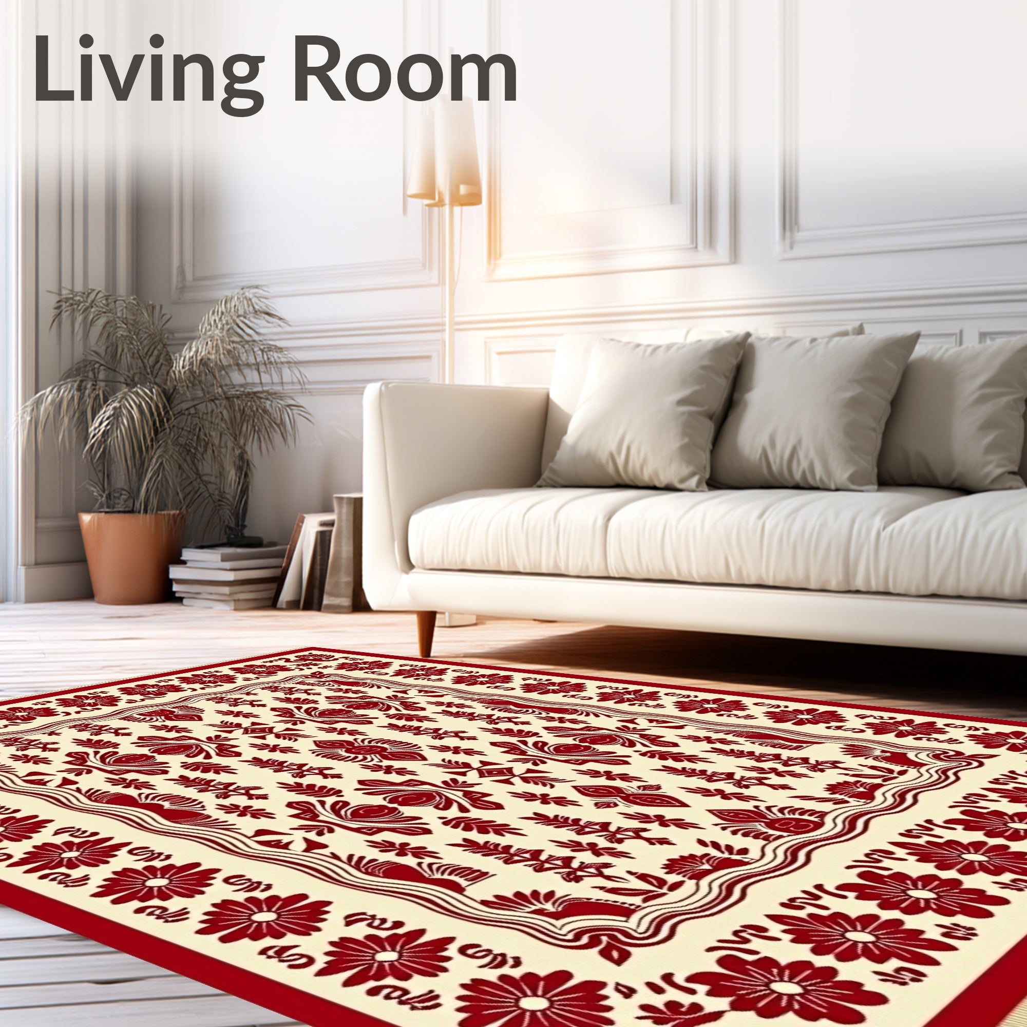 Flatwoven High Traffic Area Rug, Artisan Floral Mosaic Interlocking Petal Array Folk Style, Non Slip, Stain Resistant, Washable Area Rugs for Living Room, Bedroom (Ivory) Overview: