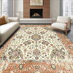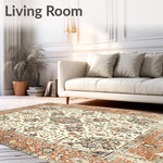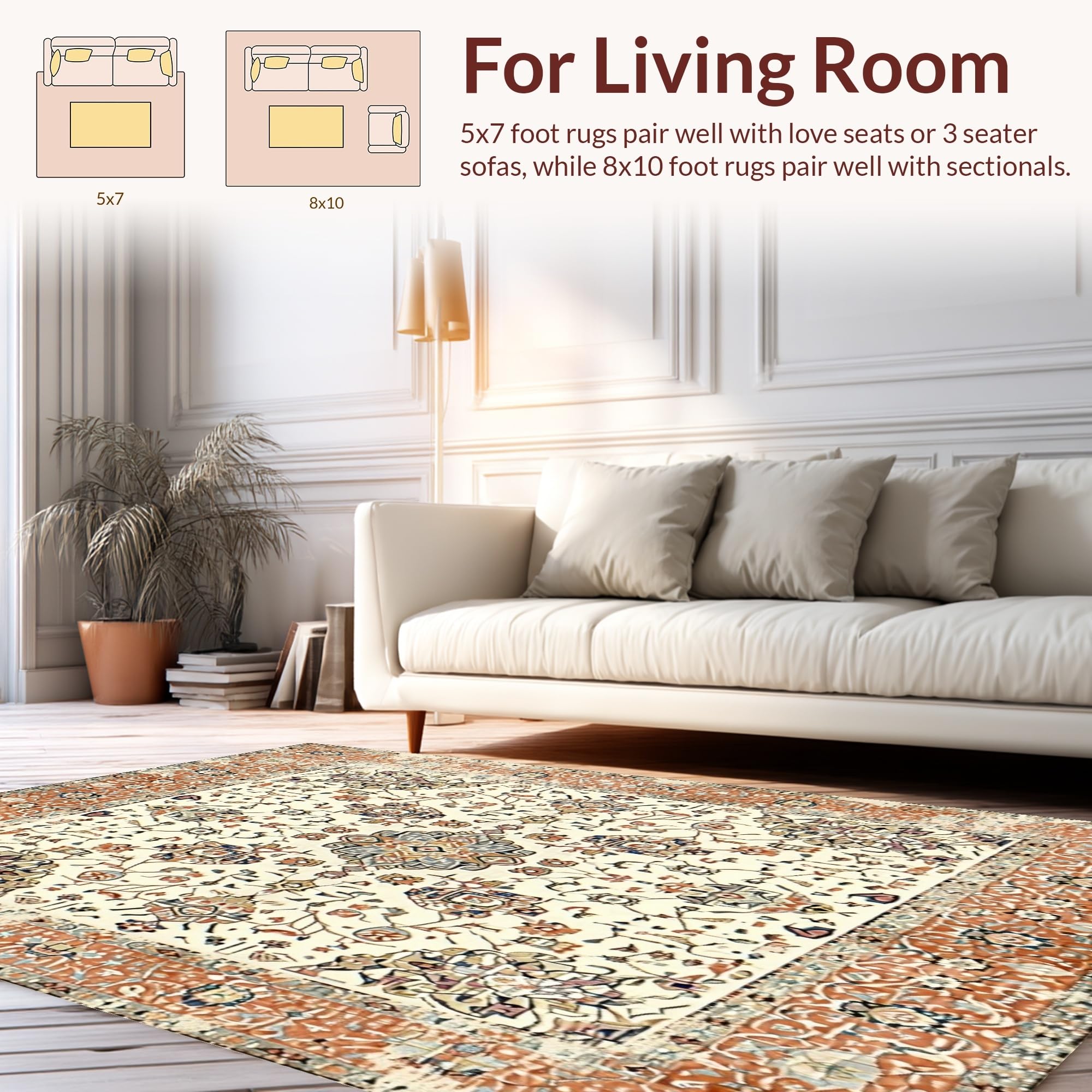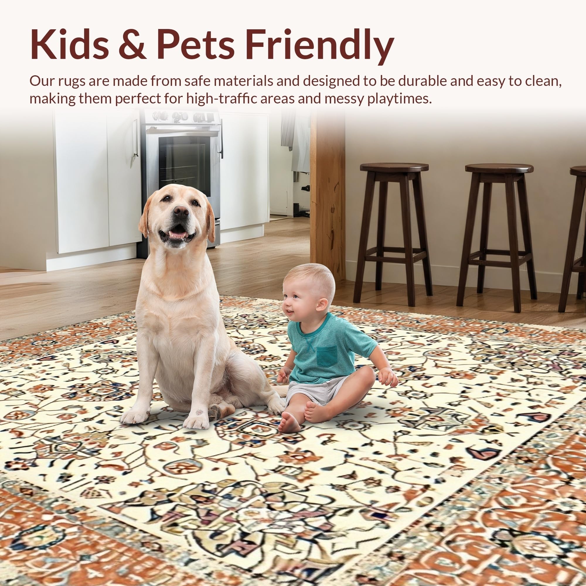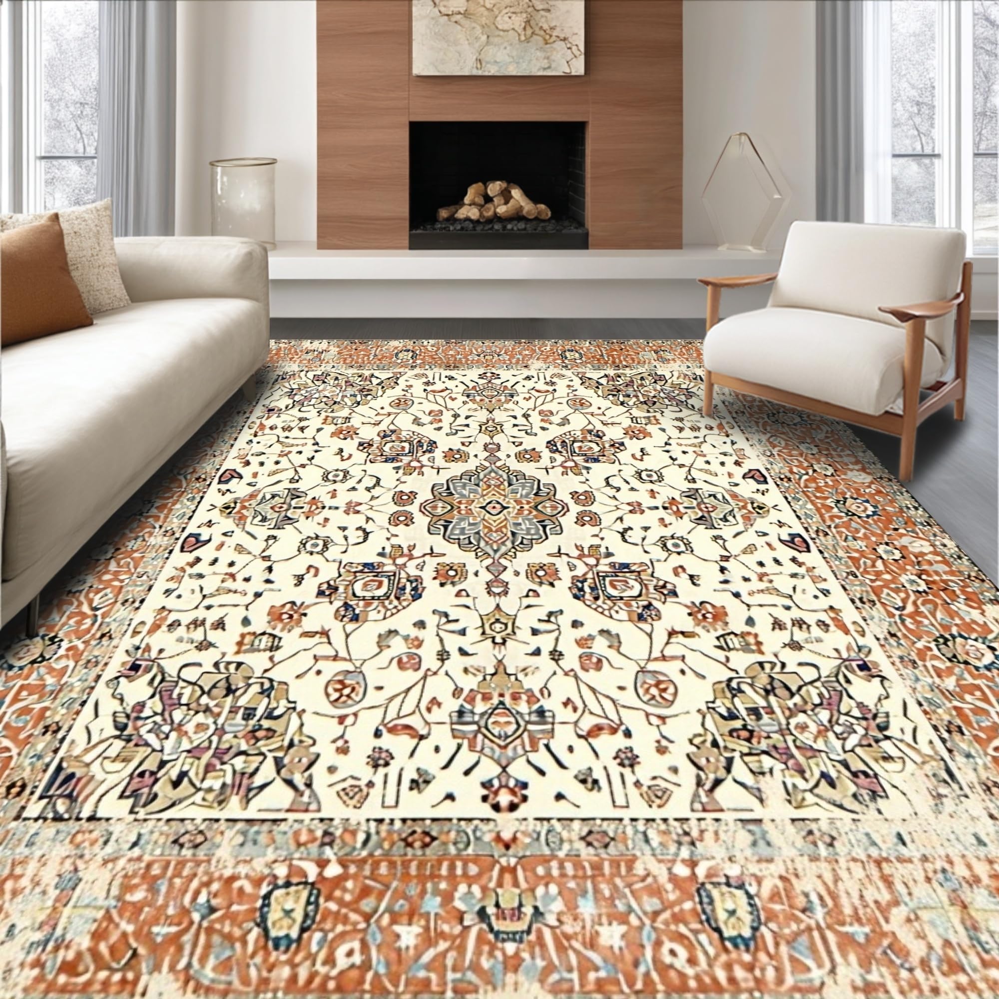 Ultra Soft Area Rug, Non Slip, Stain Resistant, Washable Area Rugs for Living Room, Bedroom, Artisan Inspired Medallion with Harmonious Geometric Floral Designs(Orange) Overview: