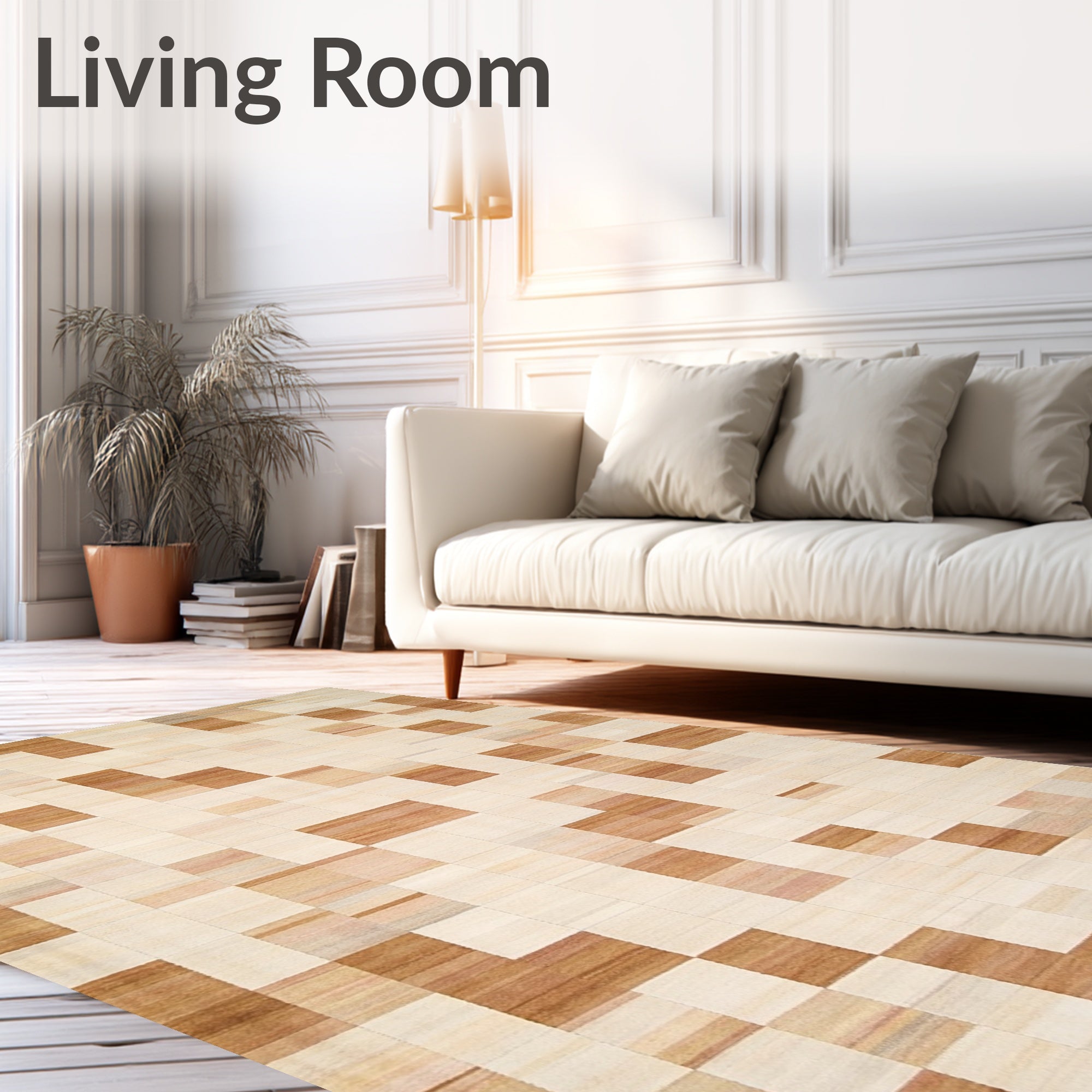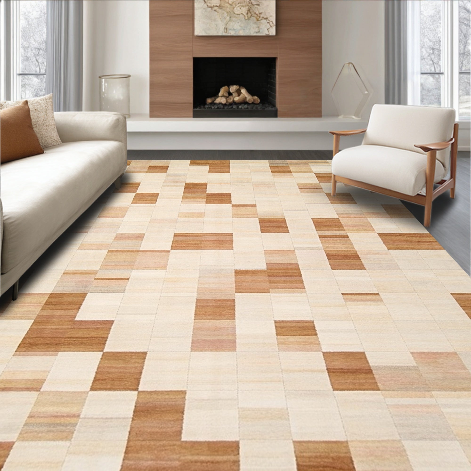 Ultra Soft Area Rug, Non Slip, Stain Resistant, Washable Area Rugs for Living Room, Bedroom, Artisan Inspired Neutral Cubist Checks with Gentle Beige Contrasts(Beige) Overview: