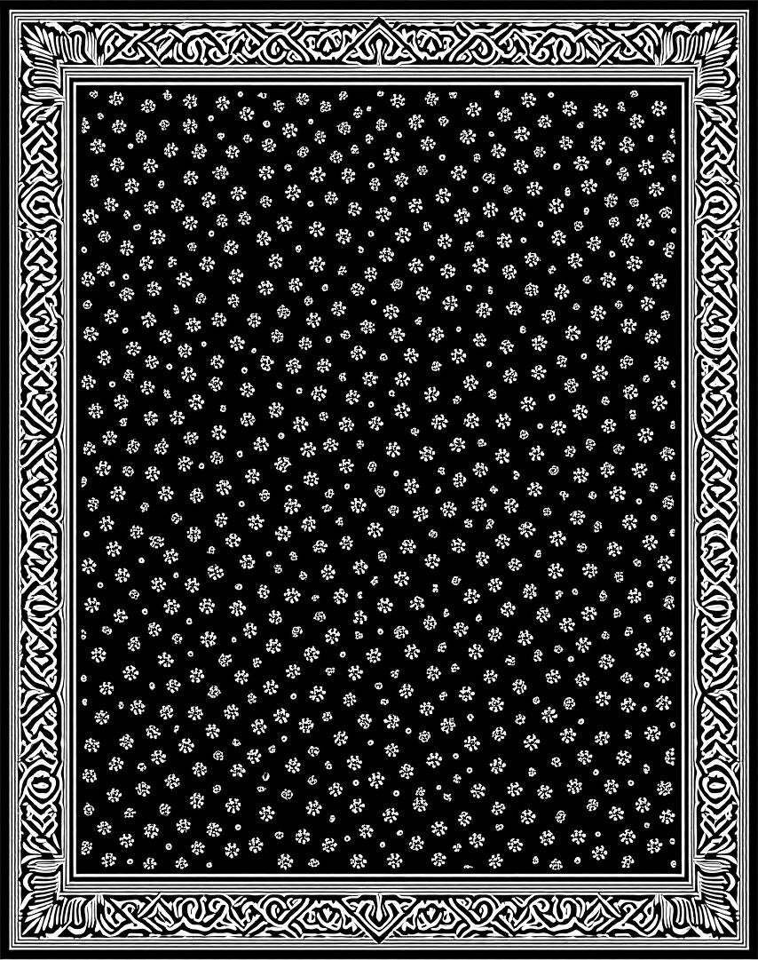 Artisan Interlocking Mosaic with Flourishing Botanical Arabesque(Black)