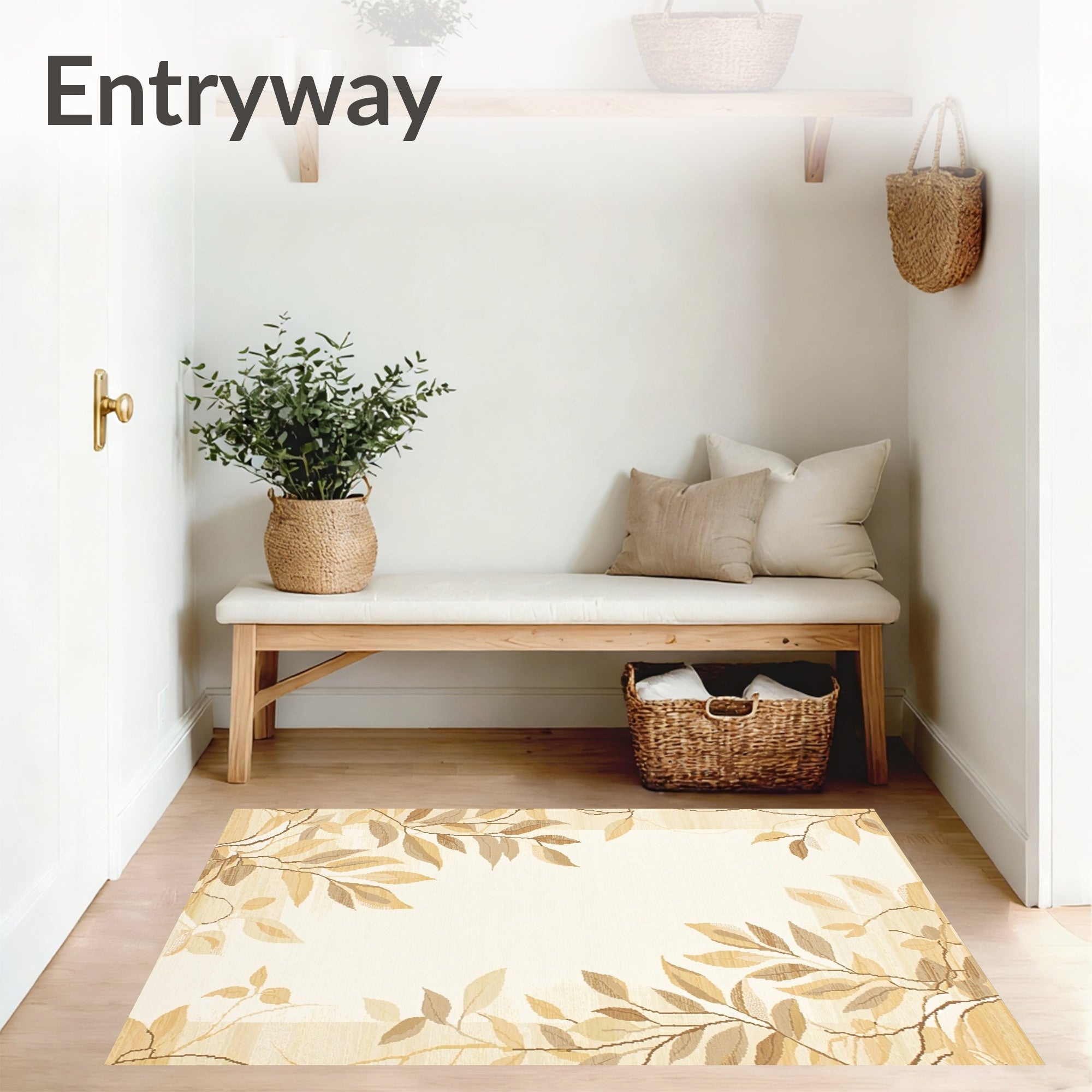 Ultra Soft Area Rug, Non Slip, Stain Resistant, Washable Area Rugs for Living Room, Bedroom, Artisan Leaf Motif Area Non Slip Decorative Duo(Beige) Overview: