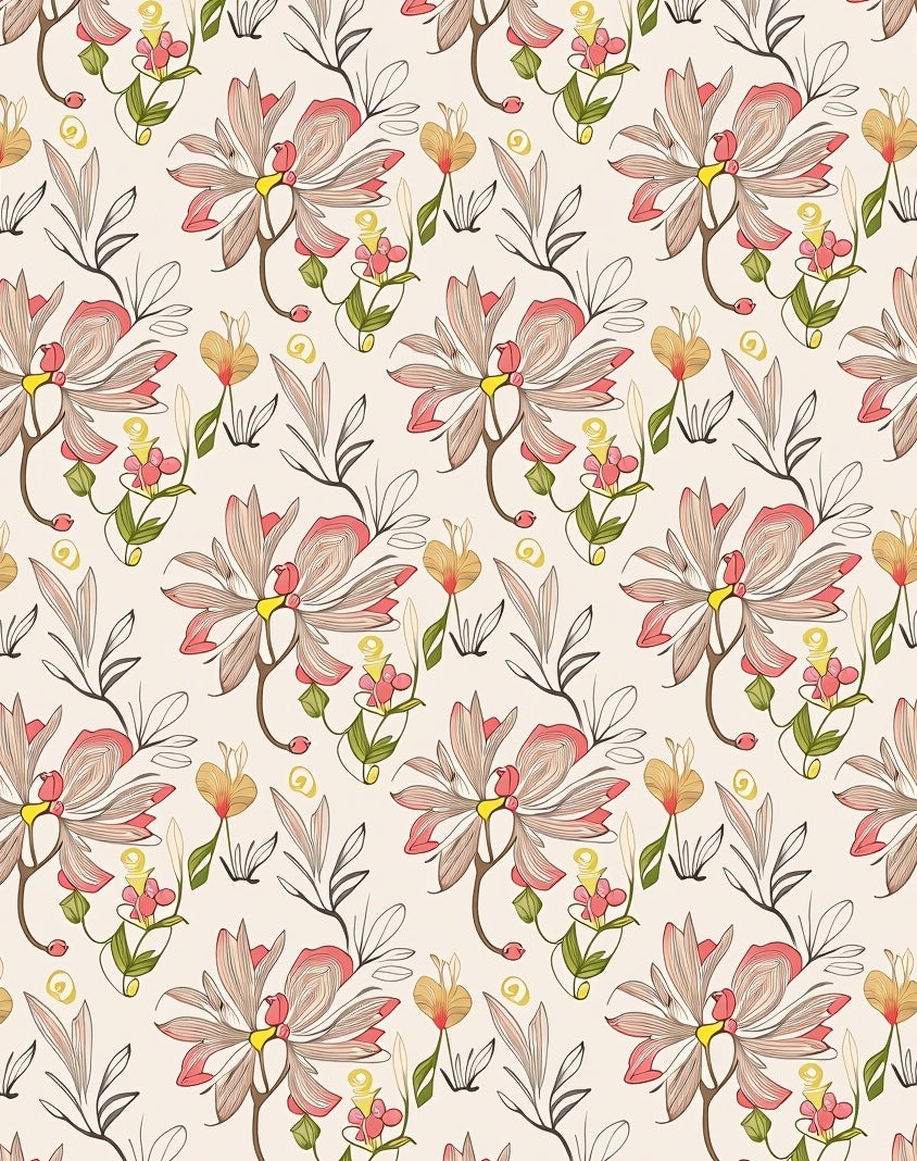 Artisan Meadow Blooms Featuring Vintage Botanical Illustrations(Pink)