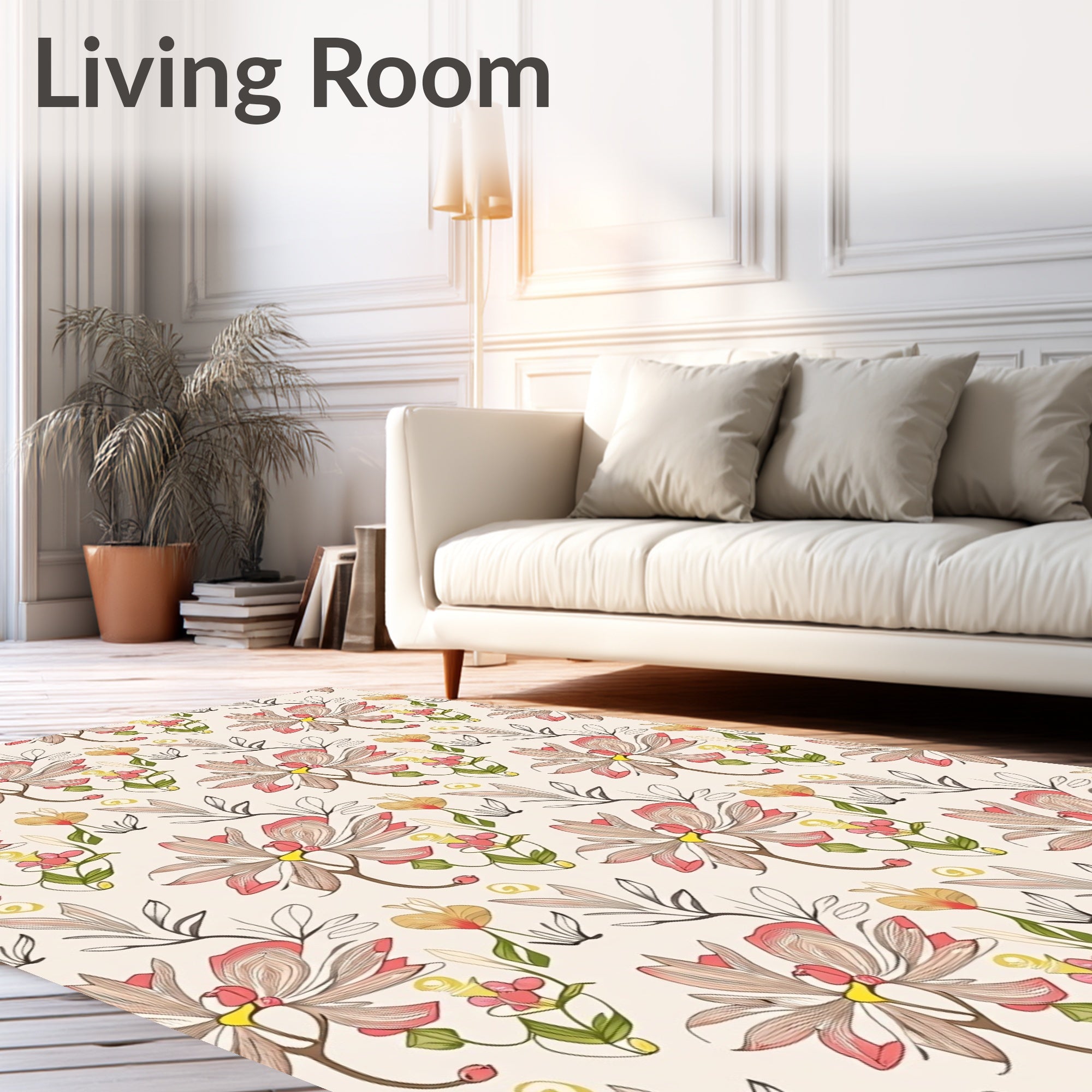 Ultra Soft Area Rug, Non Slip, Stain Resistant, Washable Area Rugs for Living Room, Bedroom, Artisan Meadow Blooms Featuring Vintage Botanical Illustrations(Pink) Overview: