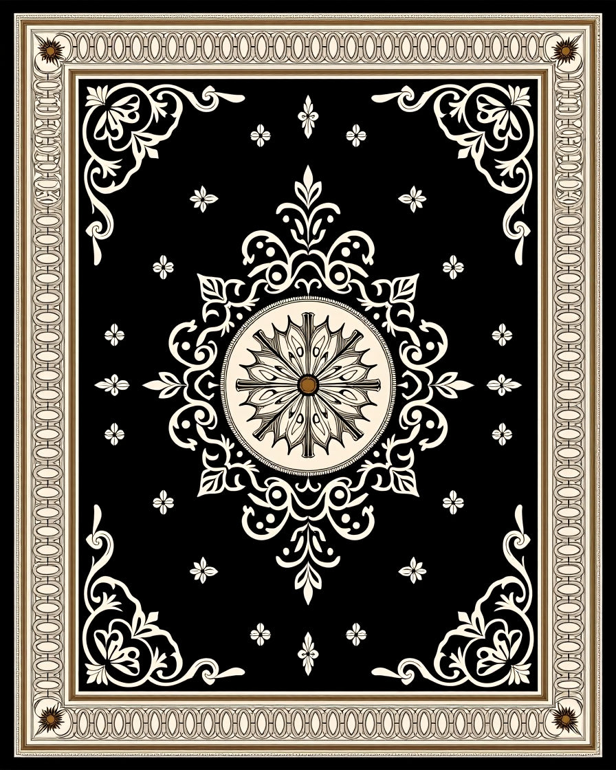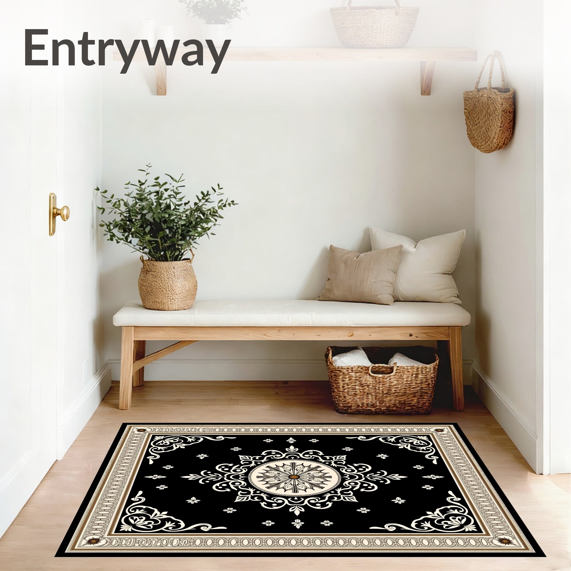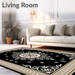 Ultra Soft Area Rug, Non Slip, Stain Resistant, Washable Area Rugs for Living Room, Bedroom, Artisan Medallion Tapestry with Baroque Flourish Motifs(Black) Overview: