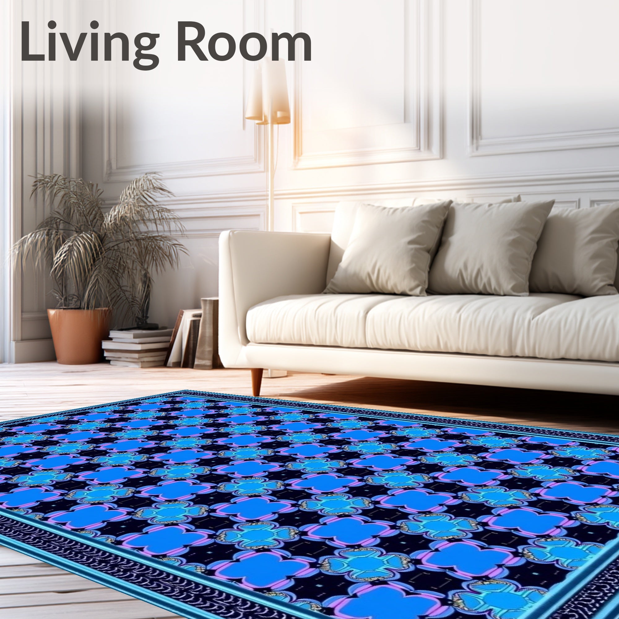 Ultra Soft Area Rug, Non Slip, Stain Resistant, Washable Area Rugs for Living Room, Bedroom, Artisan Mosaic Interlocking Dorm Friendly Low Profile(Blue) Overview: