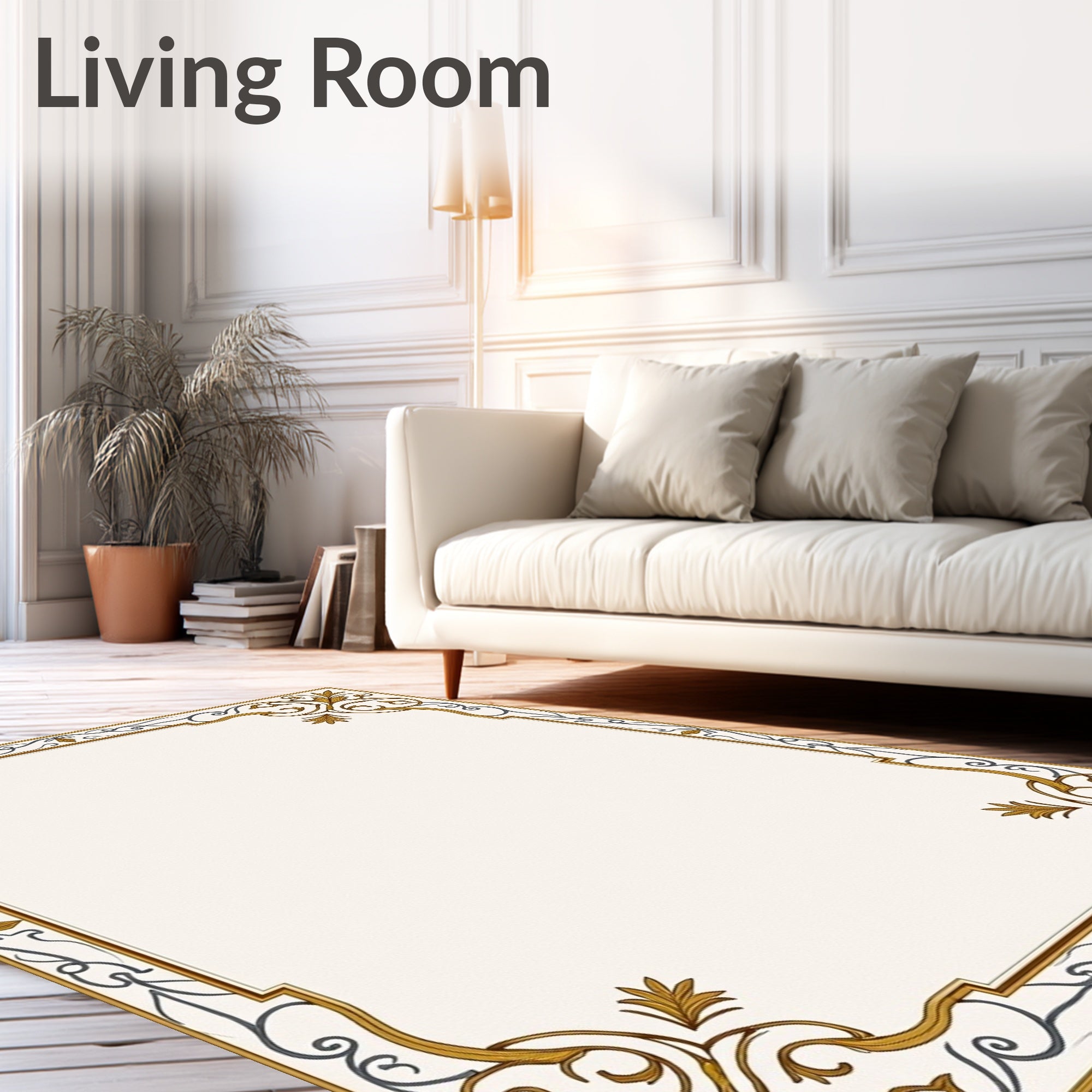 Ultra Soft Area Rug, Non Slip, Stain Resistant, Washable Area Rugs for Living Room, Bedroom, Artisan Scrollwork Adorned with Ornate Baroque Inspired(Gold) Overview: