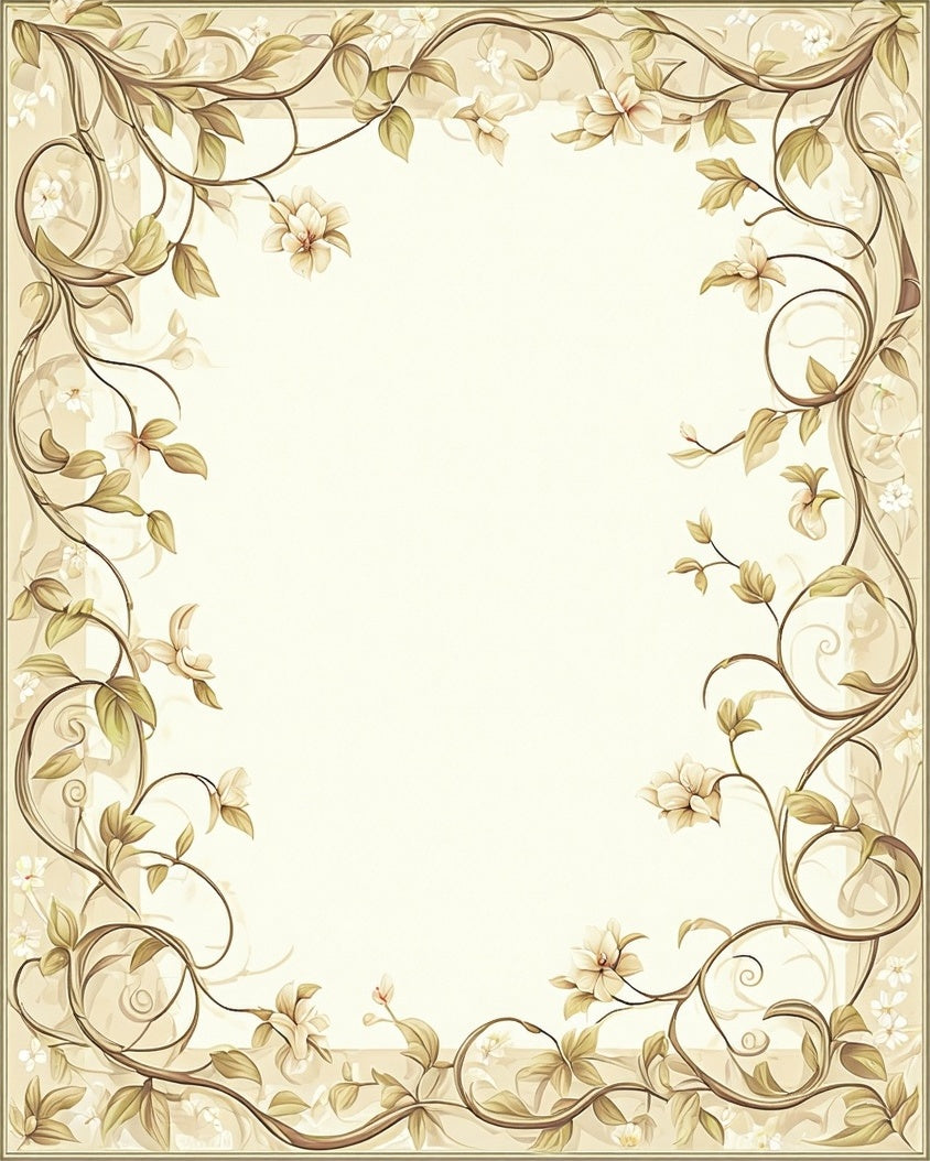 Artisan Scrollwork Elegant Border Botanical Accent Design(Beige)