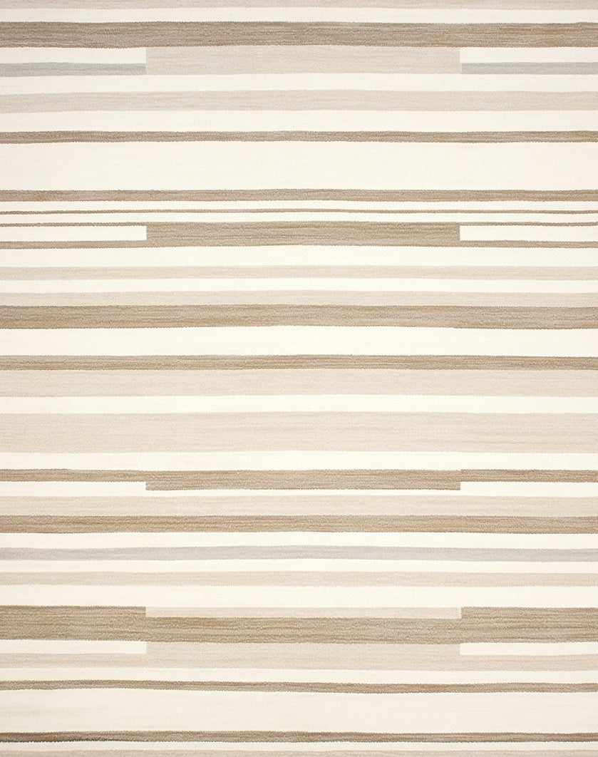 Artisan Striped Area Featuring Linear Bands and Subtle Chevron Motifs(Beige)