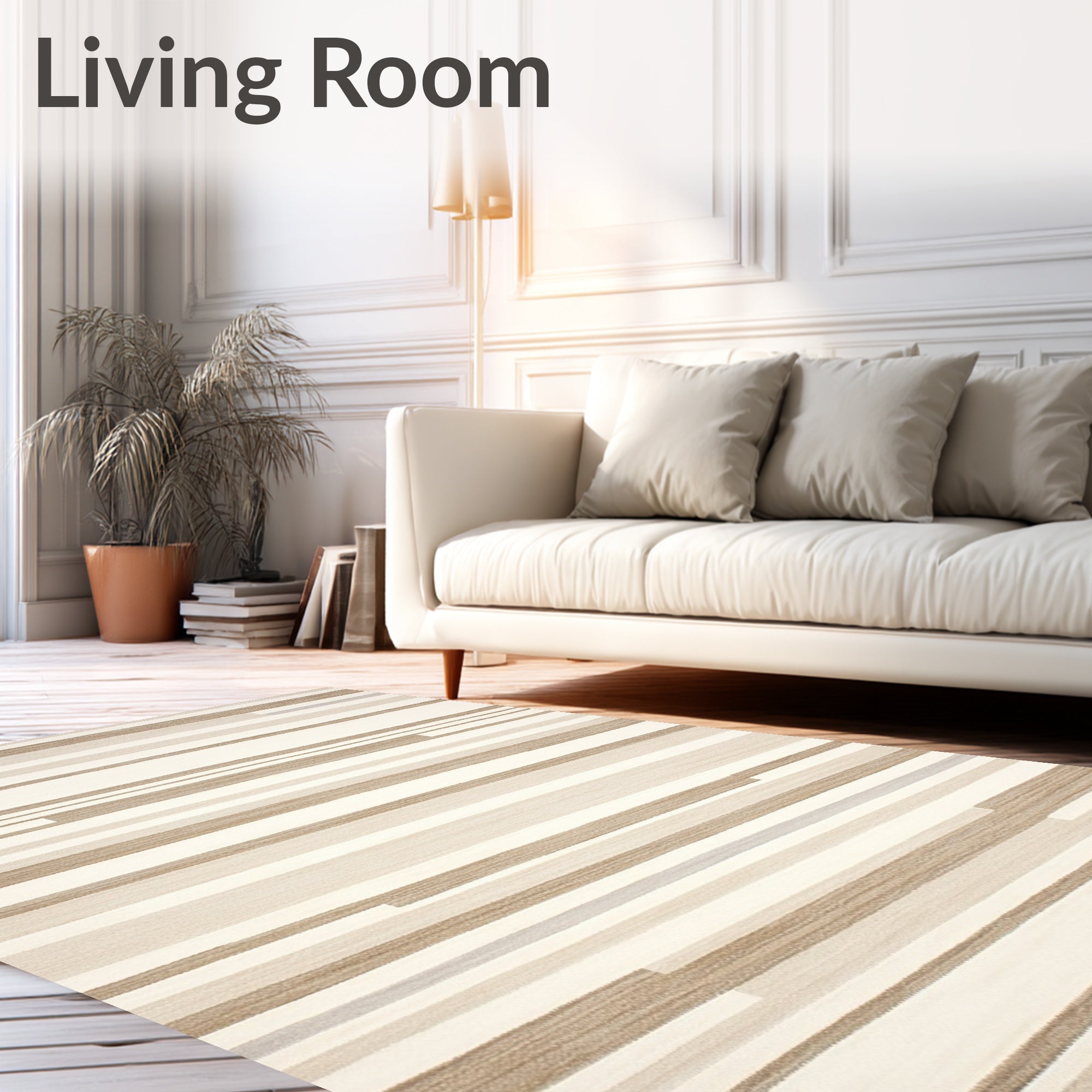 Ultra Soft Area Rug, Non Slip, Stain Resistant, Washable Area Rugs for Living Room, Bedroom, Artisan Striped Area Featuring Linear Bands and Subtle Chevron Motifs(Beige) Overview: