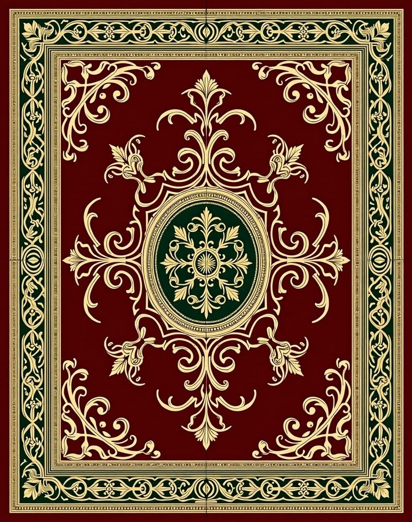 Artisan Tapestry Medallion Motif with Interlocking Filigree and Ornament(Red)