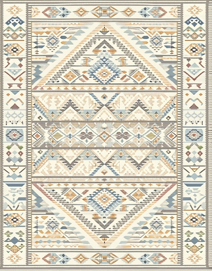 Ultra Soft Area Rug, Non Slip, Stain Resistant, Washable Area Rugs for Living Room, Bedroom, Artisan Tribal Medallion Area Showcasing Textured Layered Diamonds(Beige) Overview: