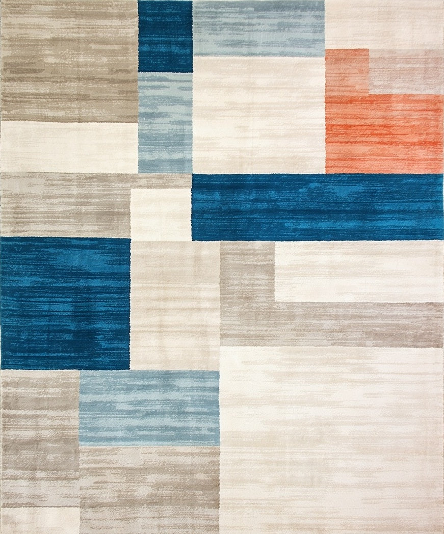 Ultra Soft Area Rug, Non Slip, Stain Resistant, Washable Area Rugs for Living Room, Bedroom, Artisan Tufted with Abstract Beige and Blue Color Blocks(Gray) Overview: