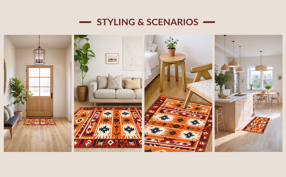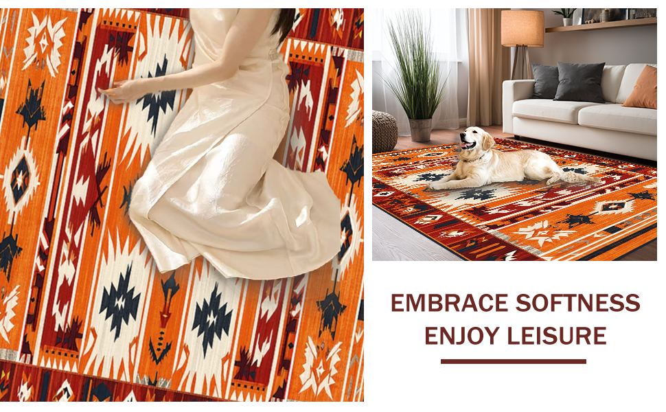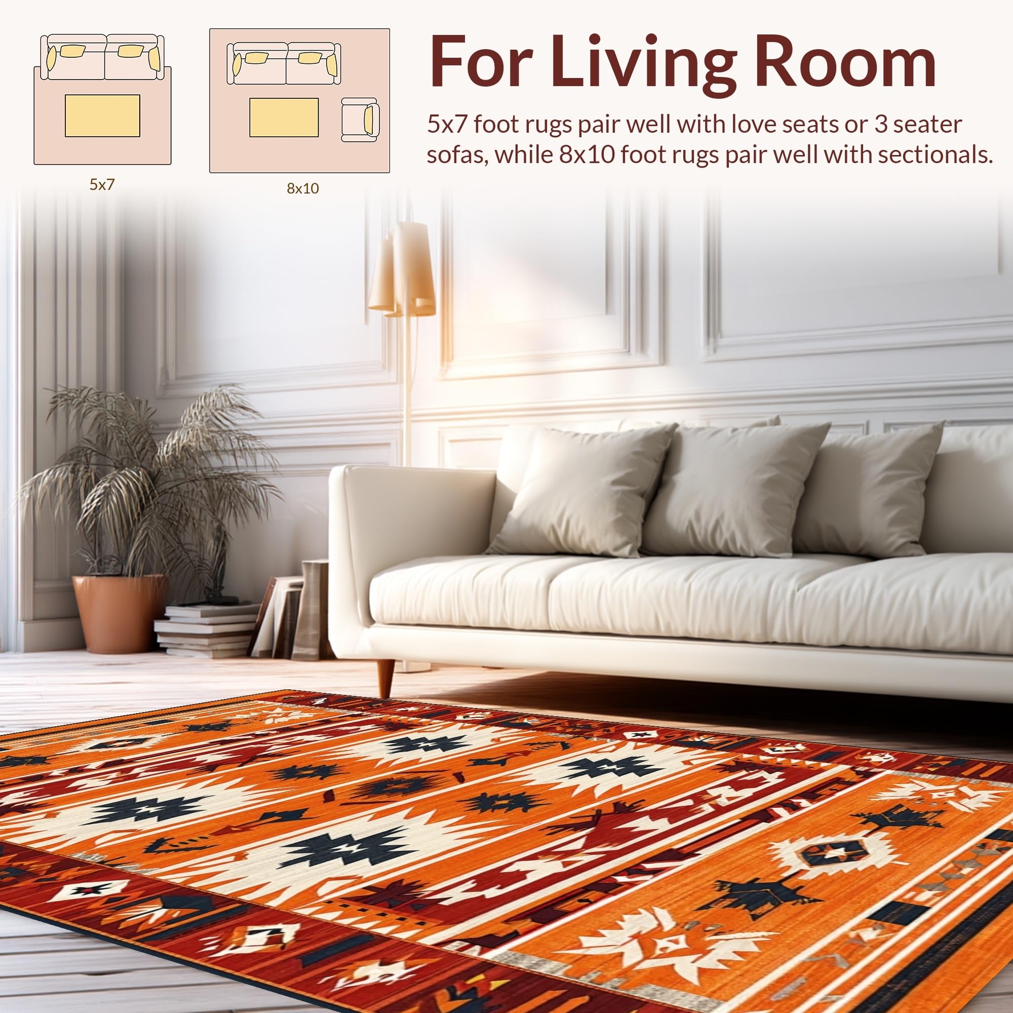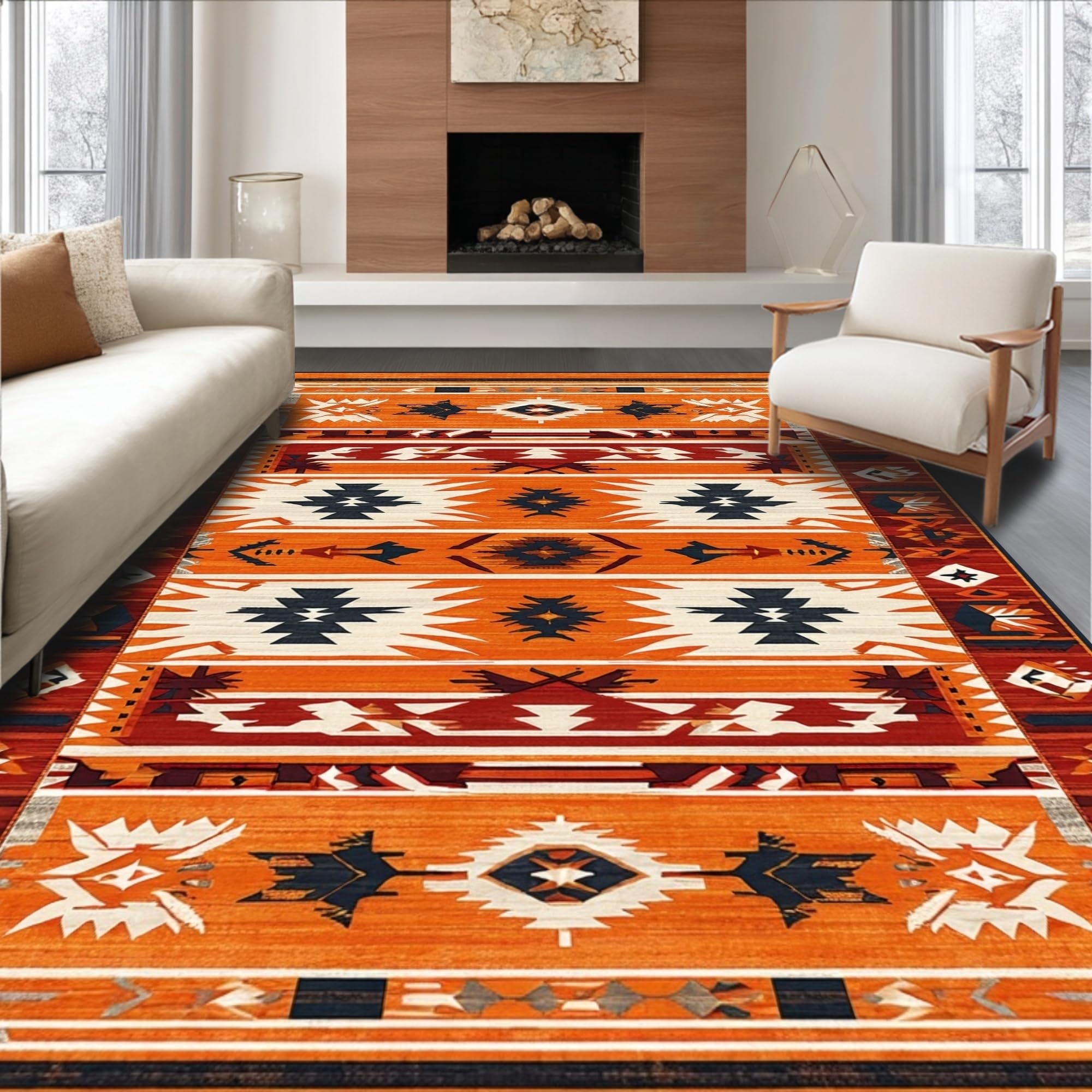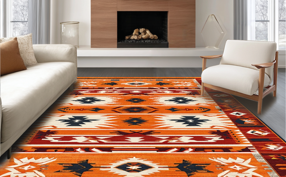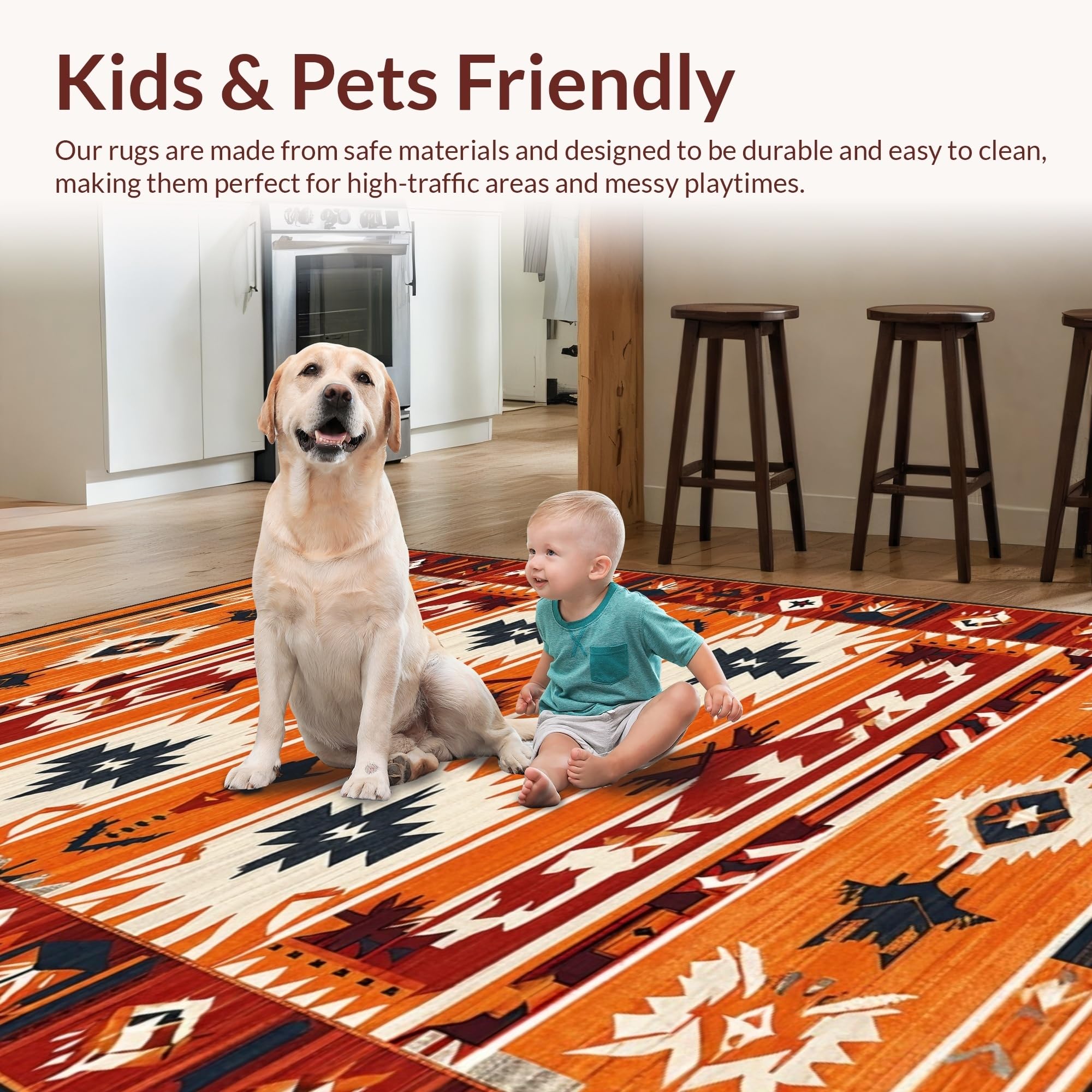 Ultra Soft Area Rug, Non Slip, Stain Resistant, Washable Area Rugs for Living Room, Bedroom, Artisanal Trellis Inspired Layout(Orange) Overview: