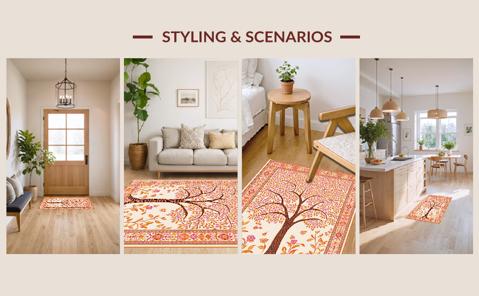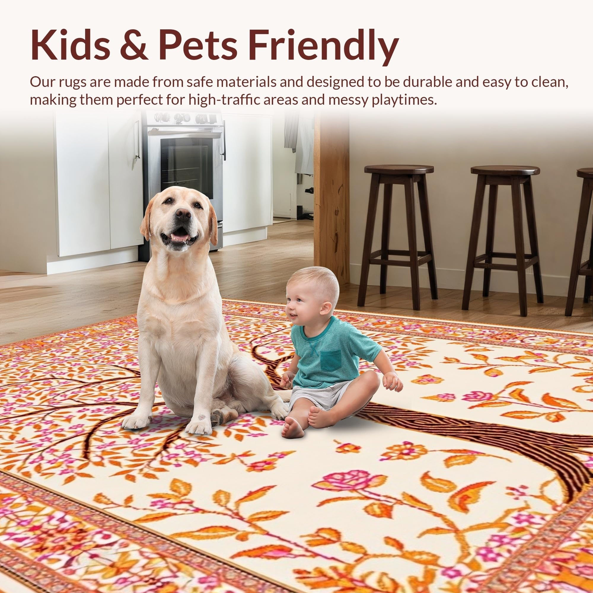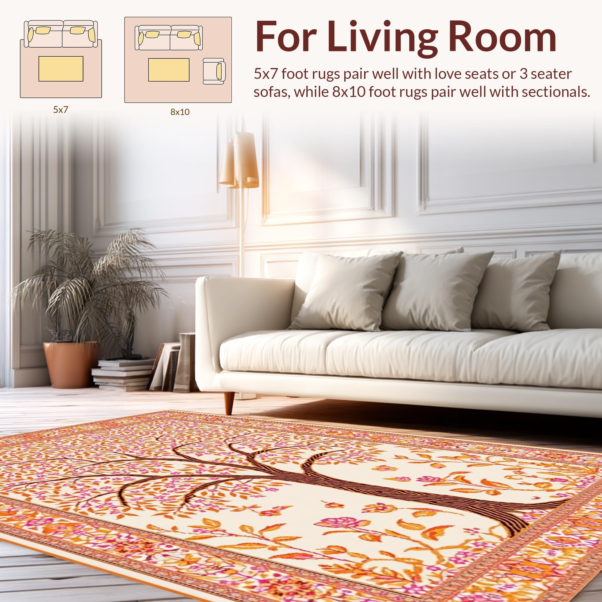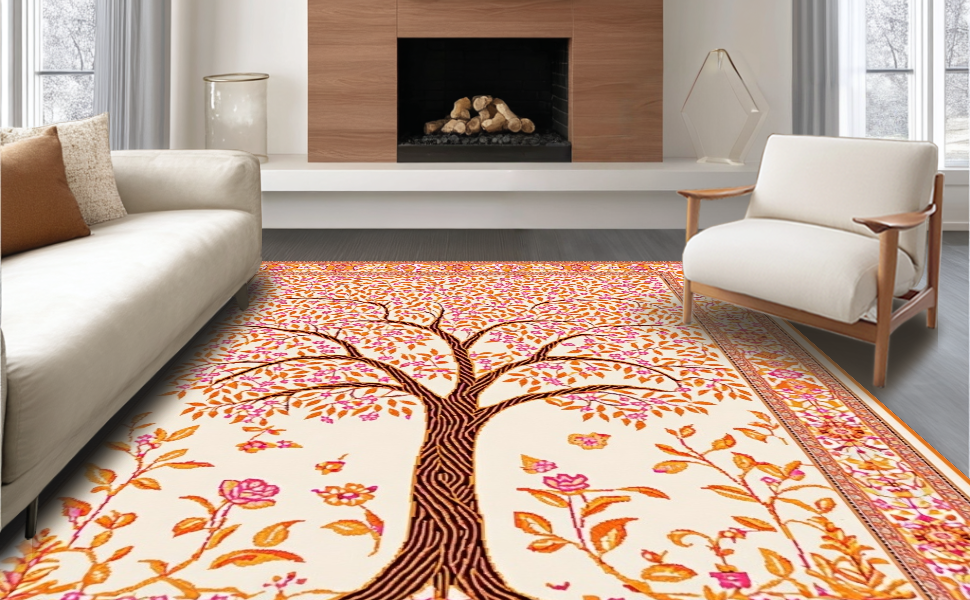 Ultra Soft Area Rug, Non Slip, Stain Resistant, Washable Area Rugs for Living Room, Bedroom, Artistic Abstract Growth Symbolism(Beige) Overview: