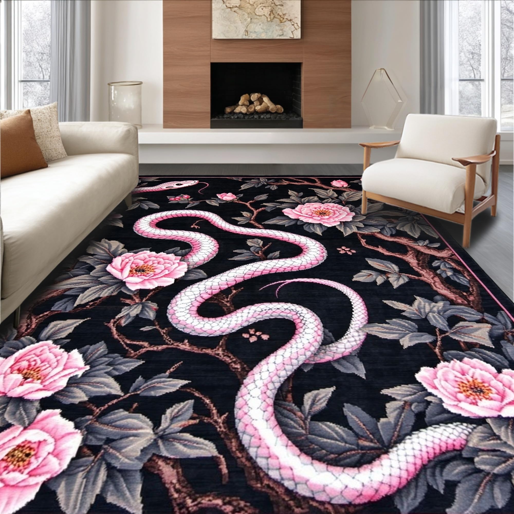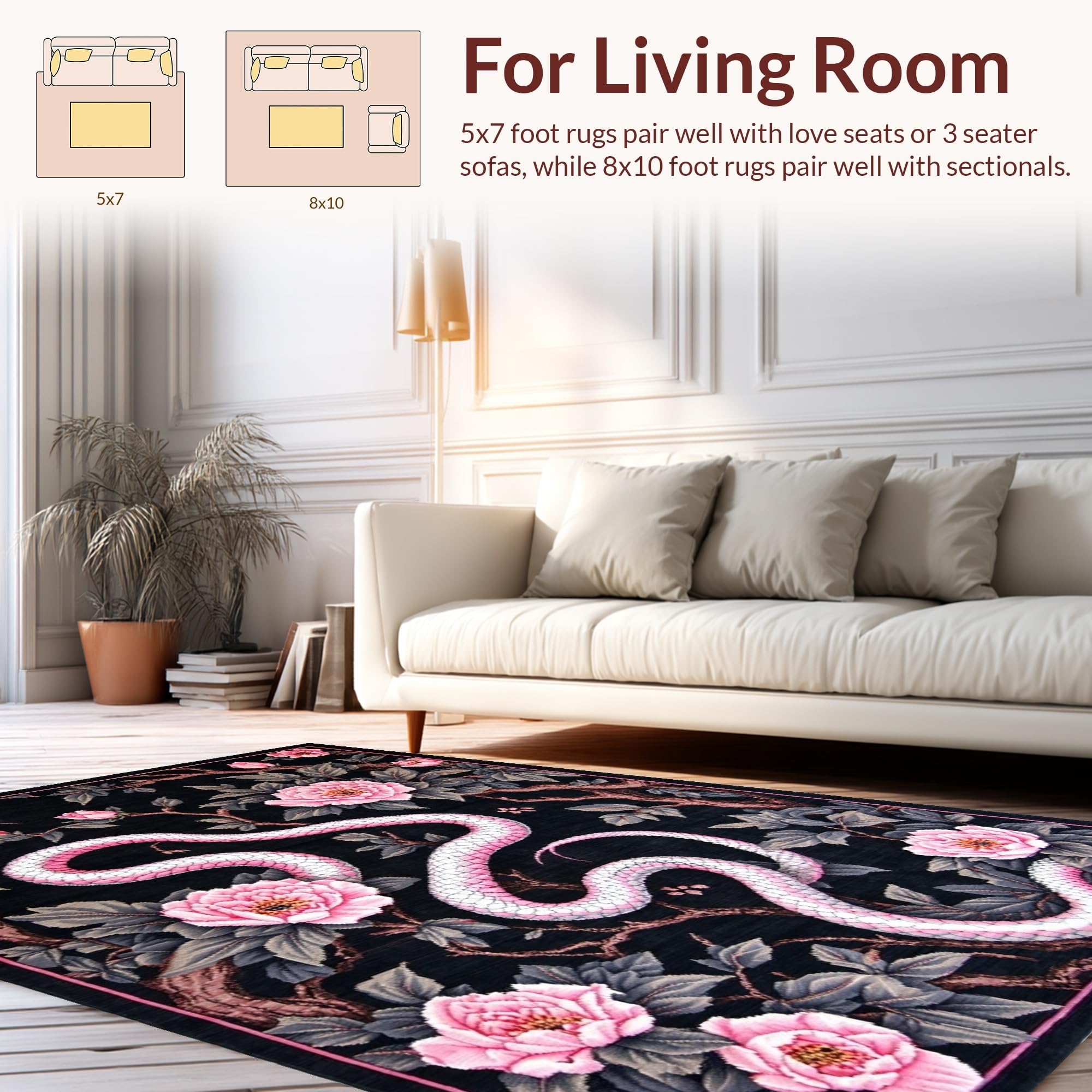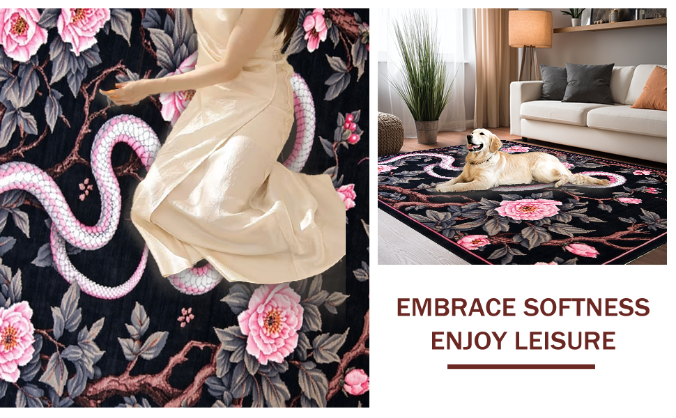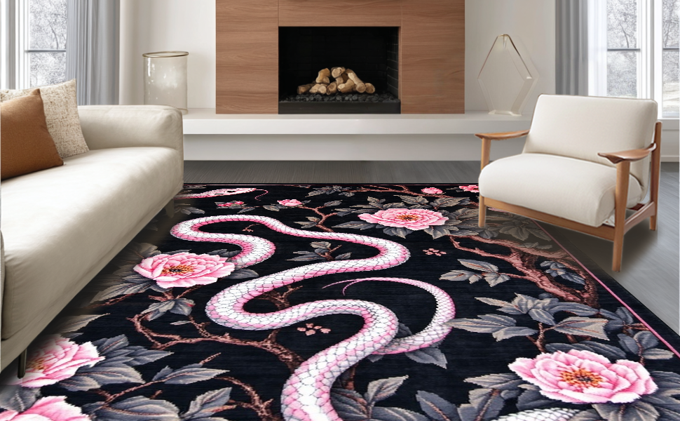 Ultra Soft Area Rug, Non Slip, Stain Resistant, Washable Area Rugs for Living Room, Bedroom, Artistic Abstract Snake Pattern(Black) Overview: