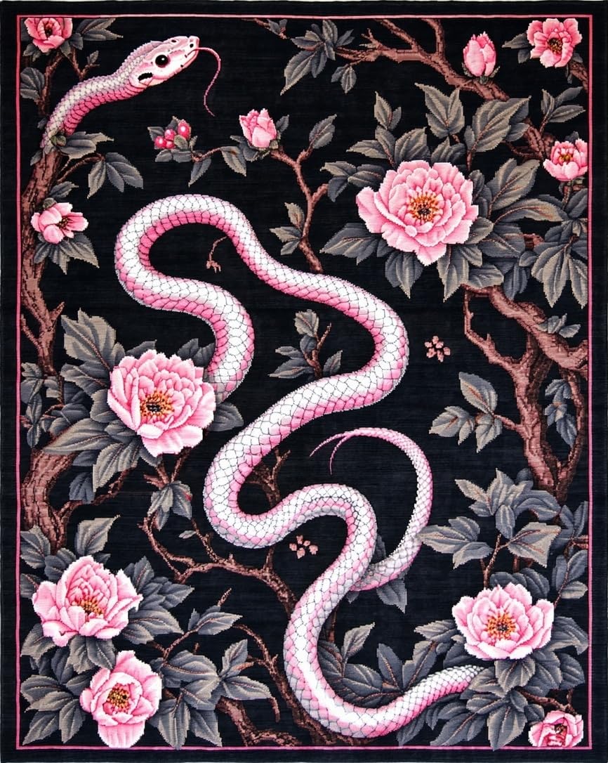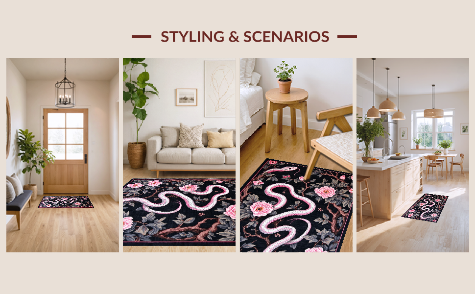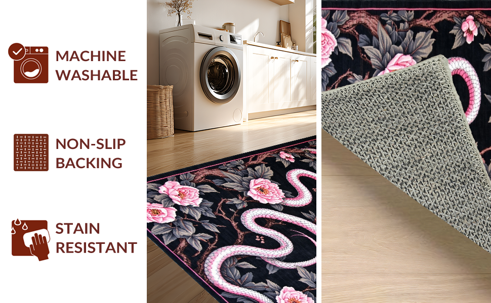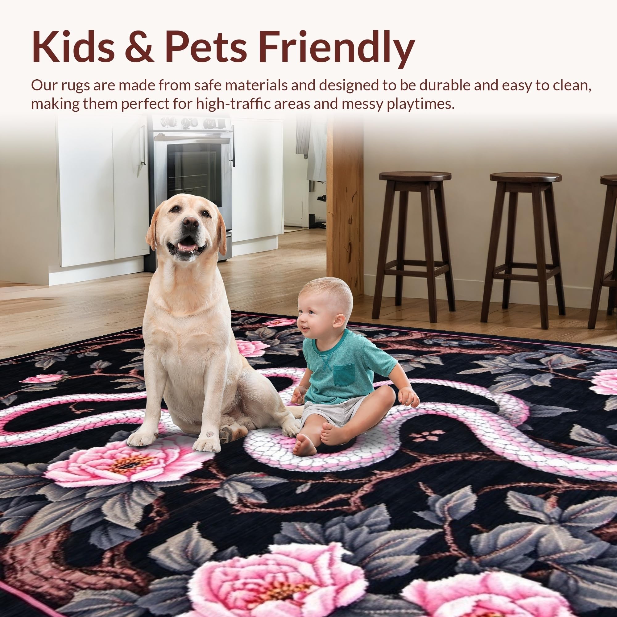 Ultra Soft Area Rug, Non Slip, Stain Resistant, Washable Area Rugs for Living Room, Bedroom, Artistic Abstract Snake Pattern(Black) Overview: