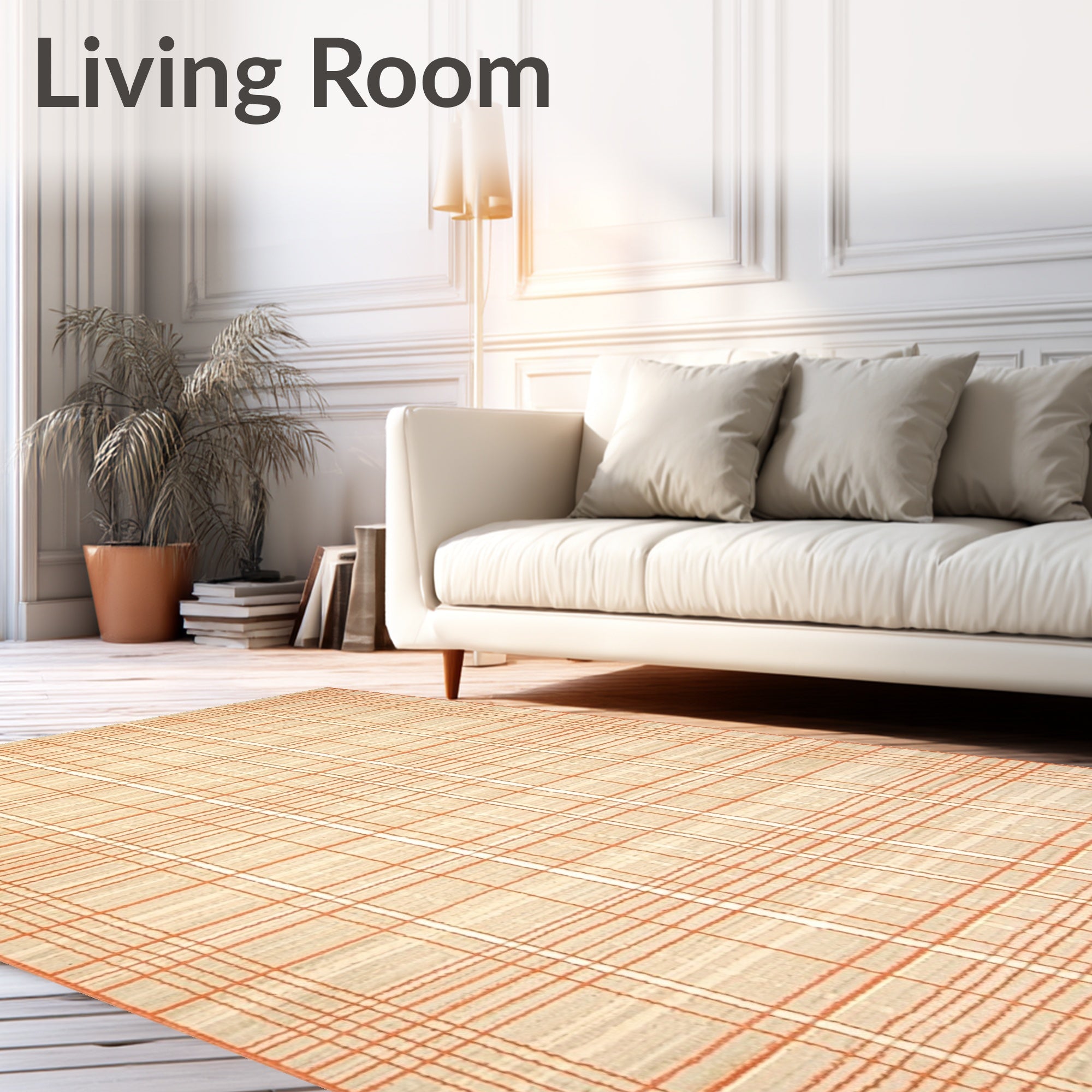 Ultra Soft Area Rug, Non Slip, Stain Resistant, Washable Area Rugs for Living Room, Bedroom, Artistic Area Abstract Geometric Design in Beige and Tangerine(Beige) Overview: