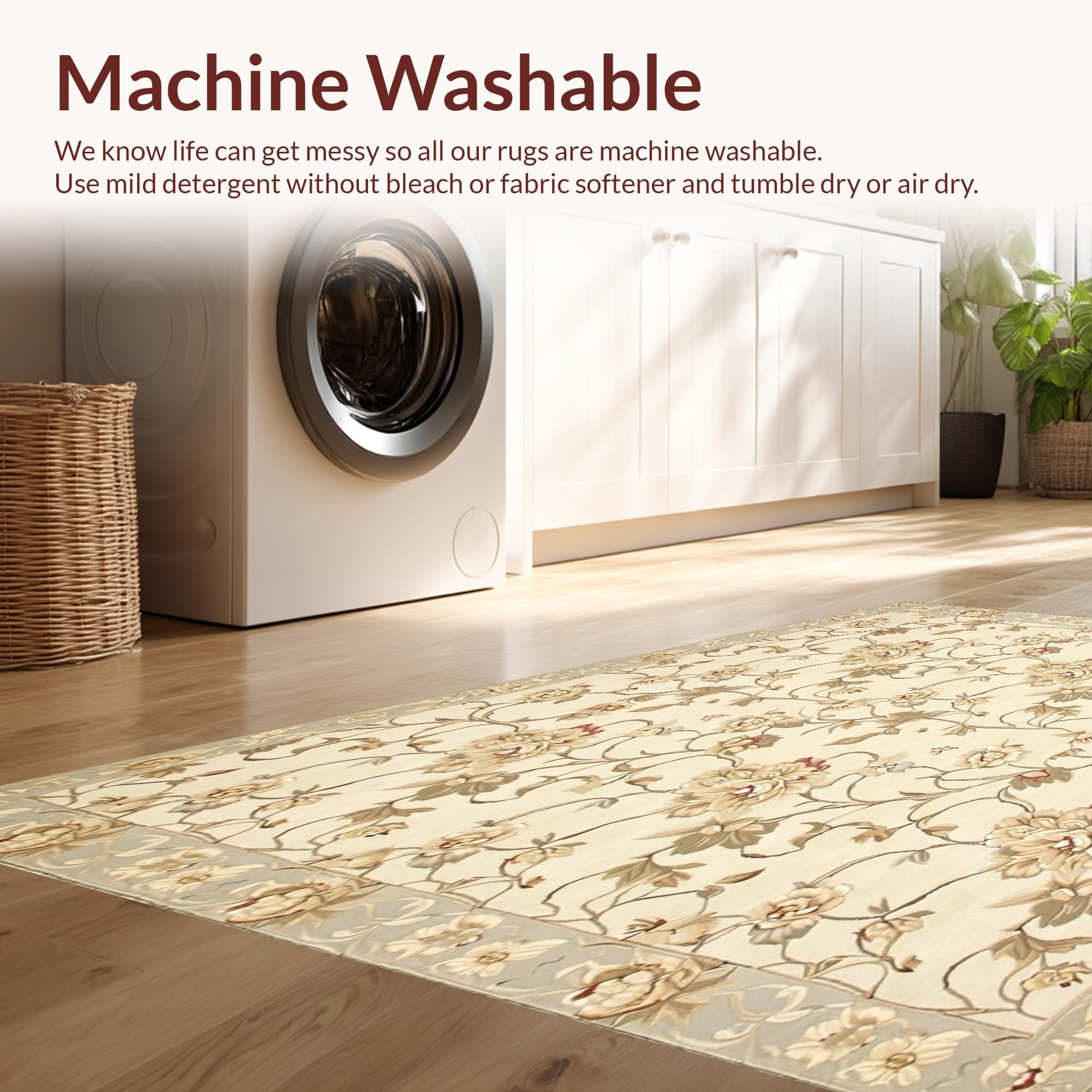 - Machine Washable: Our rugs can be easily thrown in the wash machine.