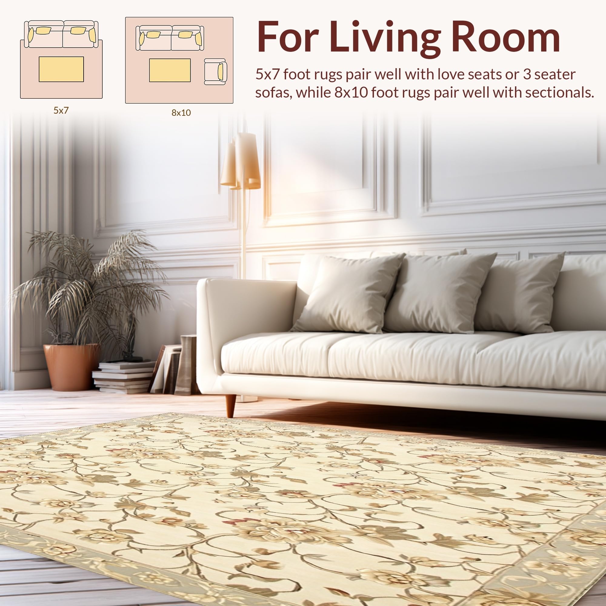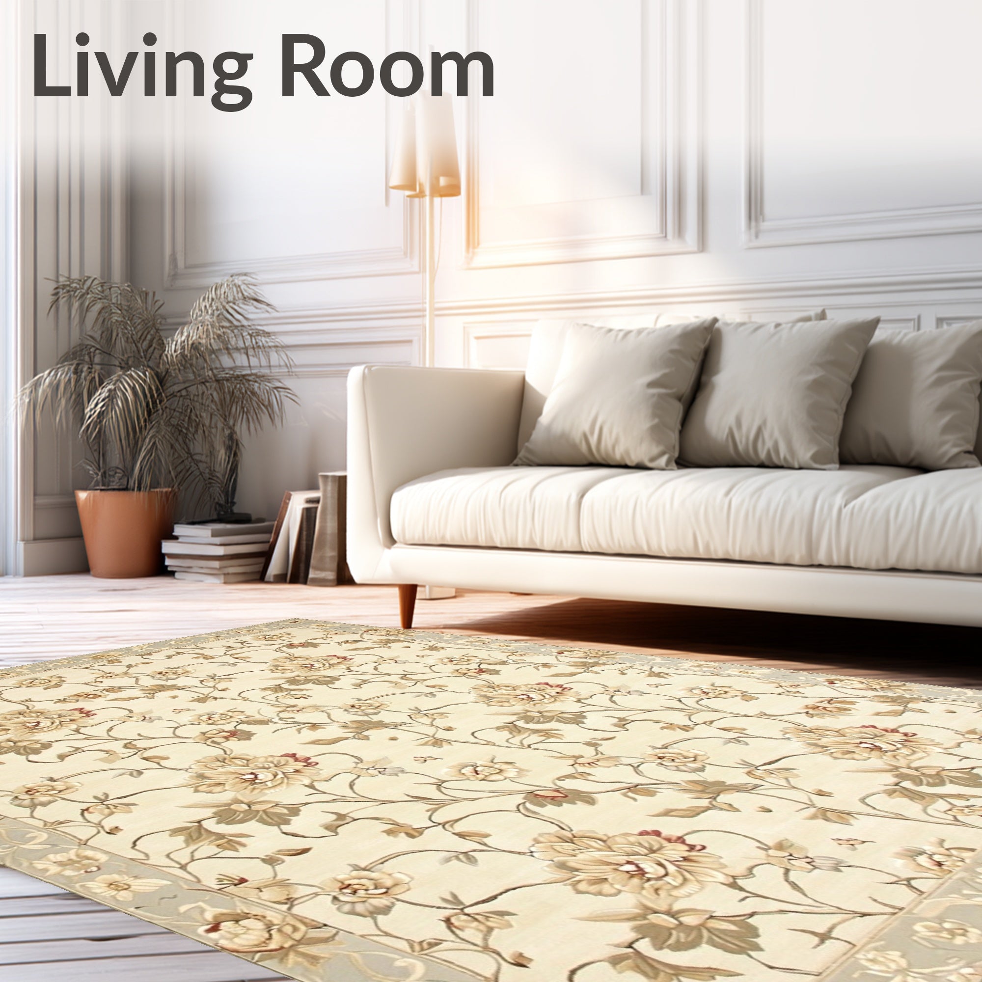 Ultra Soft Area Rug, Non Slip, Stain Resistant, Washable Area Rugs for Living Room, Bedroom, Artistic Area with Elegant Floral Motifs(Beige) Overview: