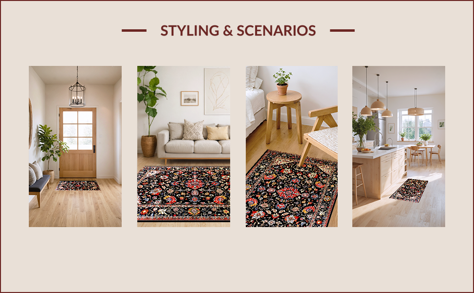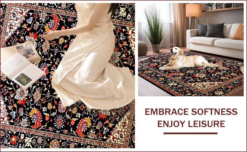 Ultra Soft Area Rug, Non Slip, Stain Resistant, Washable Area Rugs for Living Room, Bedroom, Artistic Black and Red Nature Design(Black) Overview: