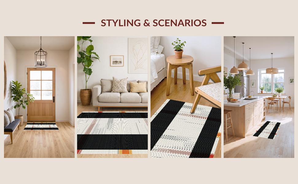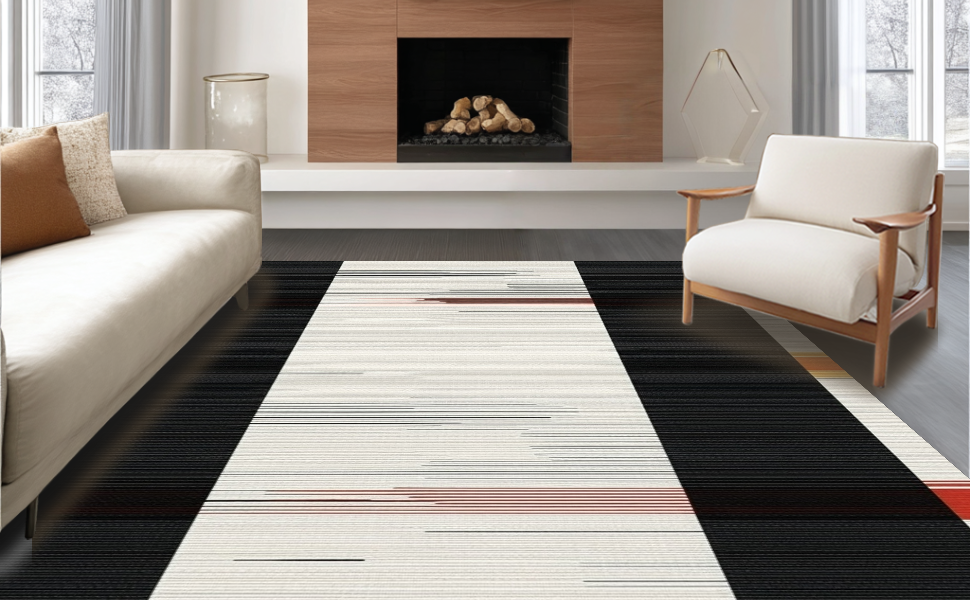 Ultra Soft Area Rug, Non Slip, Stain Resistant, Washable Area Rugs for Living Room, Bedroom, Artistic Black and White Graphic Style(Gray) Overview: