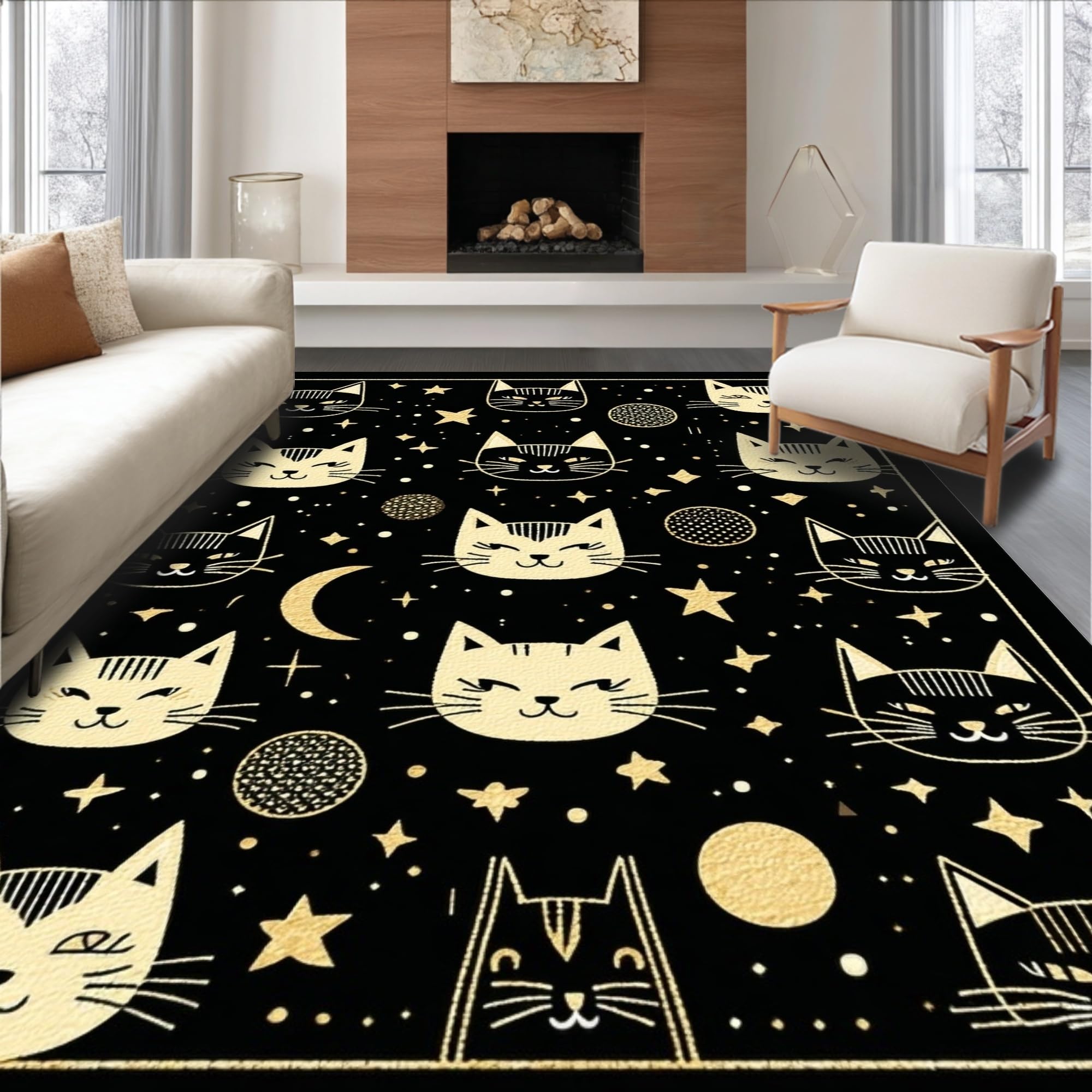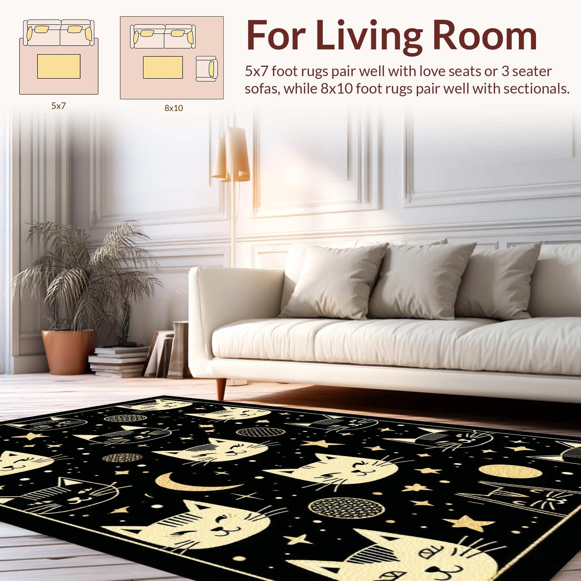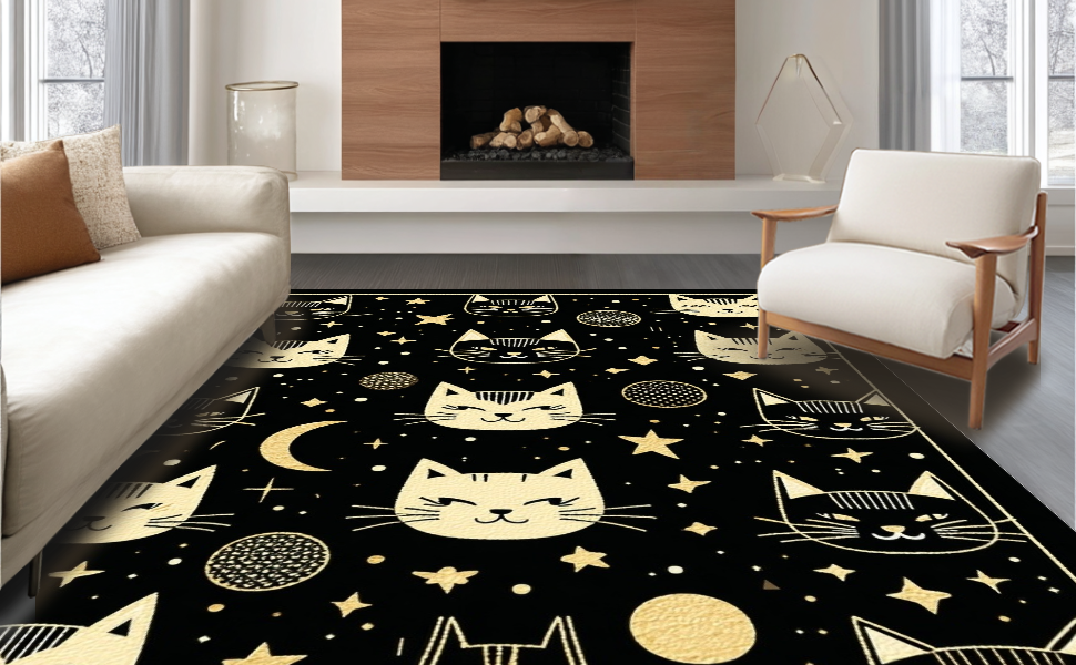 Ultra Soft Area Rug, Non Slip, Stain Resistant, Washable Area Rugs for Living Room, Bedroom, Artistic Black Cat Head Visual(Black) Overview: