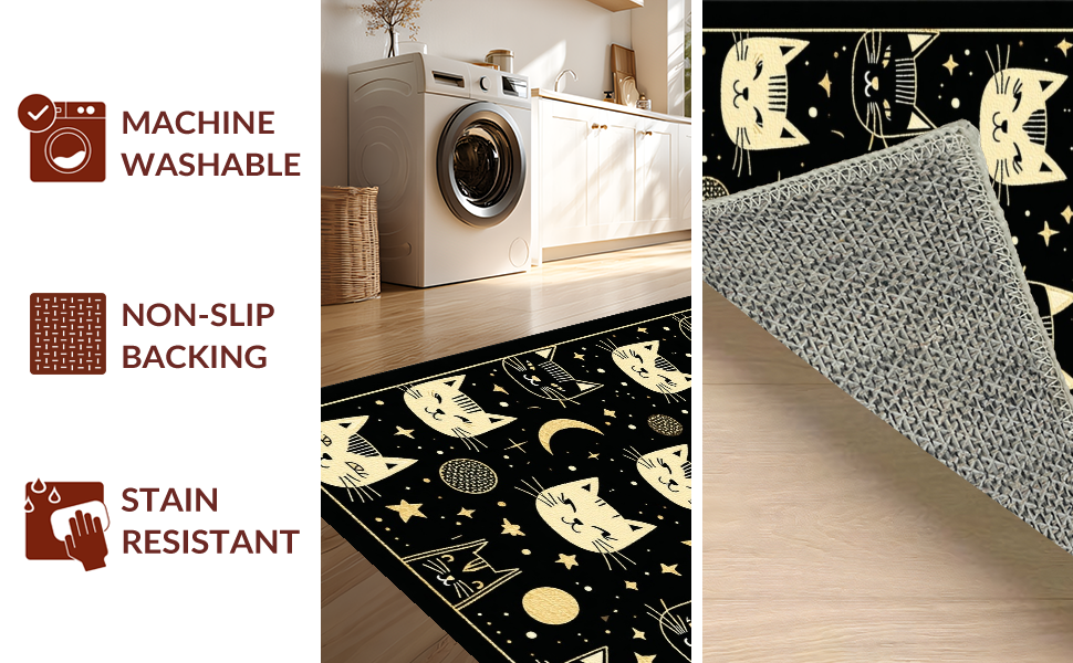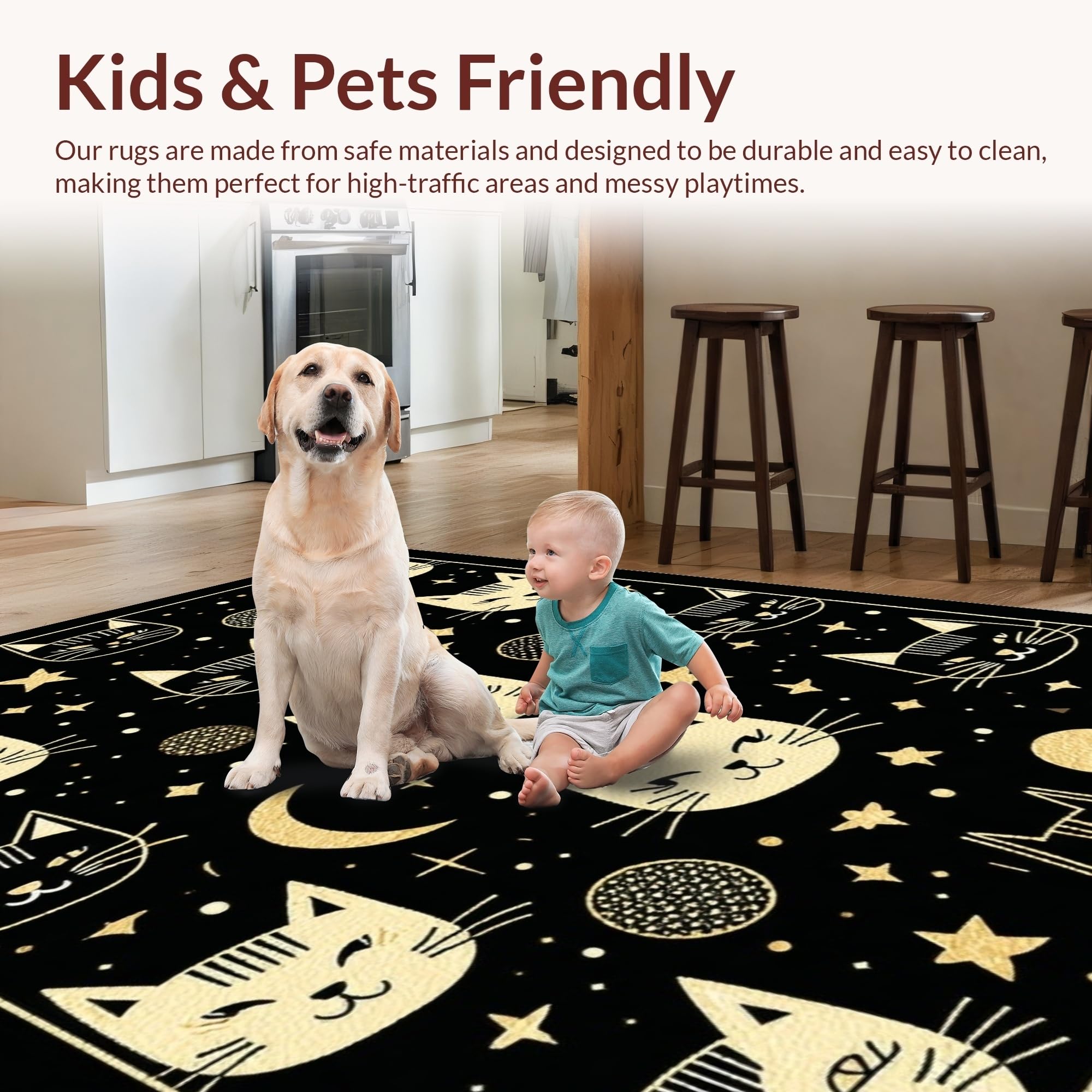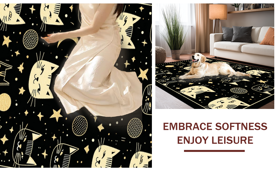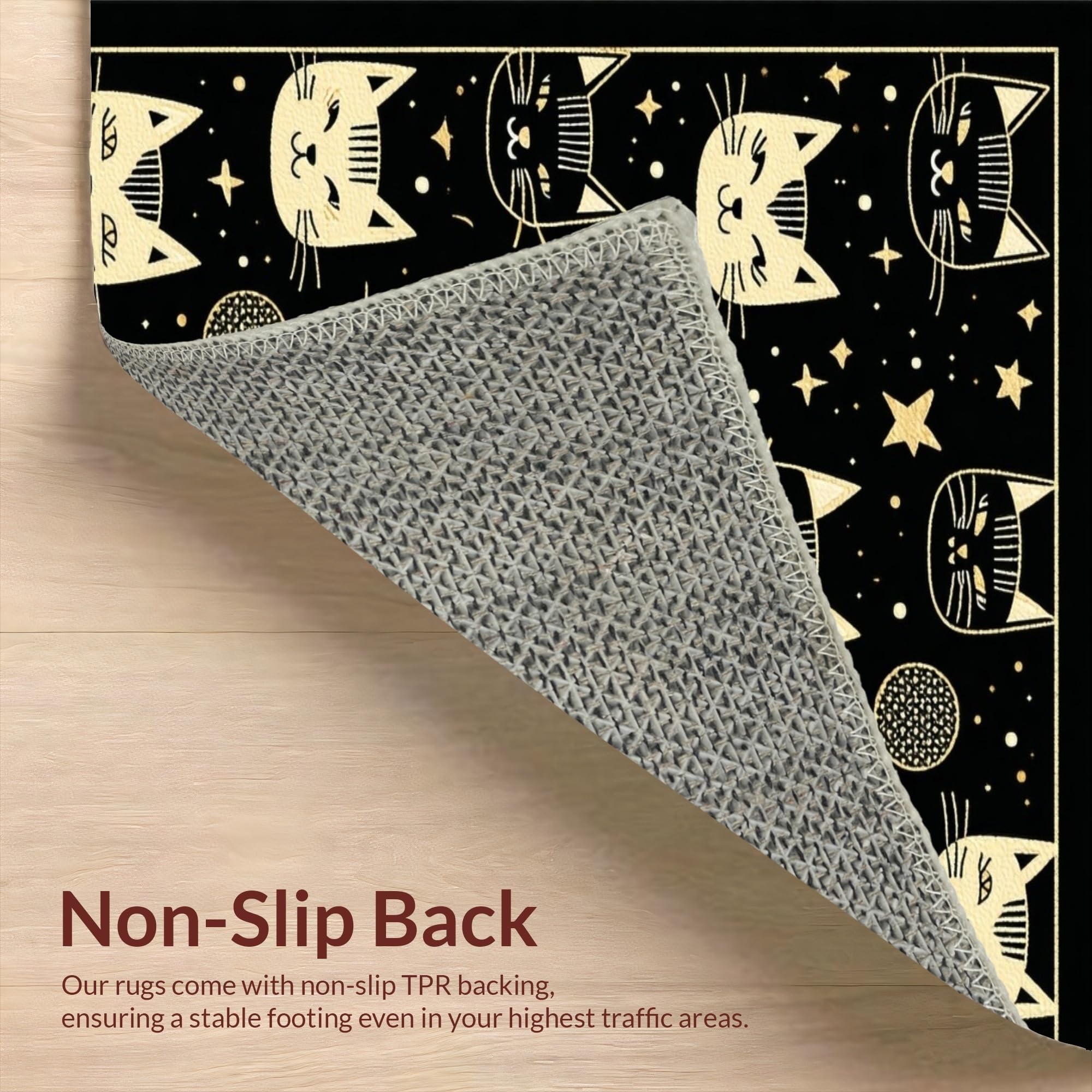 Ultra Soft Area Rug, Non Slip, Stain Resistant, Washable Area Rugs for Living Room, Bedroom, Artistic Black Cat Head Visual(Black) Overview: