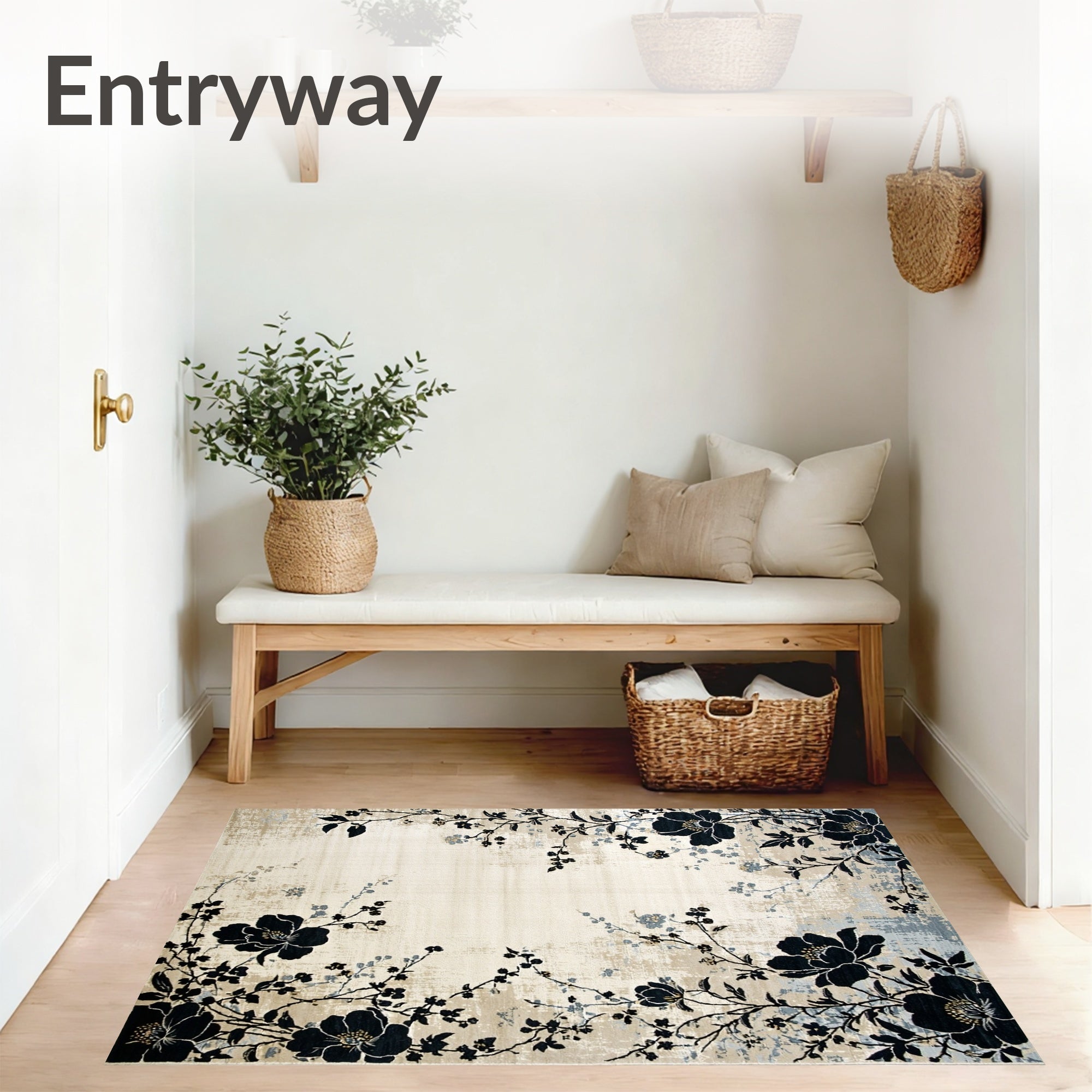 Ultra Soft Area Rug, Non Slip, Stain Resistant, Washable Area Rugs for Living Room, Bedroom, Artistic Boho Beige and Black Bloom(Beige) Overview: