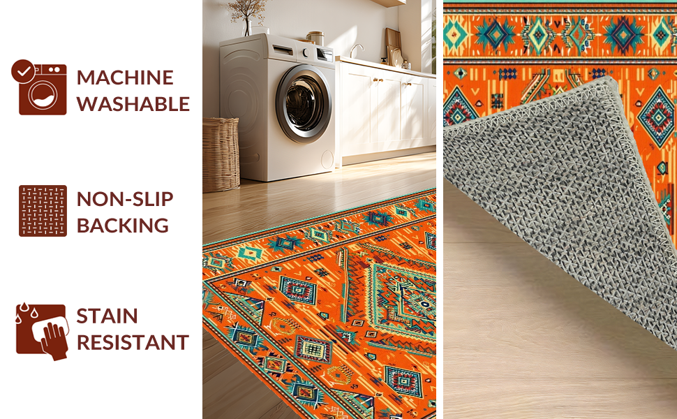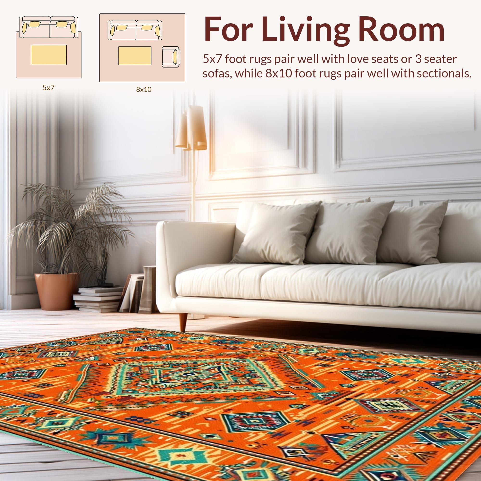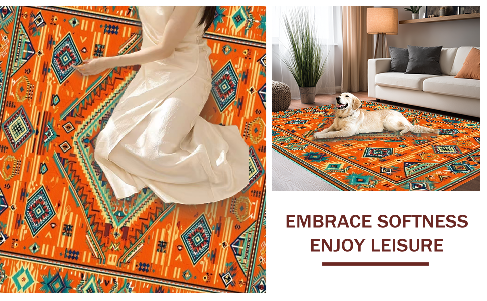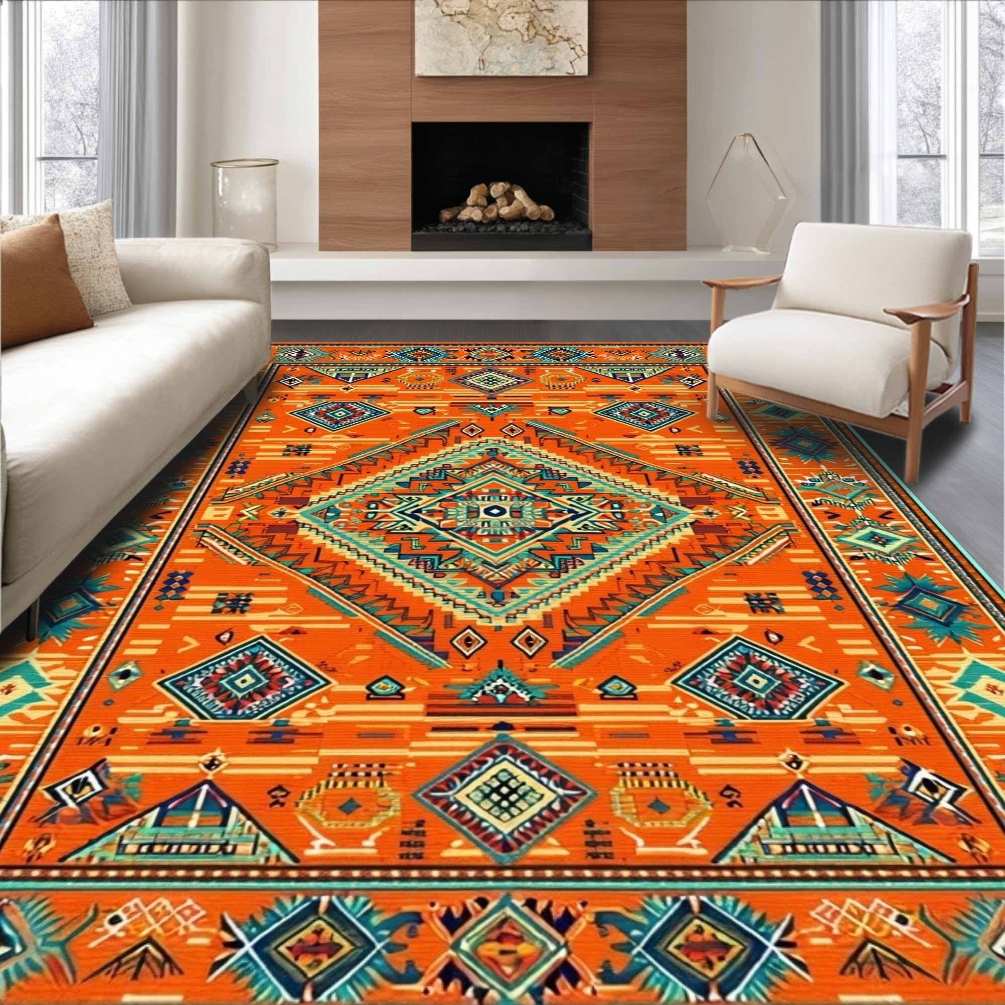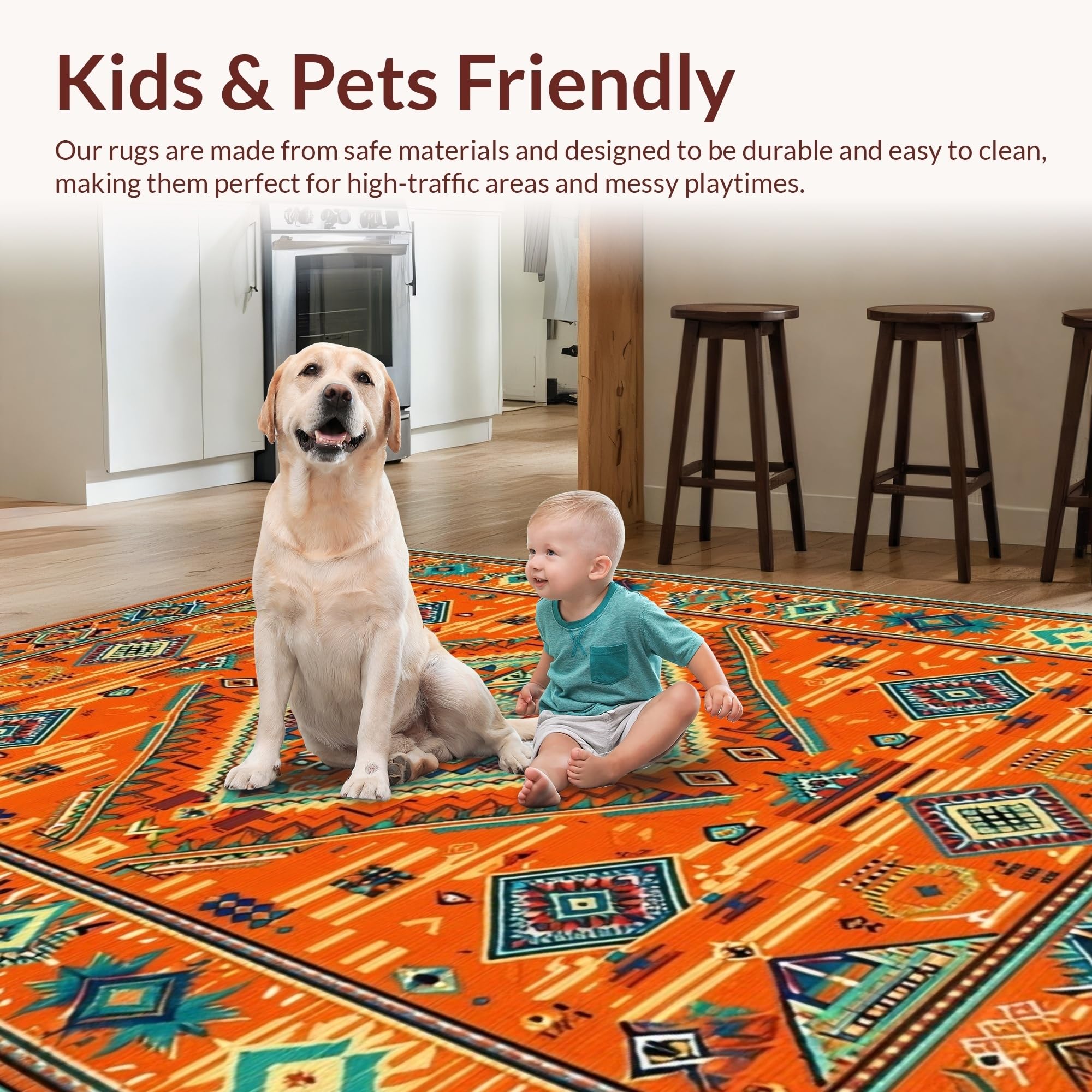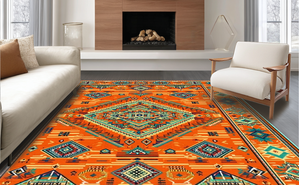 Ultra Soft Area Rug, Non Slip, Stain Resistant, Washable Area Rugs for Living Room, Bedroom, Artistic Bright Mosaic Arrangement(Orange) Overview: