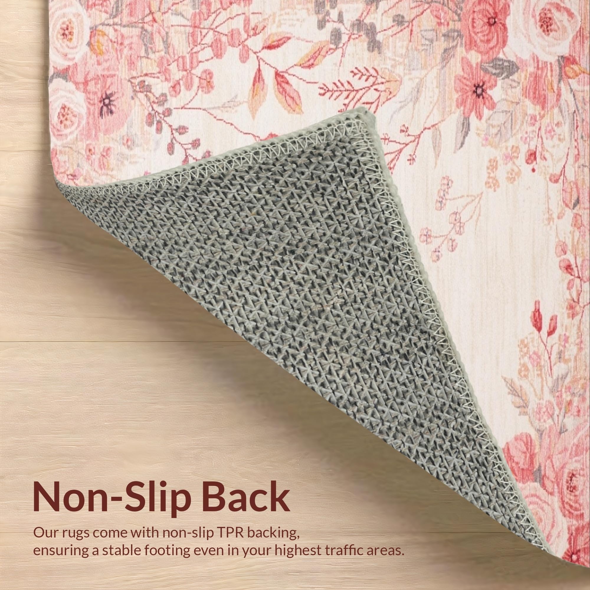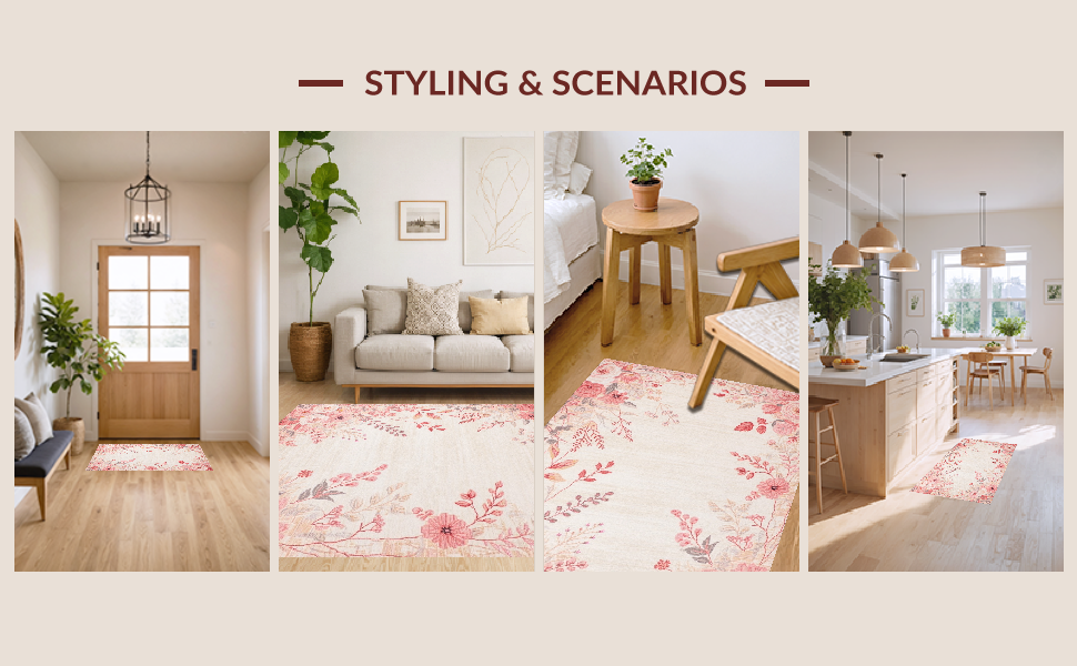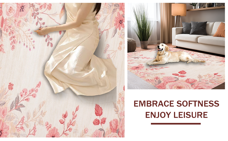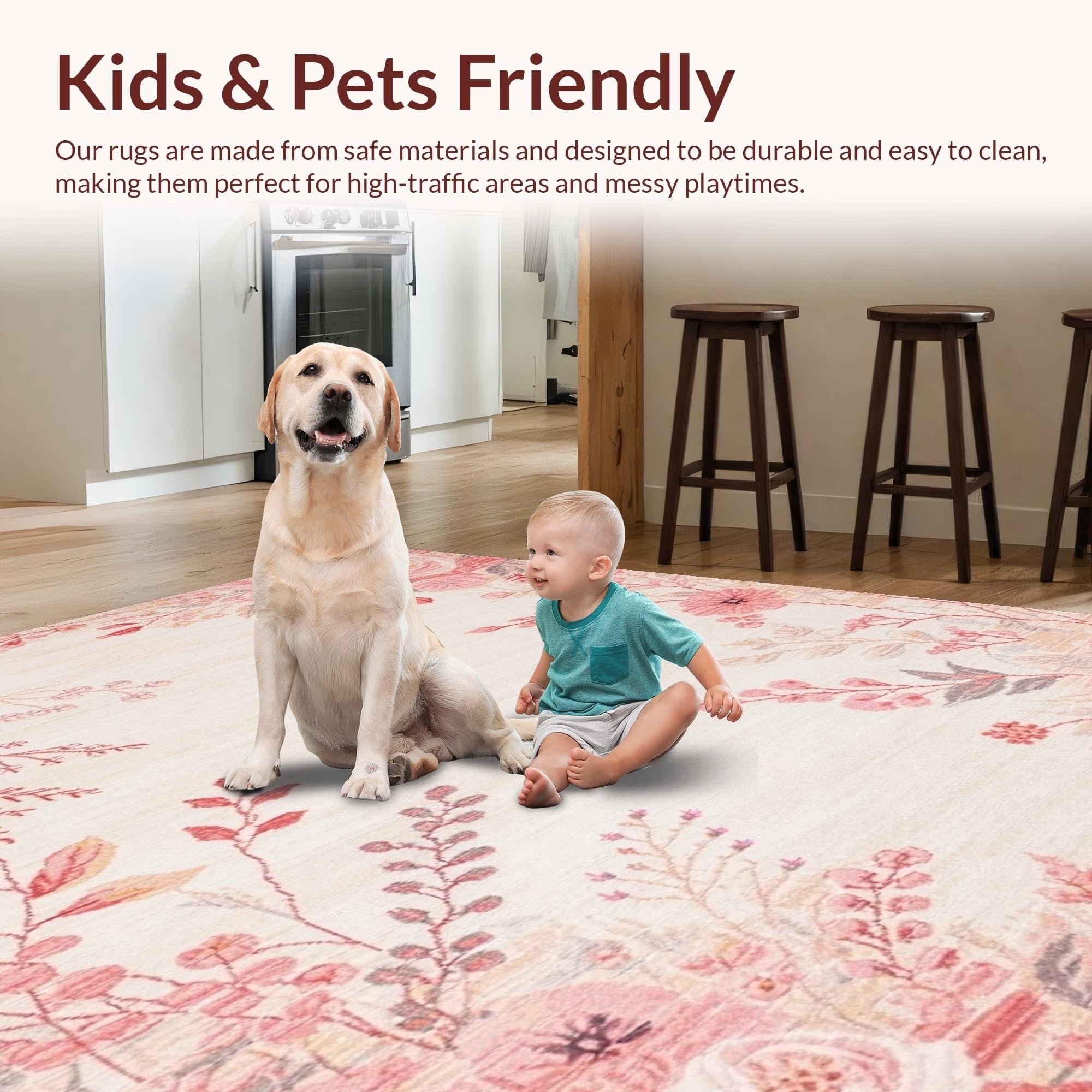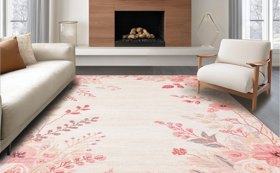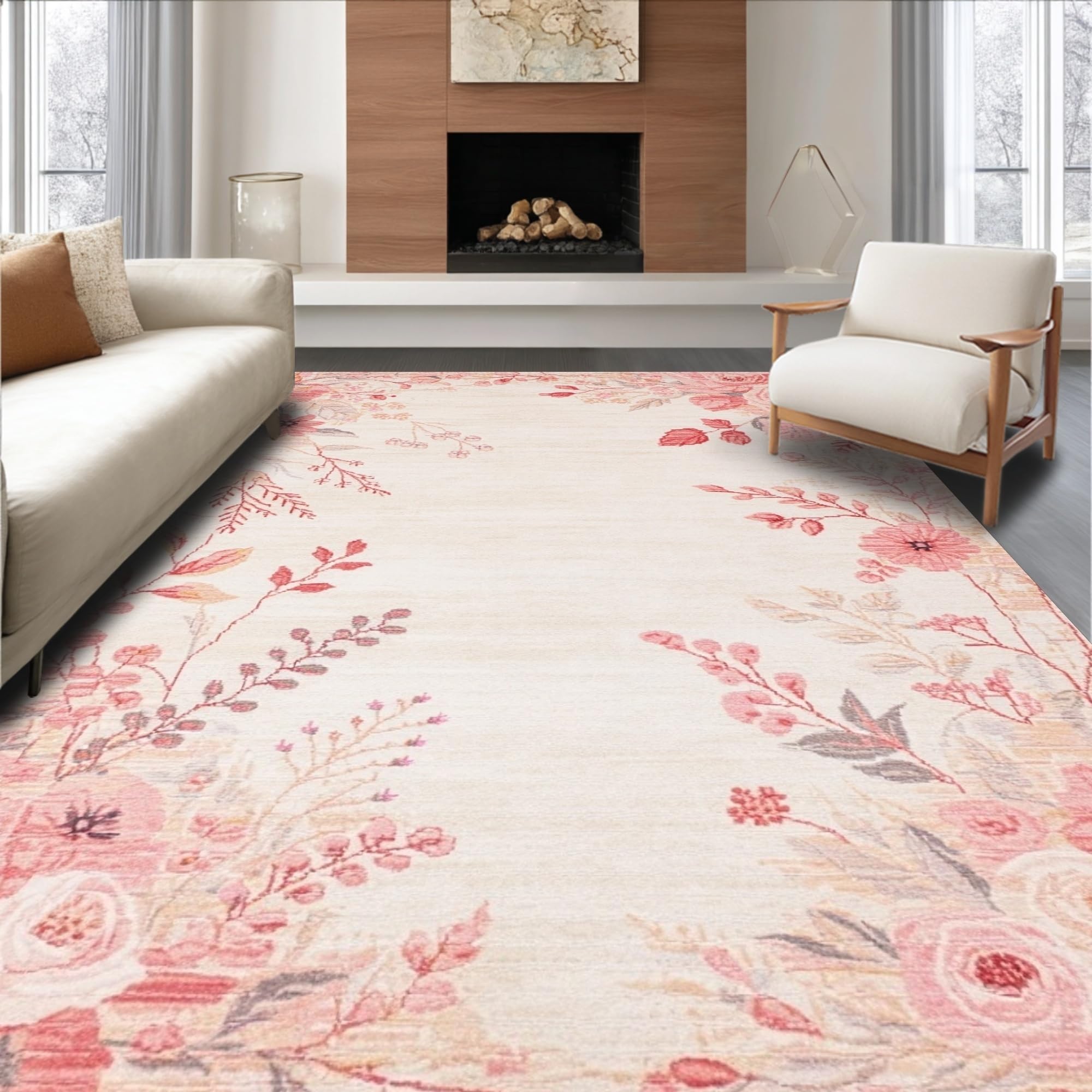 Ultra Soft Area Rug, Non Slip, Stain Resistant, Washable Area Rugs for Living Room, Bedroom, Artistic Chic Watercolor Floral Arrangement(Beige) Overview: