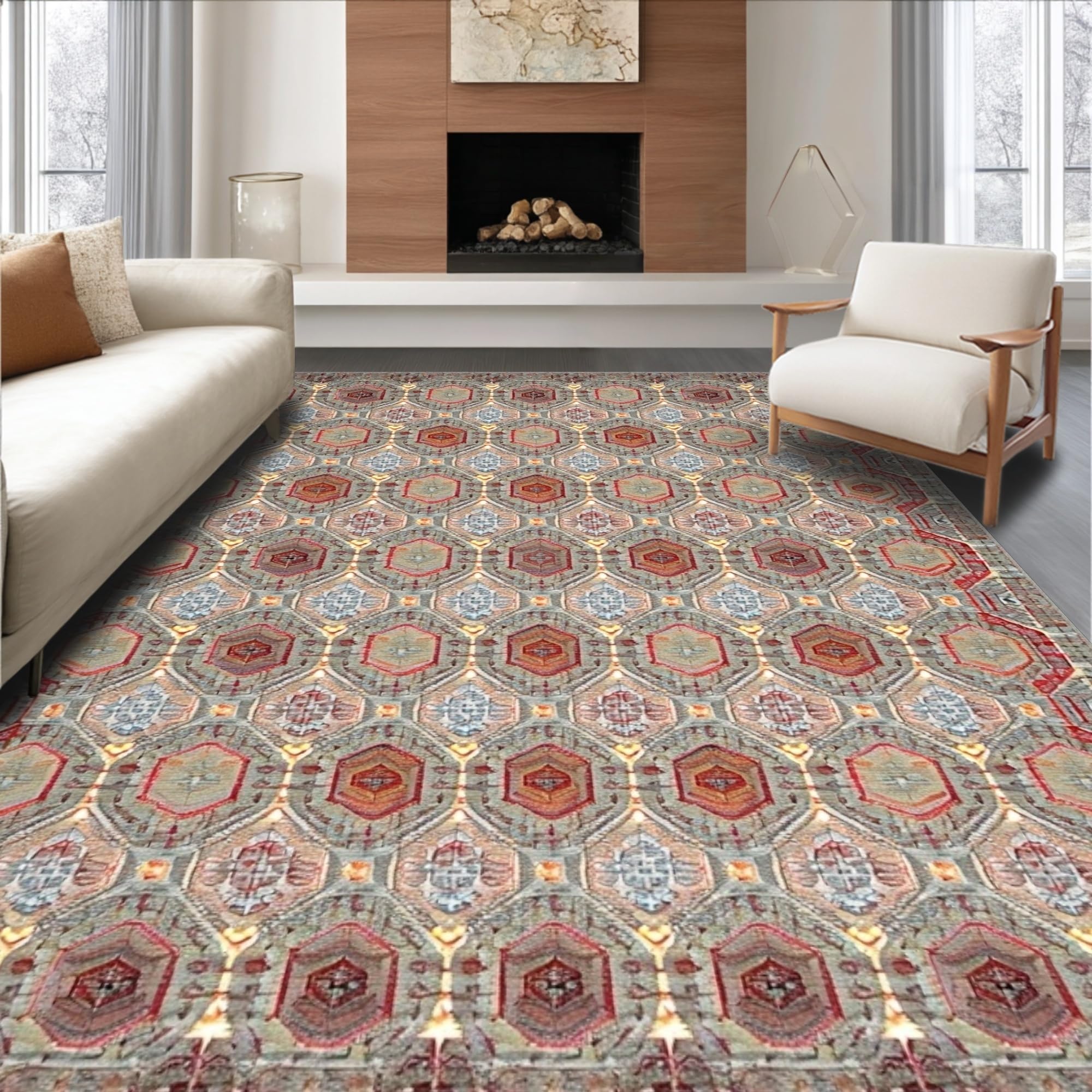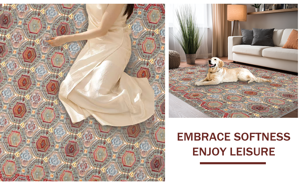 Ultra Soft Area Rug, Non Slip, Stain Resistant, Washable Area Rugs for Living Room, Bedroom, Artistic Colorful Organic Pattern(Gray) Overview: